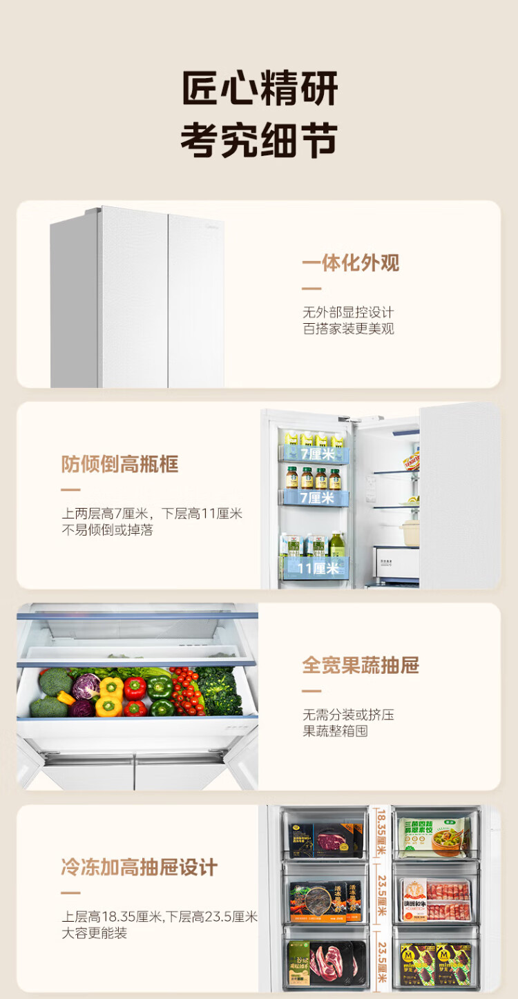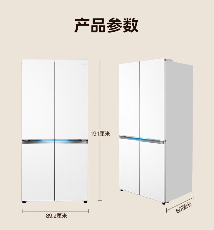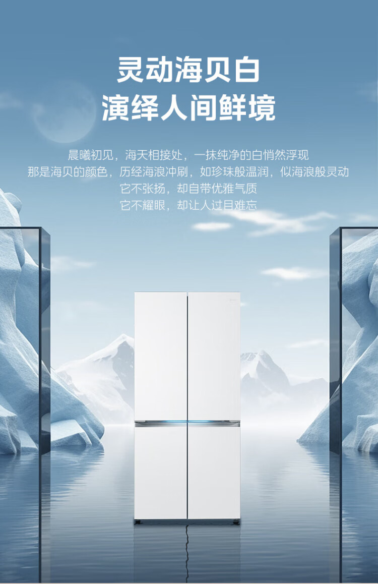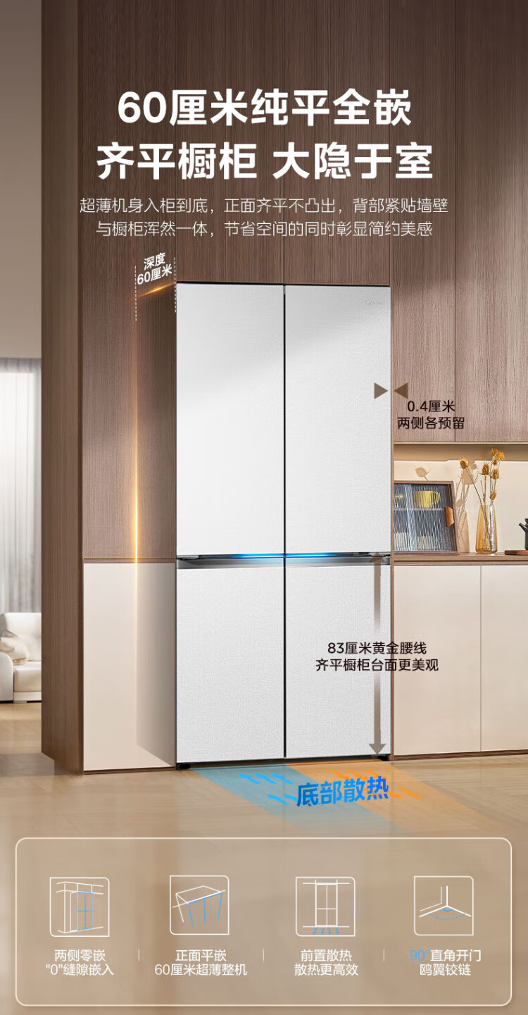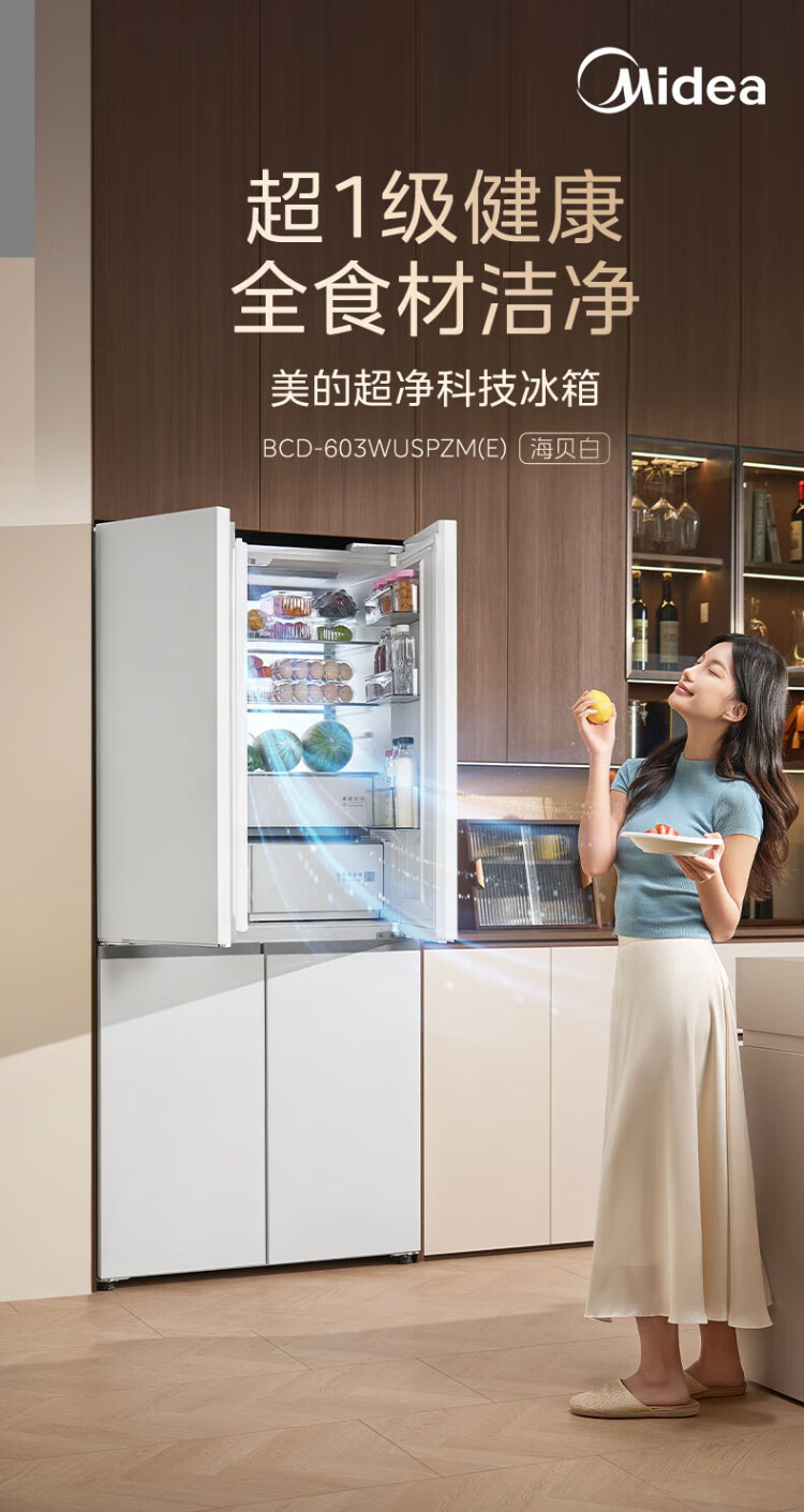 Midea Xiong Dundun Pro603 white flat-screen fully embedded cross-fold four-door dual-system sterilization and odor-free first-class frost-free trade-in household refrigerator government subsidy BCD-603WUSPZM (E) Seashell White