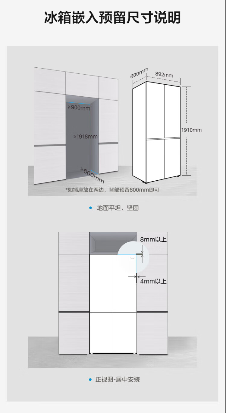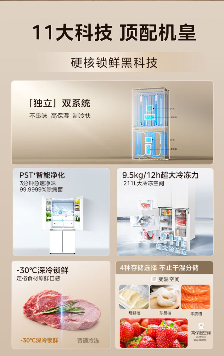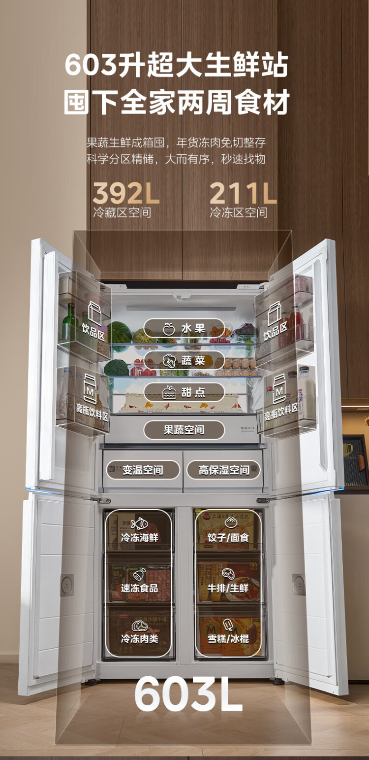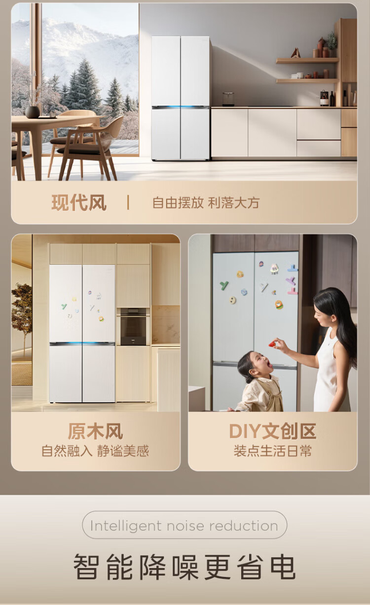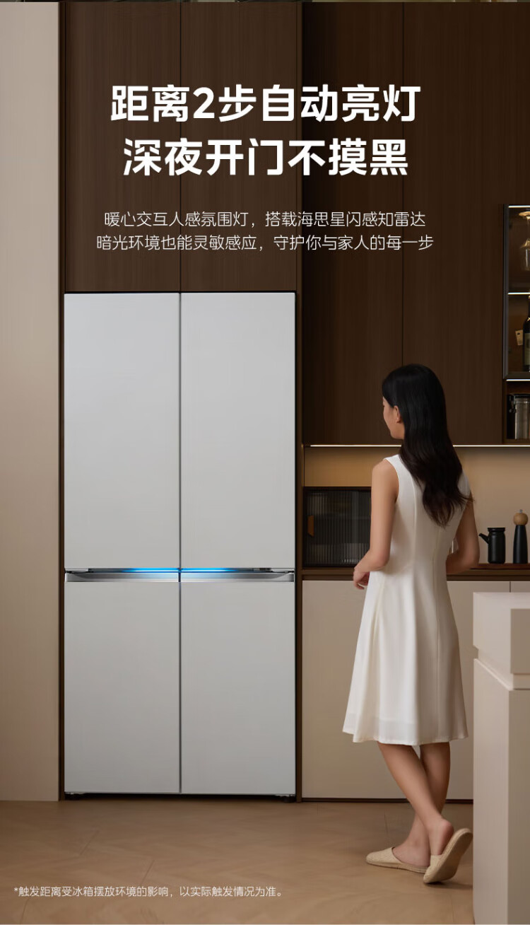 Midea Xiong Dundun Pro603 white flat-screen fully embedded cross-fold four-door dual-system sterilization and odor-free first-class frost-free trade-in household refrigerator government subsidy BCD-603WUSPZM (E) Seashell White