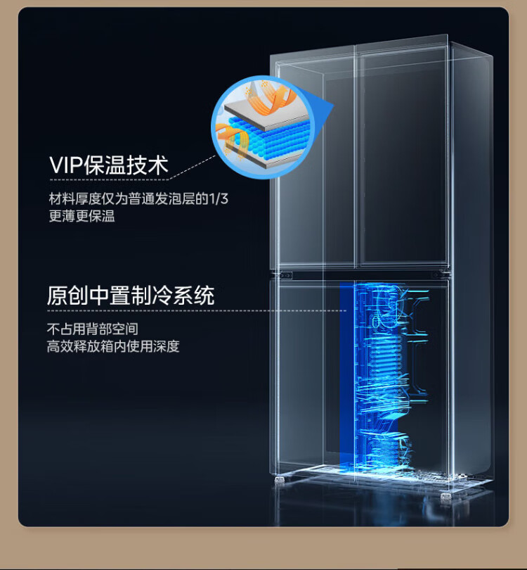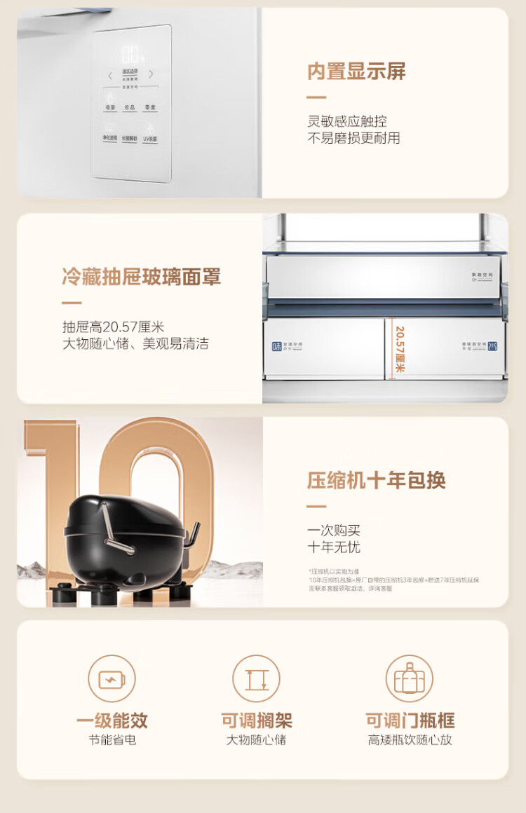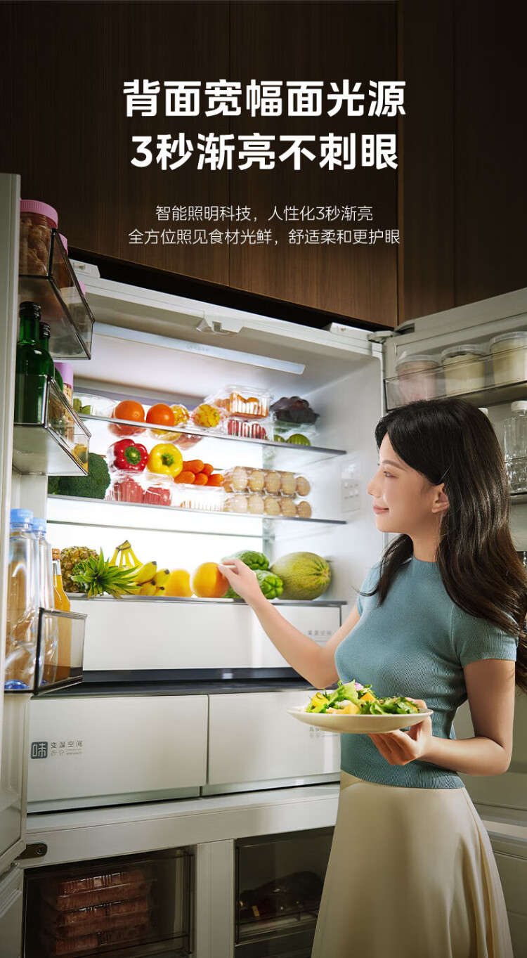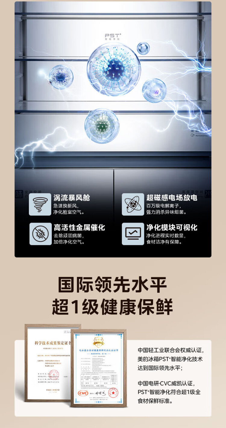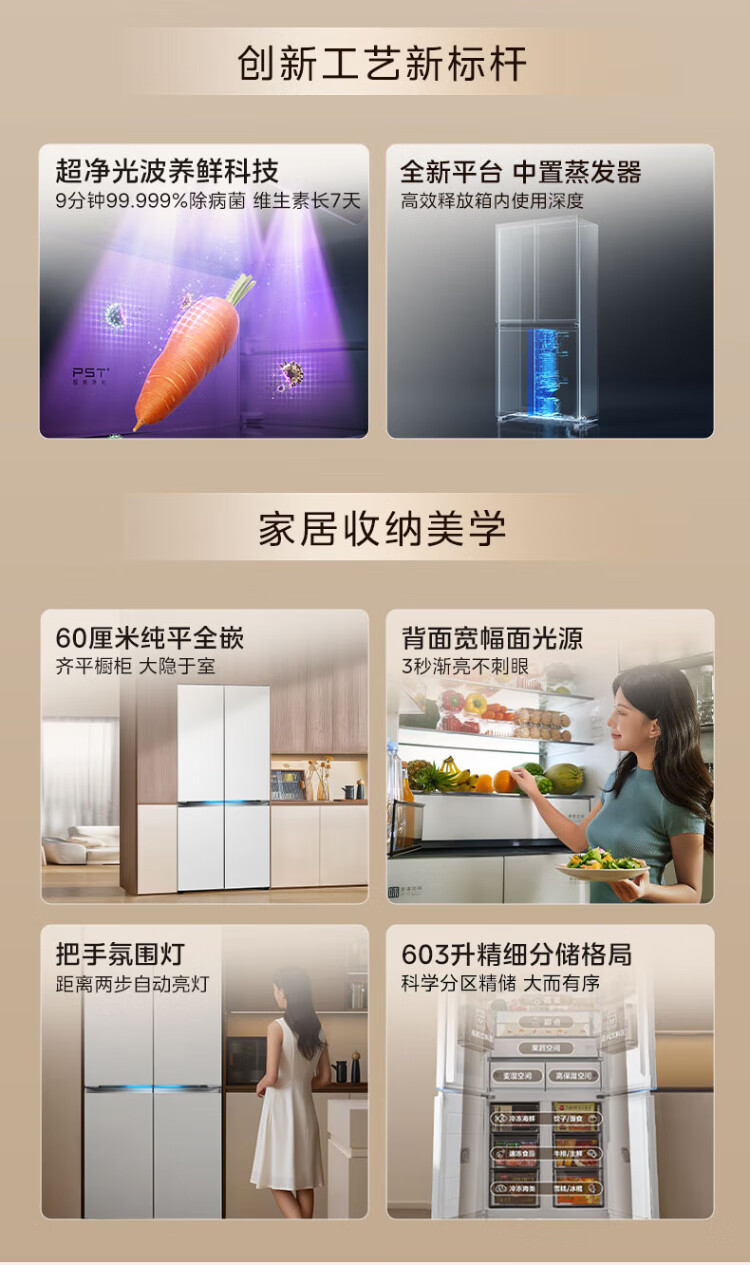 Midea Xiong Dundun Pro603 white flat-screen fully embedded cross-fold four-door dual-system sterilization and odor-free first-class frost-free trade-in household refrigerator government subsidy BCD-603WUSPZM (E) Seashell White