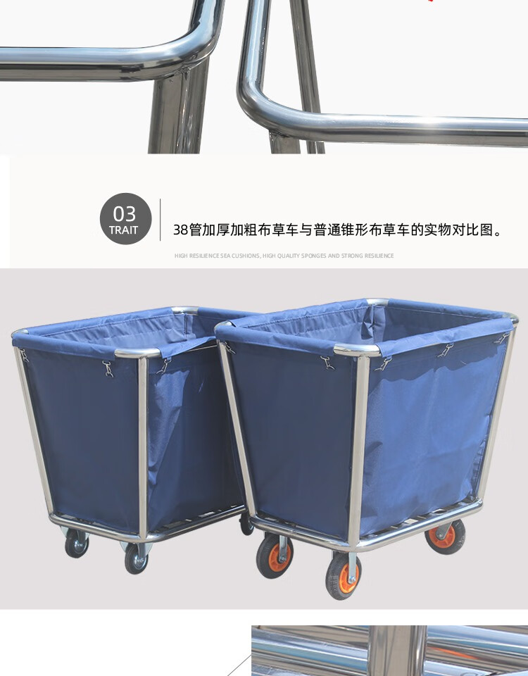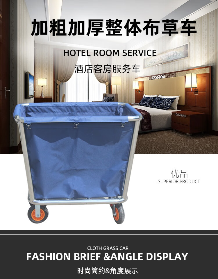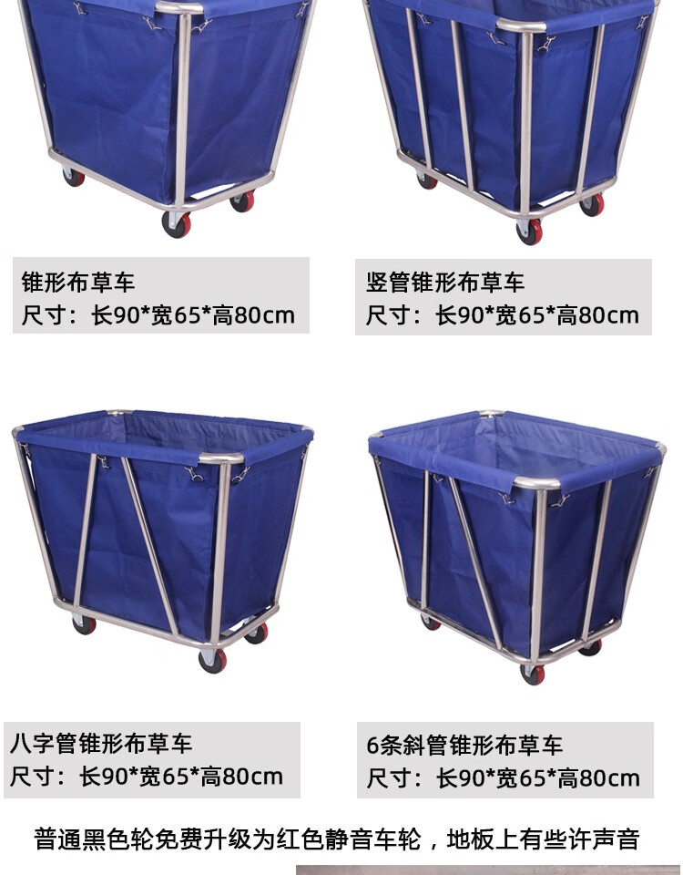 Linen Cart Hotel Guest Room Service Cart Stainless Steel Cart Laundry Room Dry Cleaning Shop Storage Recycling Car Thickened Disassembly Conical (Blue) Linen Cart