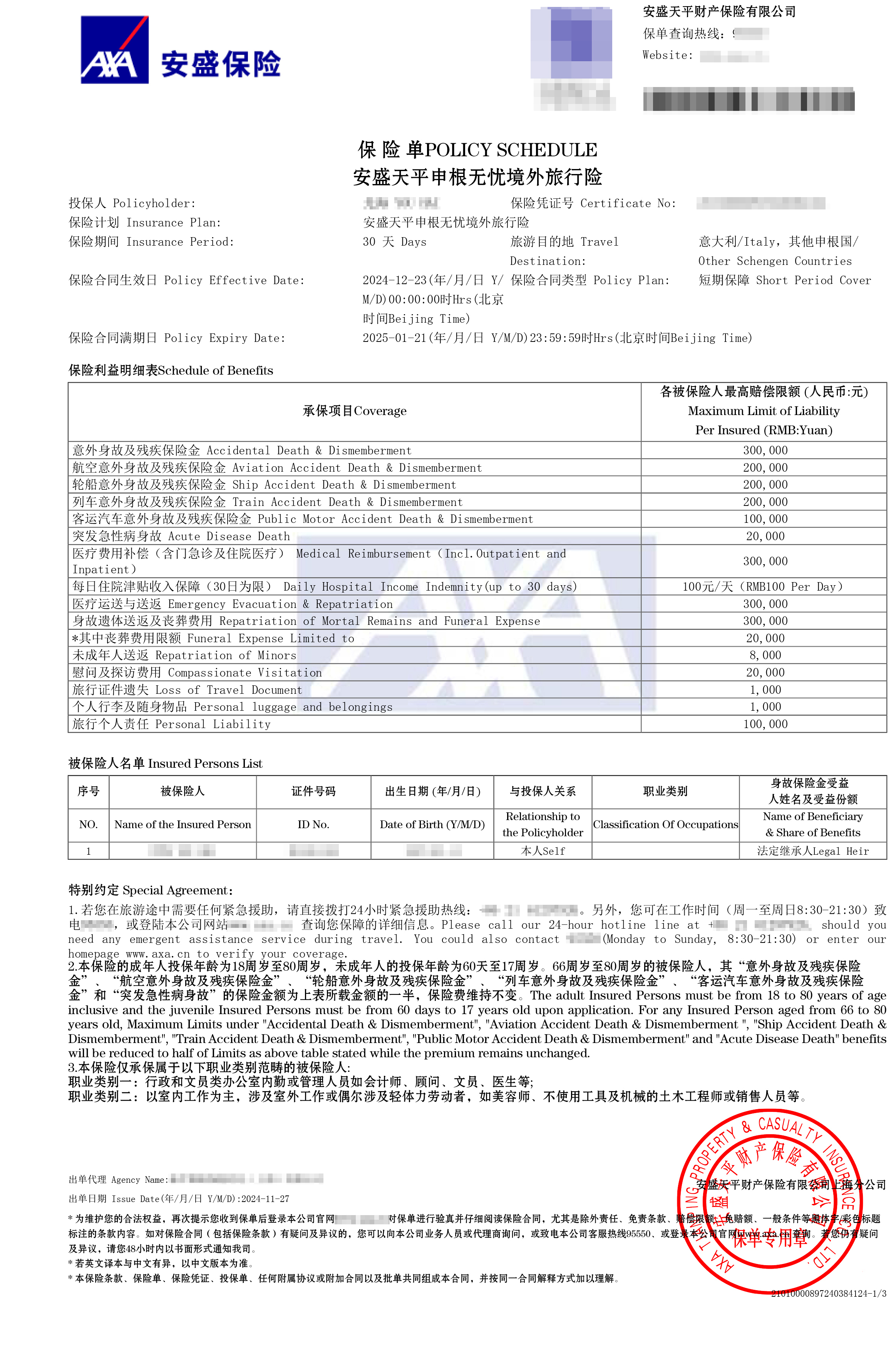 Germany France Italy Spain Netherlands Sweden Norway Visa Insurance Travel and Family Visit Business AXA Visa Insurance 30 Days