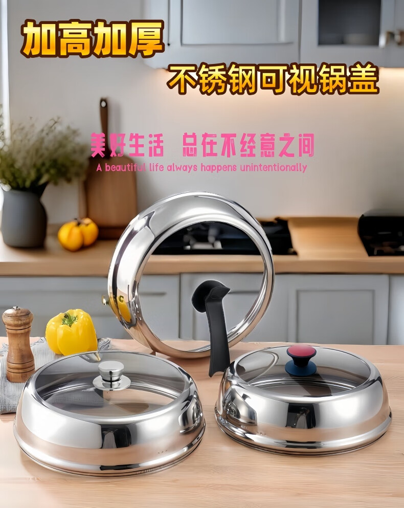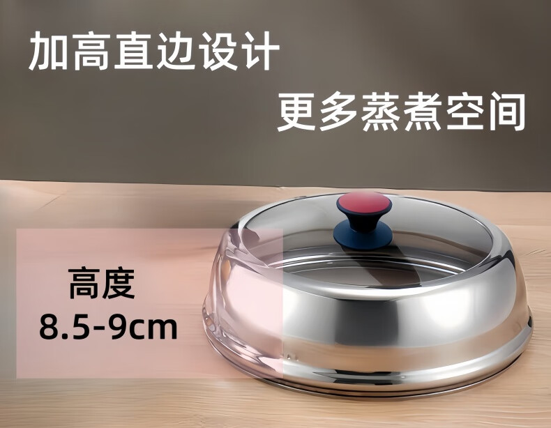Miajie stainless steel thickened pot lid household steamer wok explosion-proof universal lid visible heightening tempered glass pot lid 30# lid inner diameter 29.8 outer diameter 31cm small red button heightened and thickened Fugao pot lid