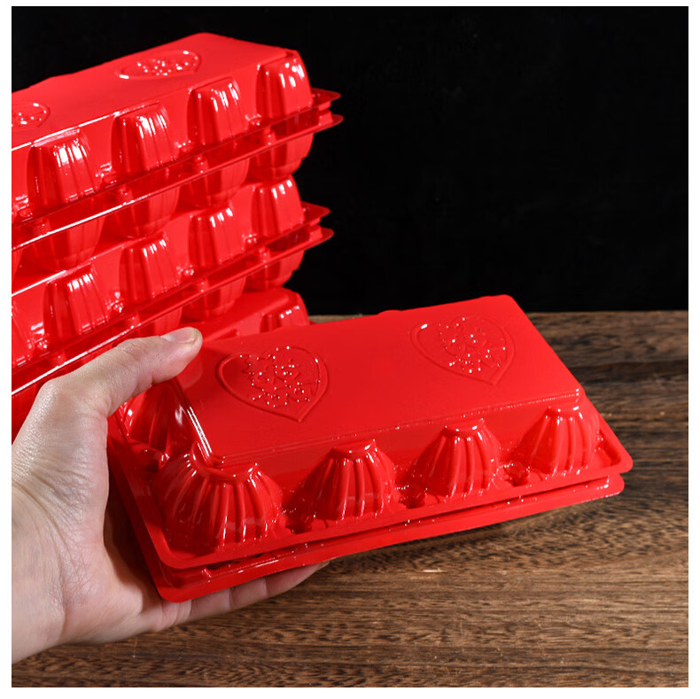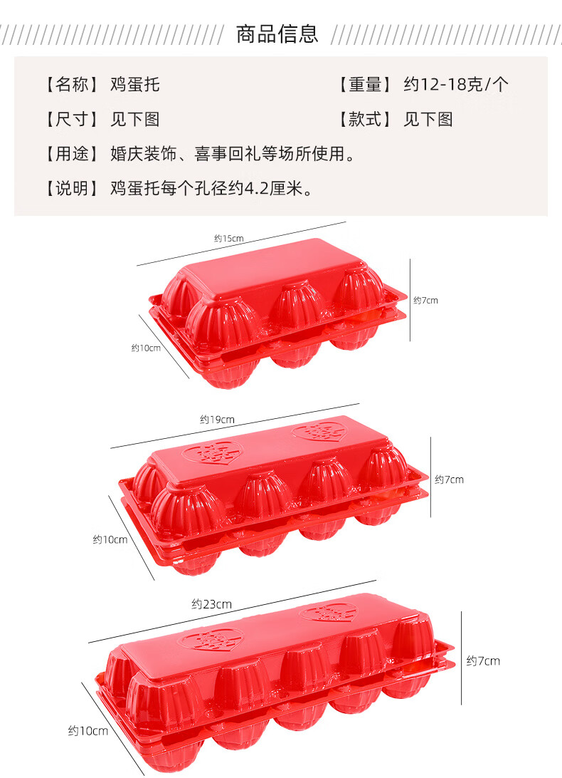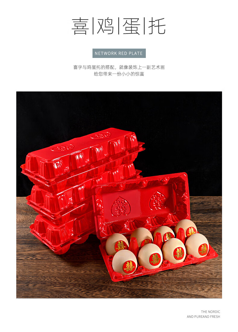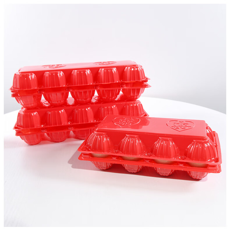 Hualeji Wedding Supplies Red Egg Shell Plastic Tray with Happy Words for 10 Newborns Born and Full Moon Happy Egg Box Packaging Red Egg Tray with Happy Words 8 pieces Packed *50 pieces See the picture for size