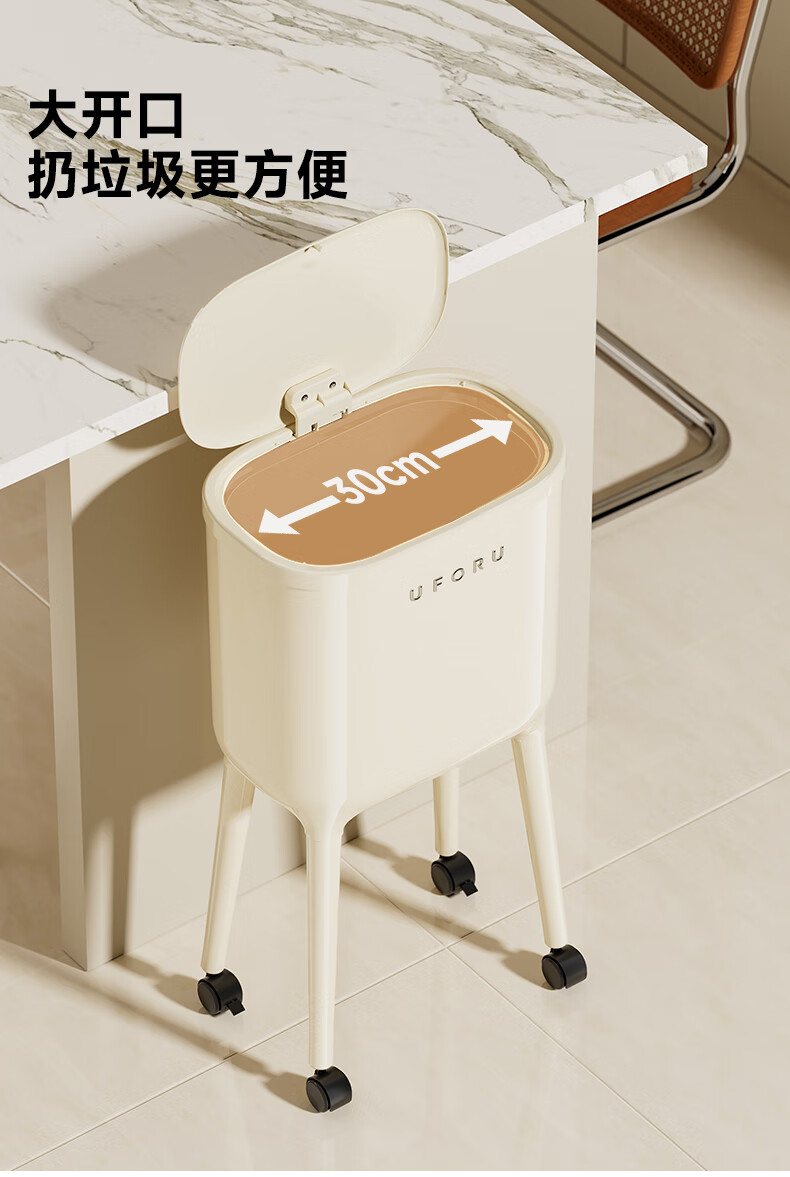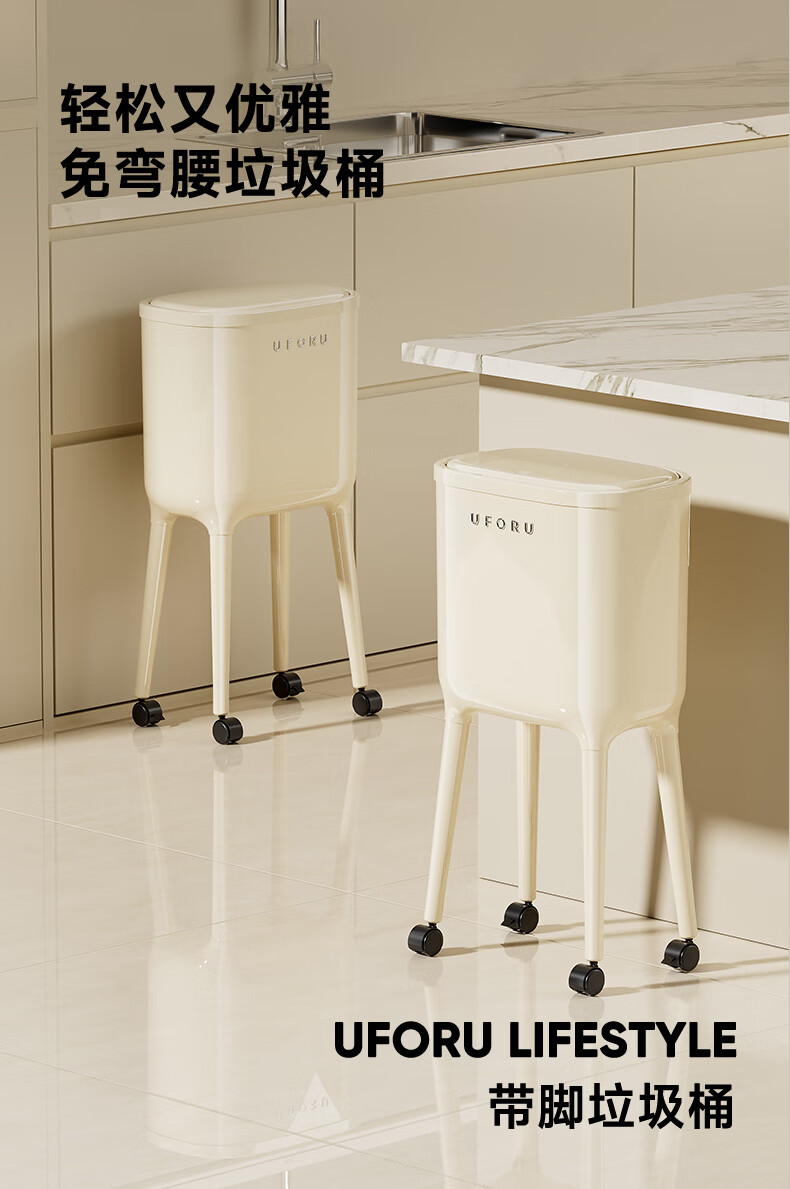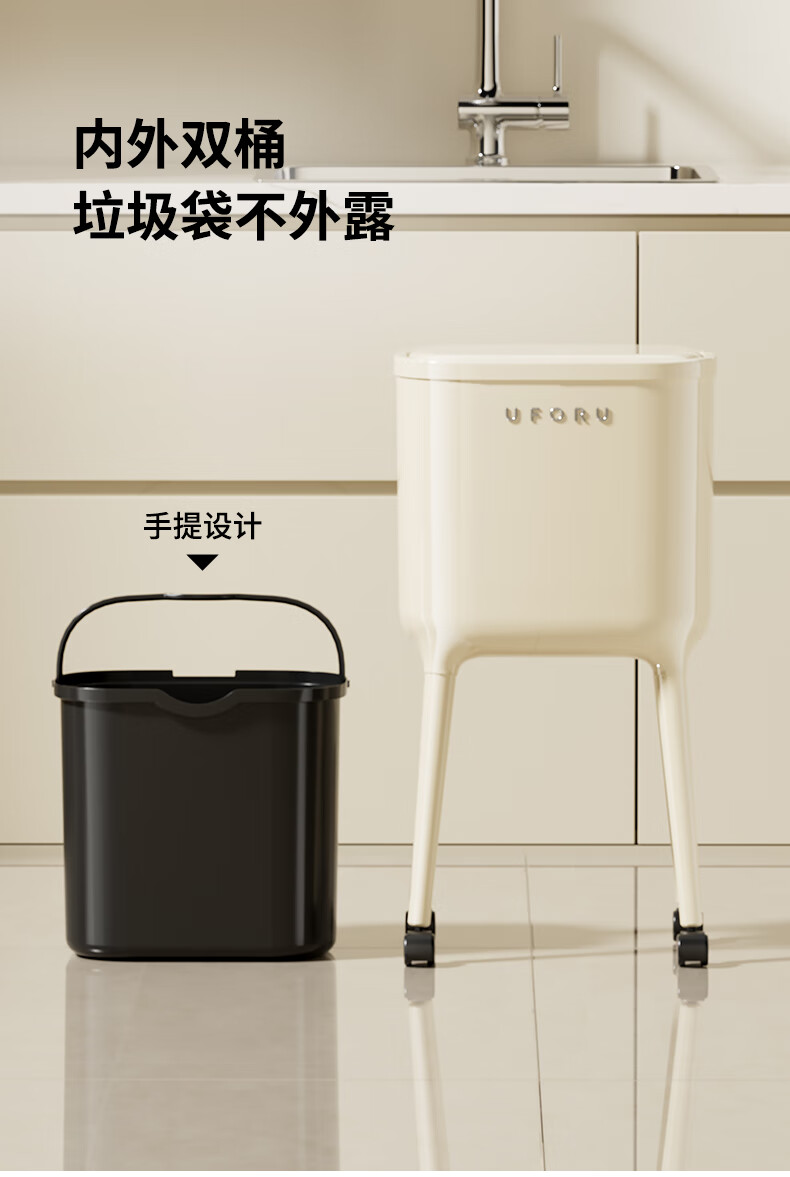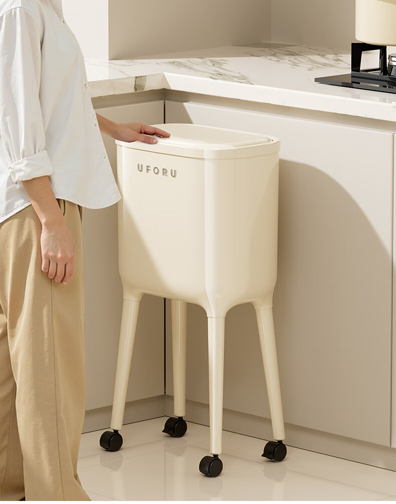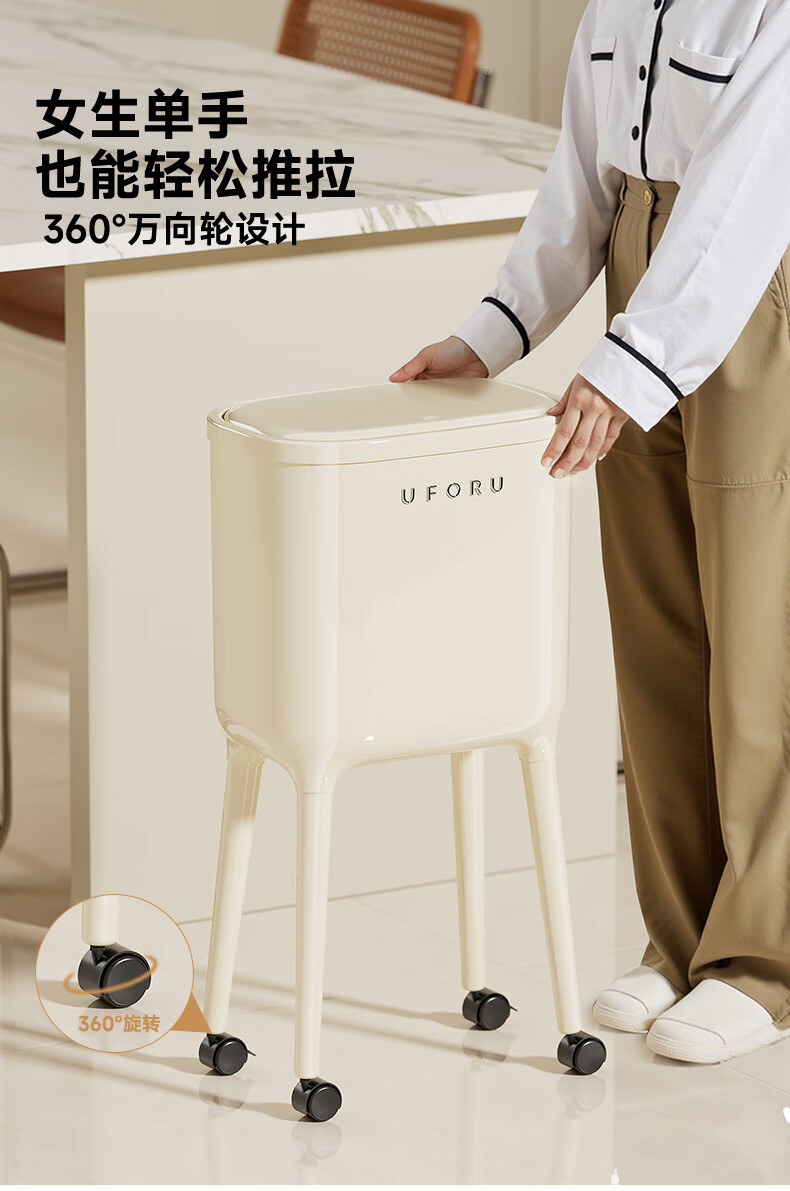Kitchen star kitchen trash can for household use 2026 new style high-value removable large-capacity bend-free high-foot bucket with lid cream white 16L flagship model (with inner bucket/swivel wheels removable)