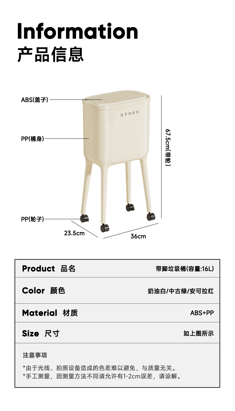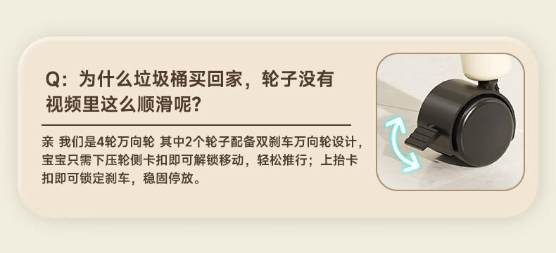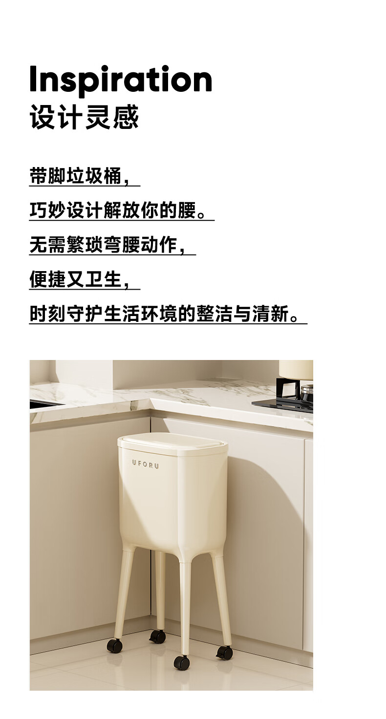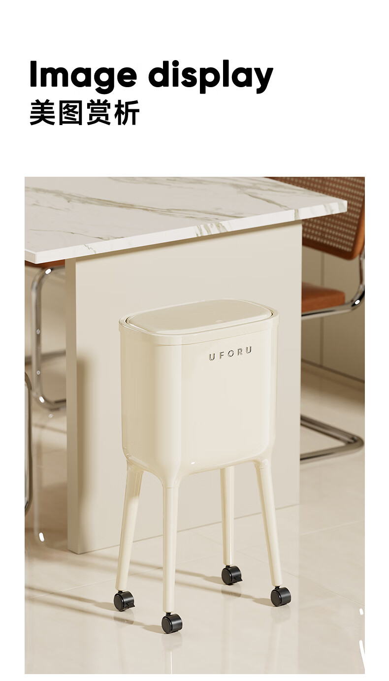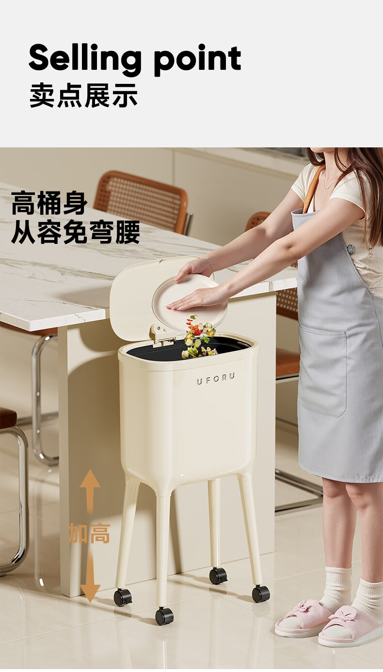 Kitchen star kitchen trash can for household use 2026 new style high-value removable large-capacity bend-free high-foot bucket with lid cream white 16L flagship model (with inner bucket/swivel wheels removable)