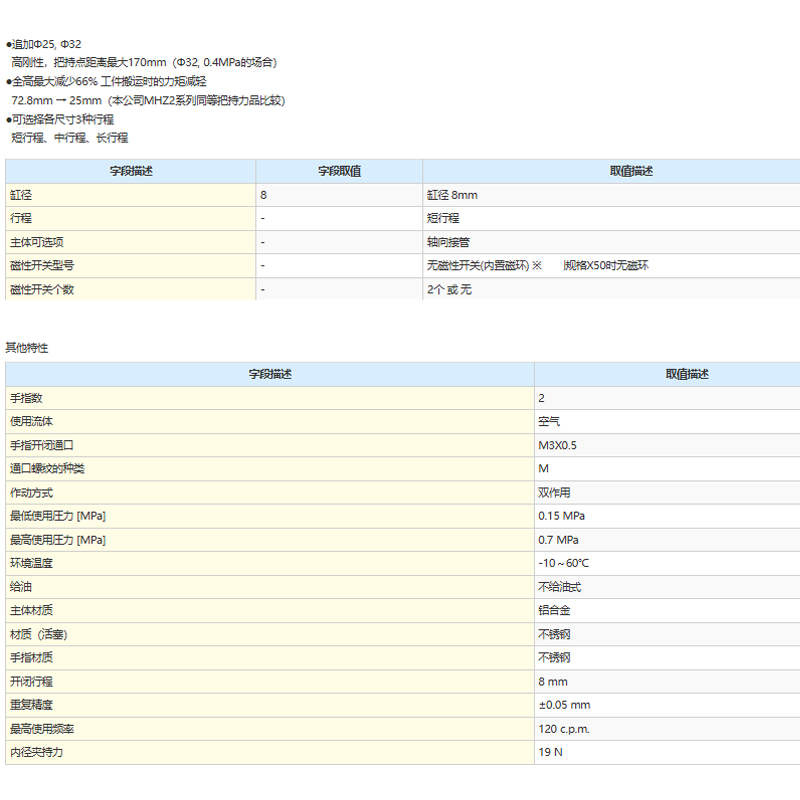 SMC thin air gripper MHF2-8D