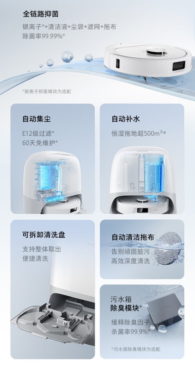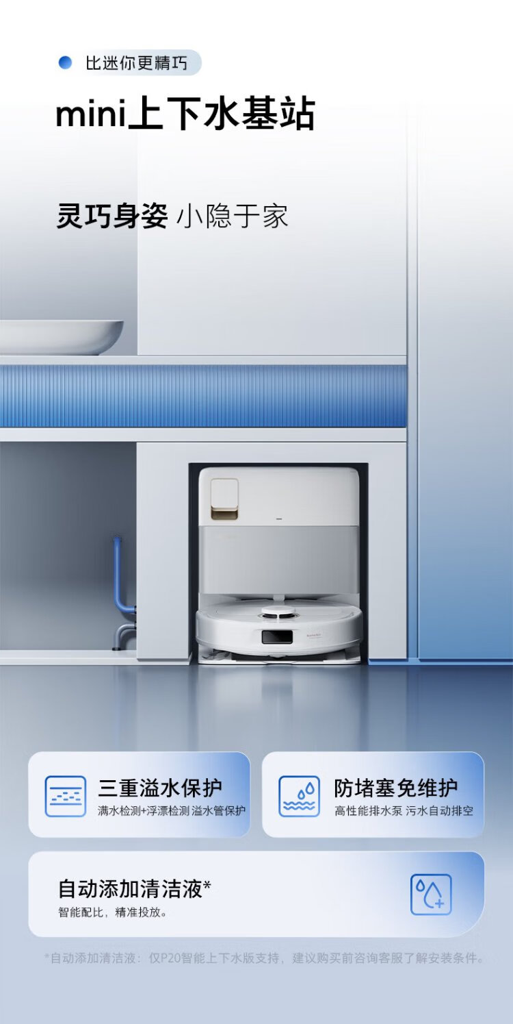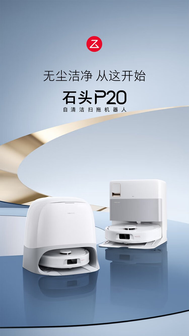 Roborock P20 sweeping robot with integrated sweeping and mopping, intelligent water supply and drainage, automatic dust collection, washing, mop drying, rehydration, mopping and mopping the floor. P20 series products. P20 water supply and drainage.