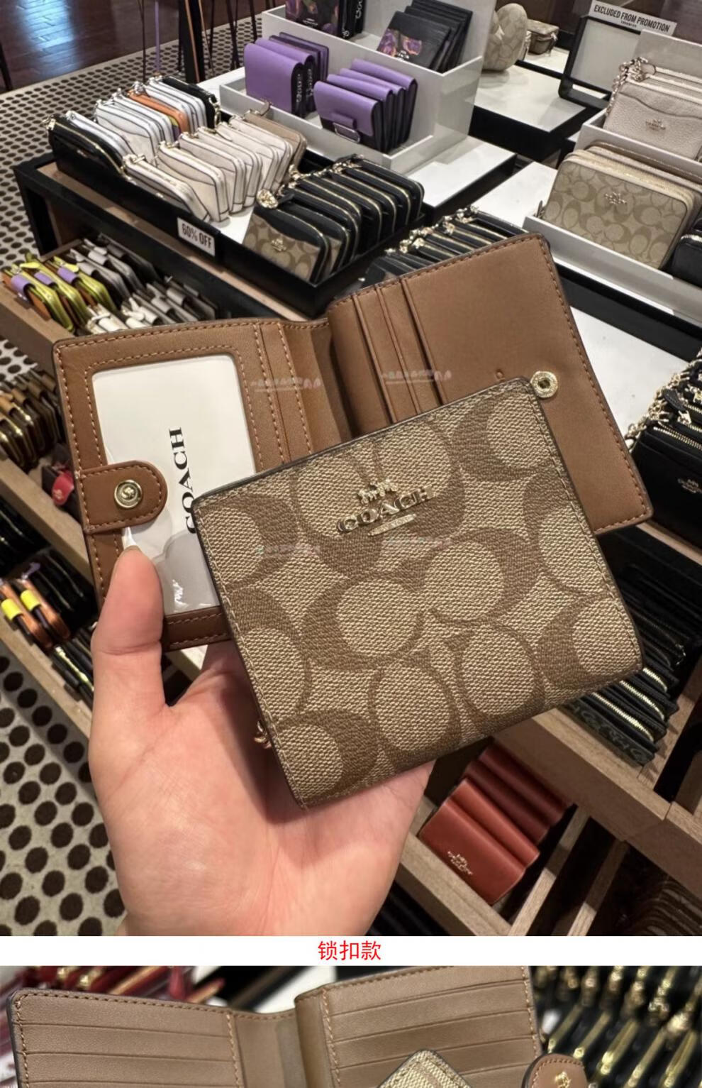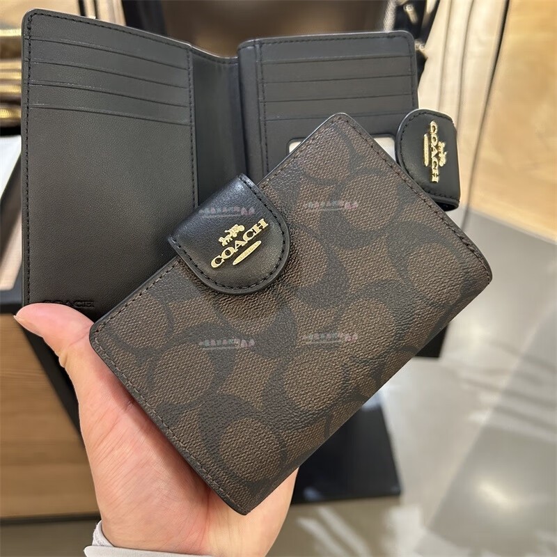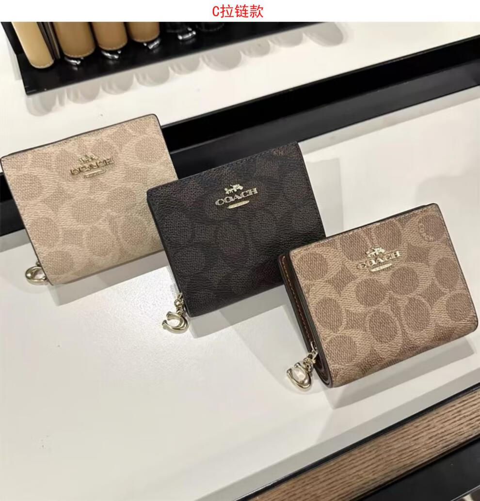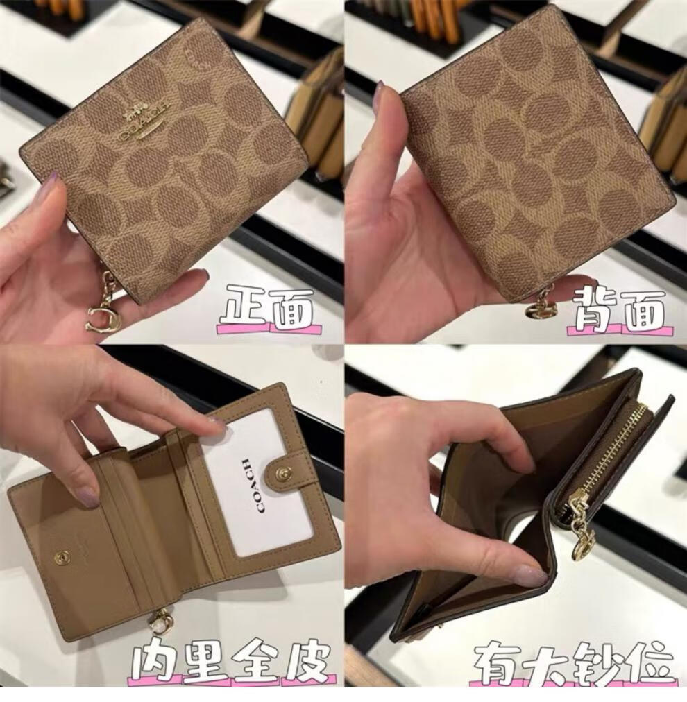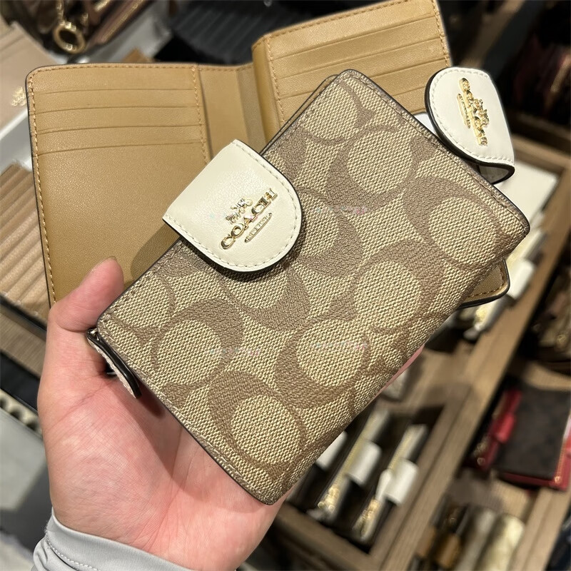 Coach Wallet Women's Wallet Snap Zipper Coin Wallet Genuine Leather Half-fold Card Holder Carriage C Buckle Brown and Light Brown New CW789