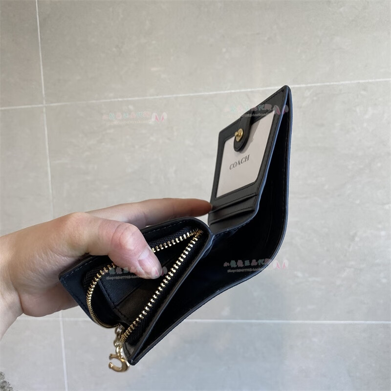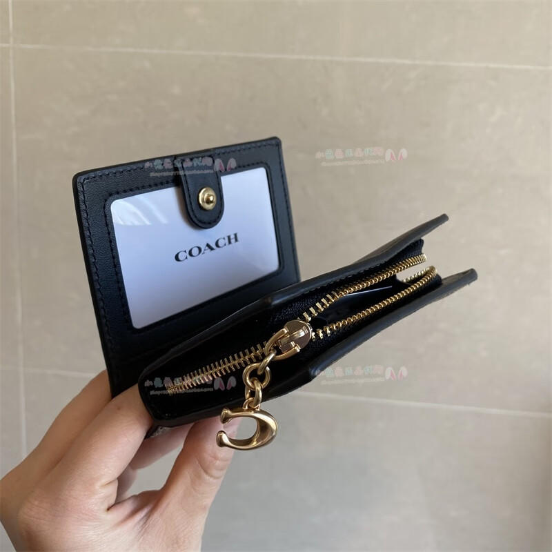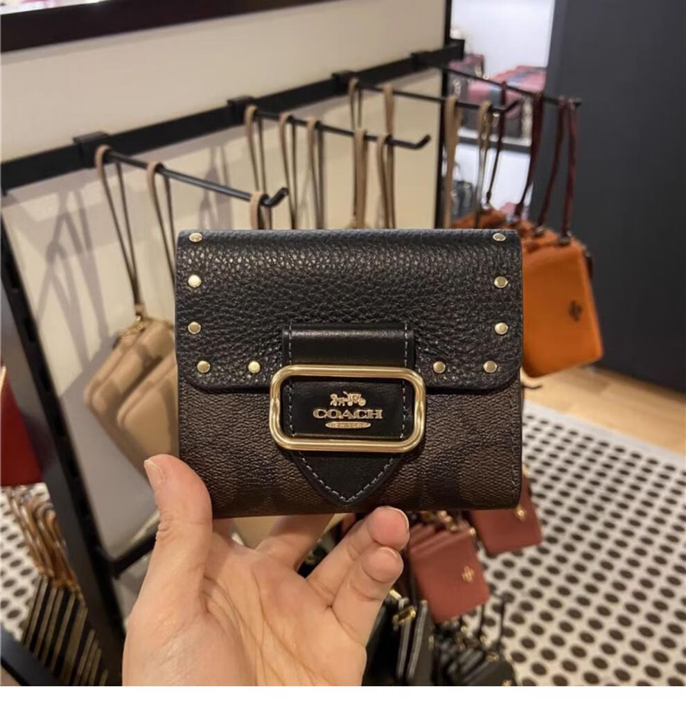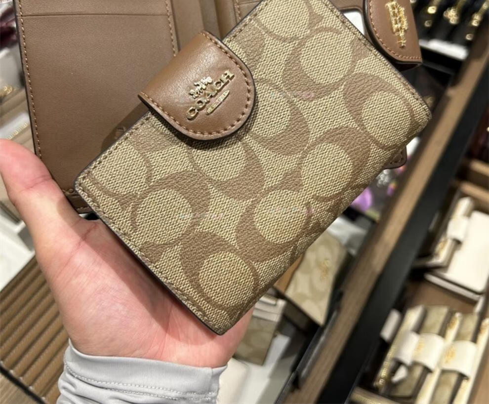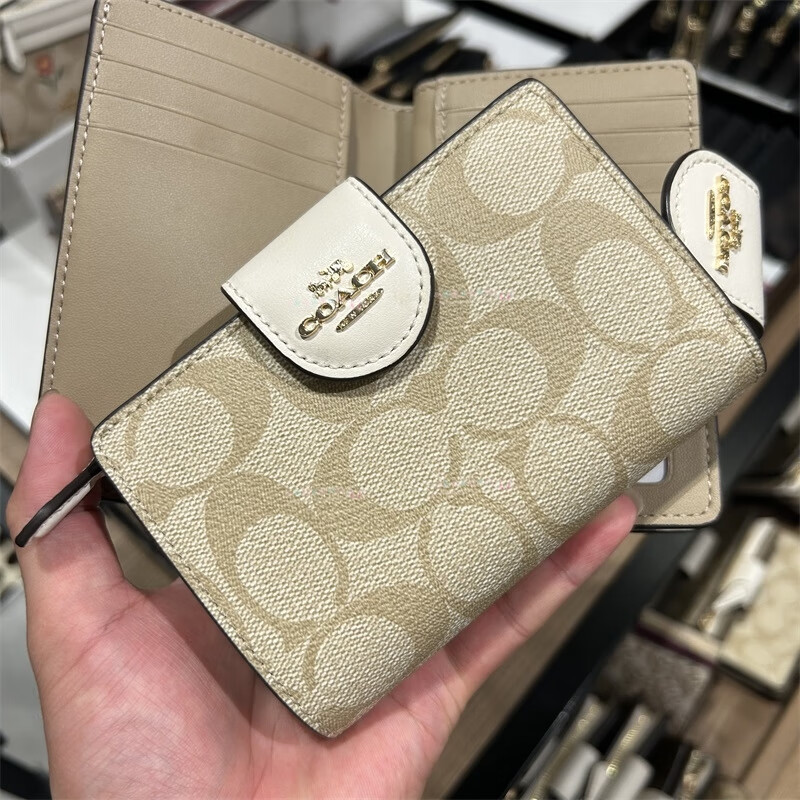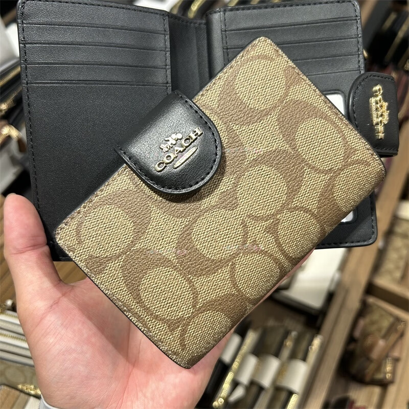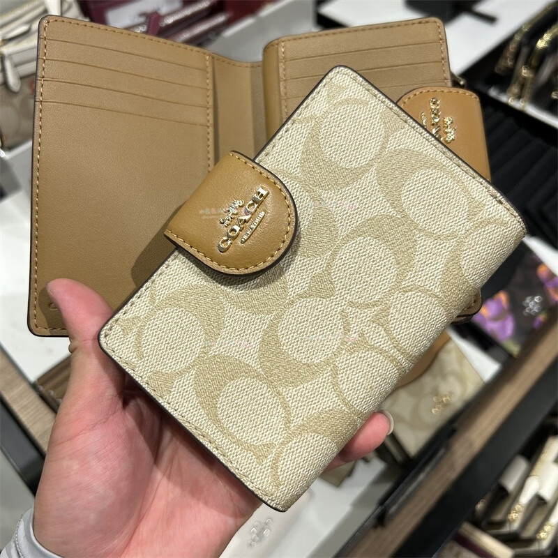 Coach Wallet Women's Wallet Snap Zipper Coin Wallet Genuine Leather Half-fold Card Holder Carriage C Buckle Brown and Light Brown New CW789