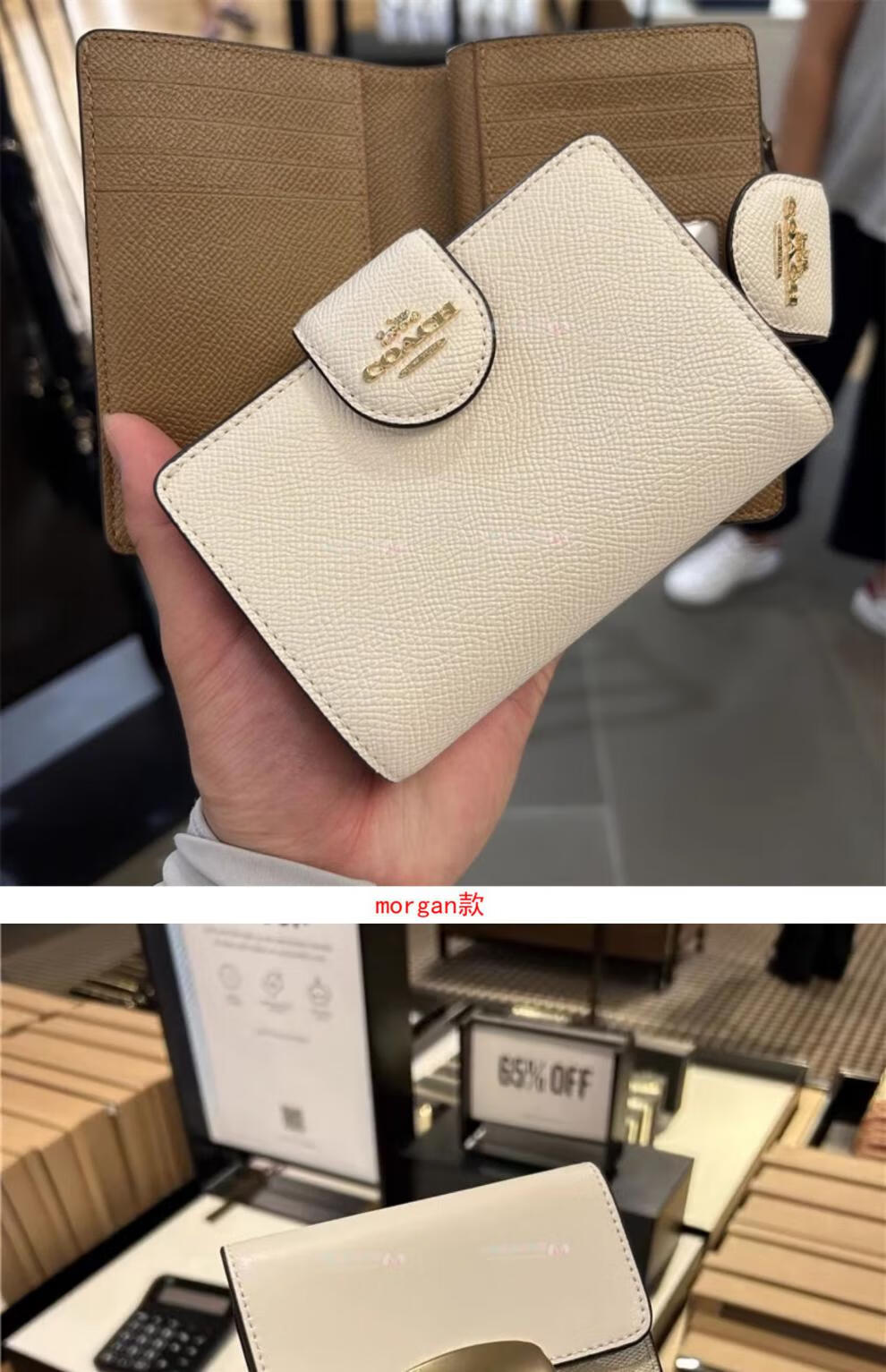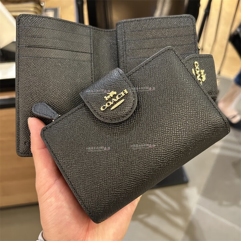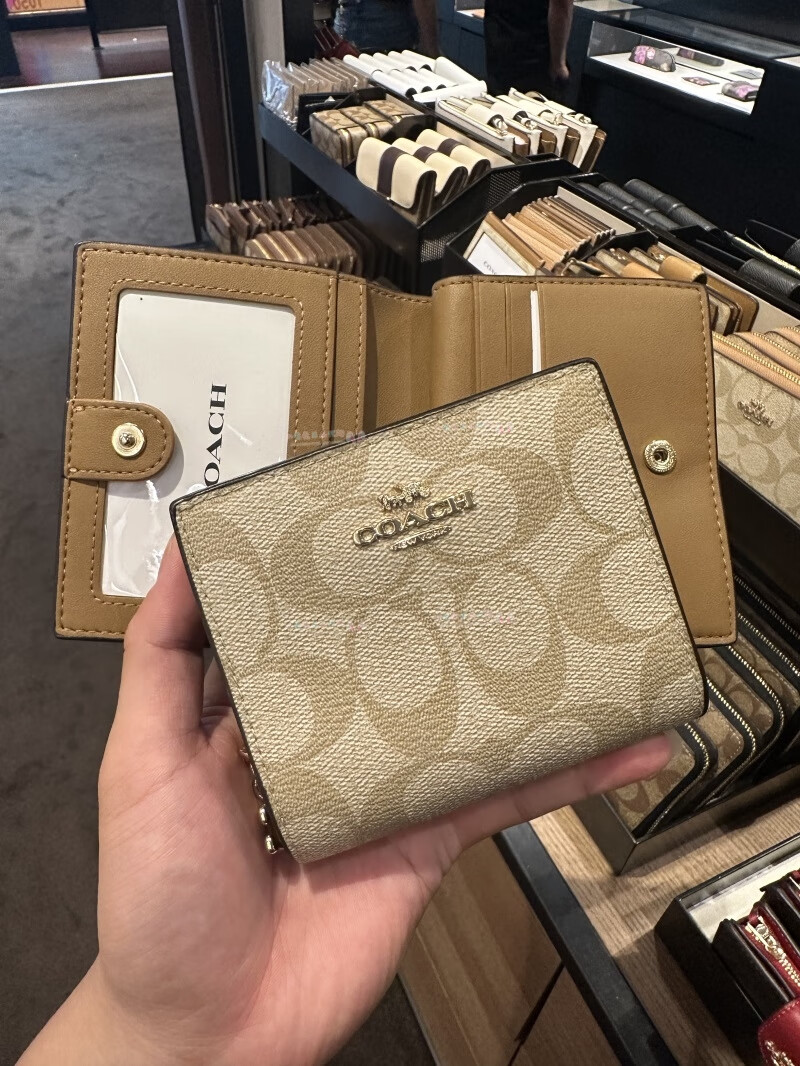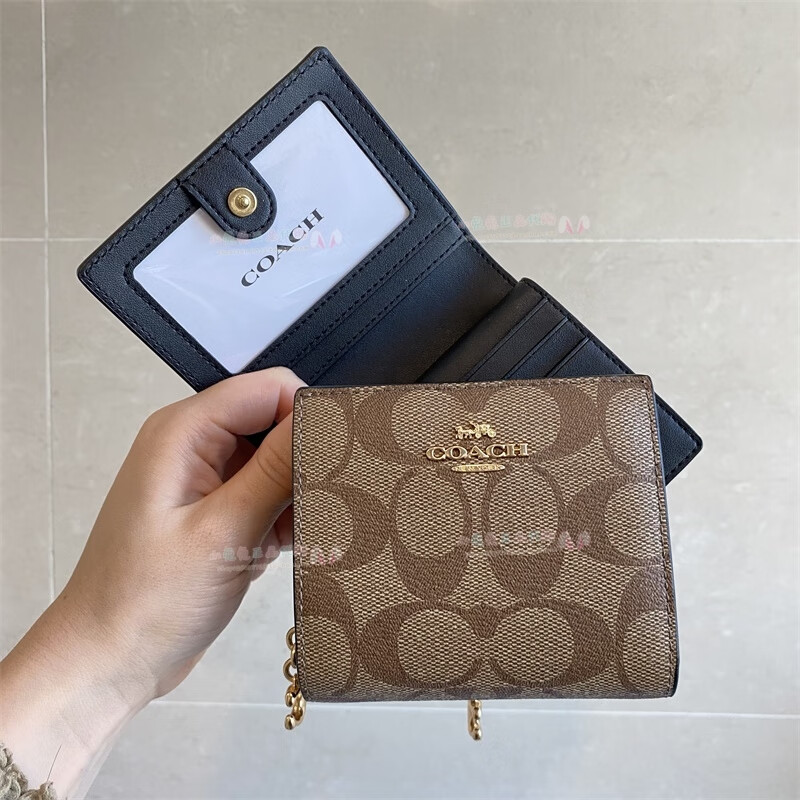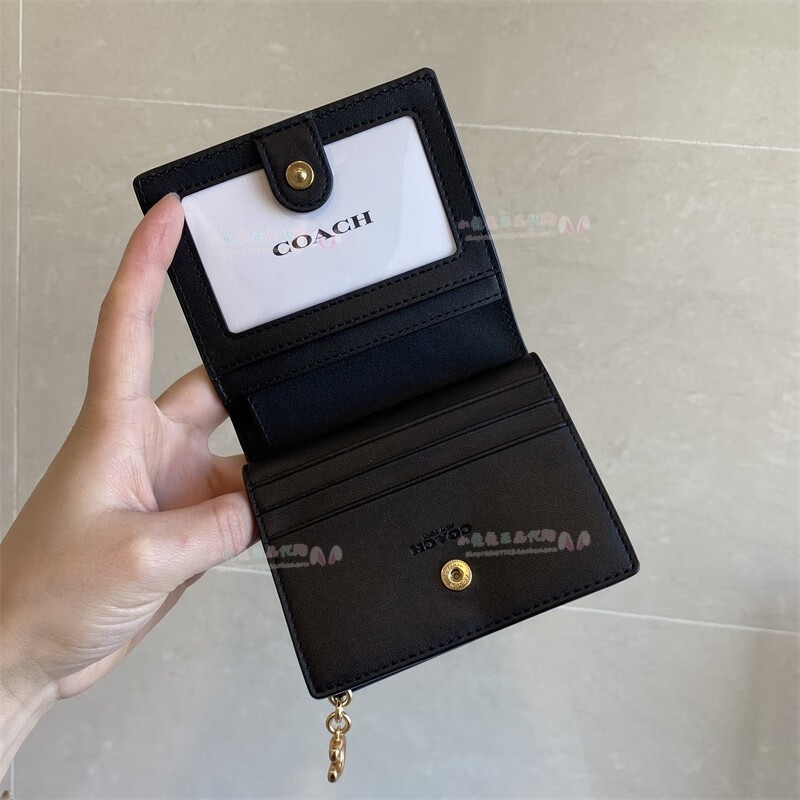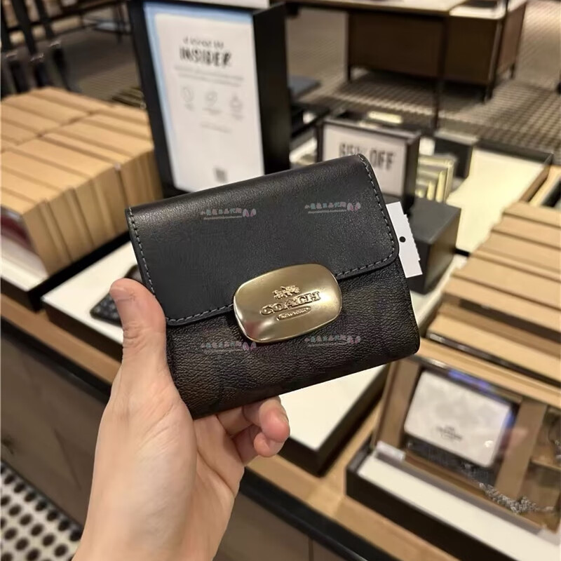 Coach Wallet Women's Wallet Snap Zipper Coin Wallet Genuine Leather Half-fold Card Holder Carriage C Buckle Brown and Light Brown New CW789