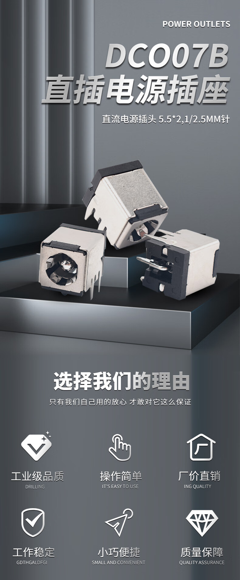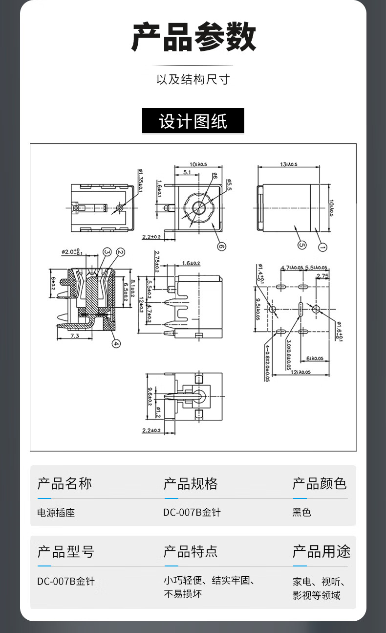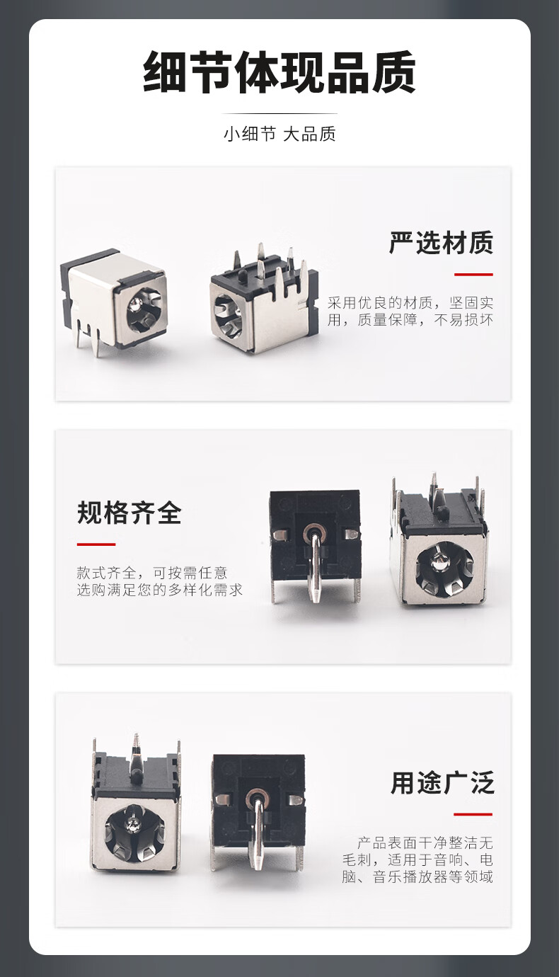 DC007B direct power socket DC power plug 5.5*2.1/2.5MM pin DC-007B iron shell silver pin 5.5*2.5 no specifications