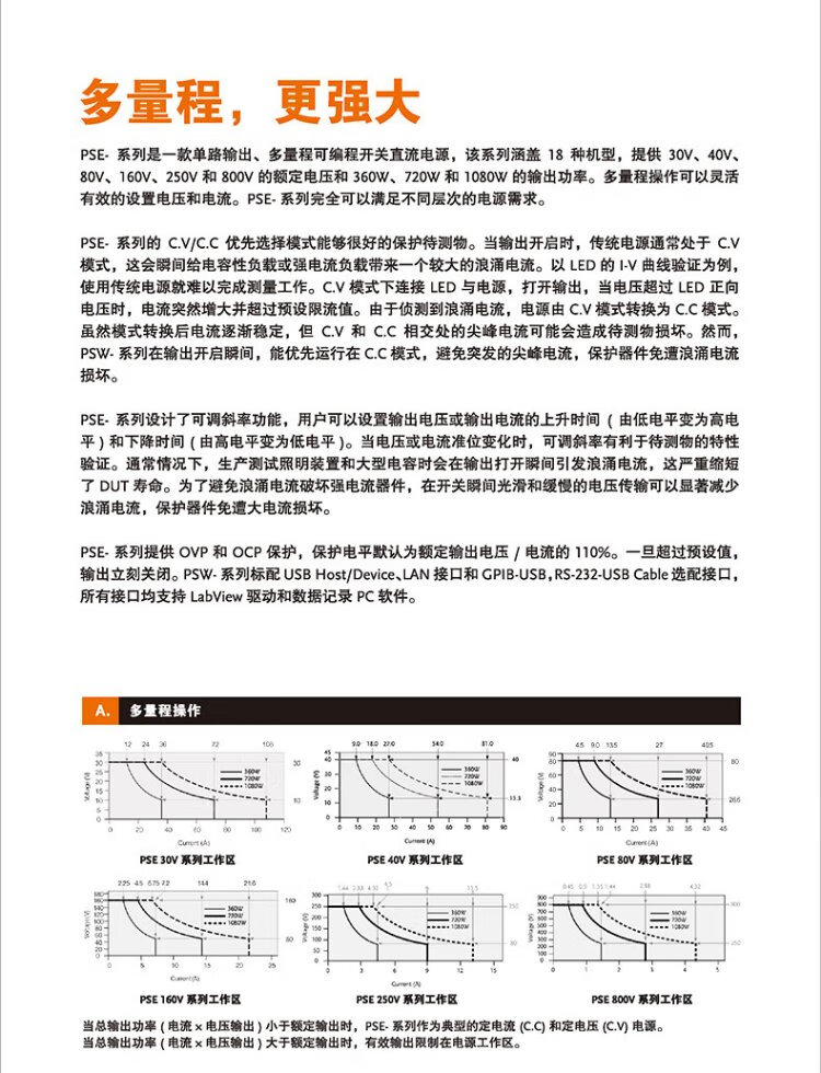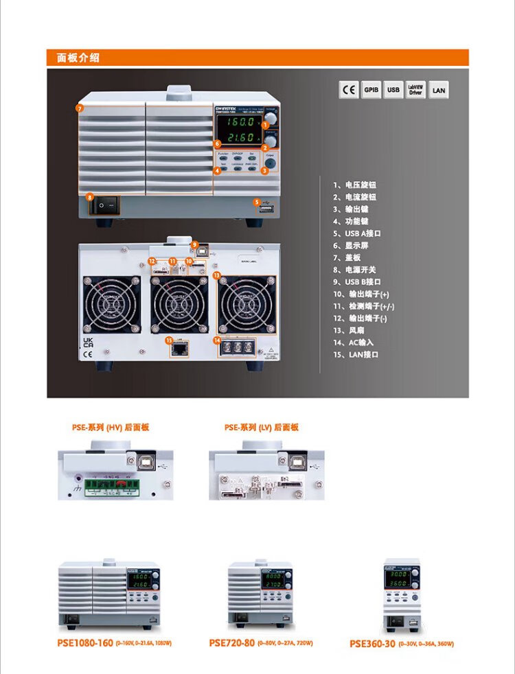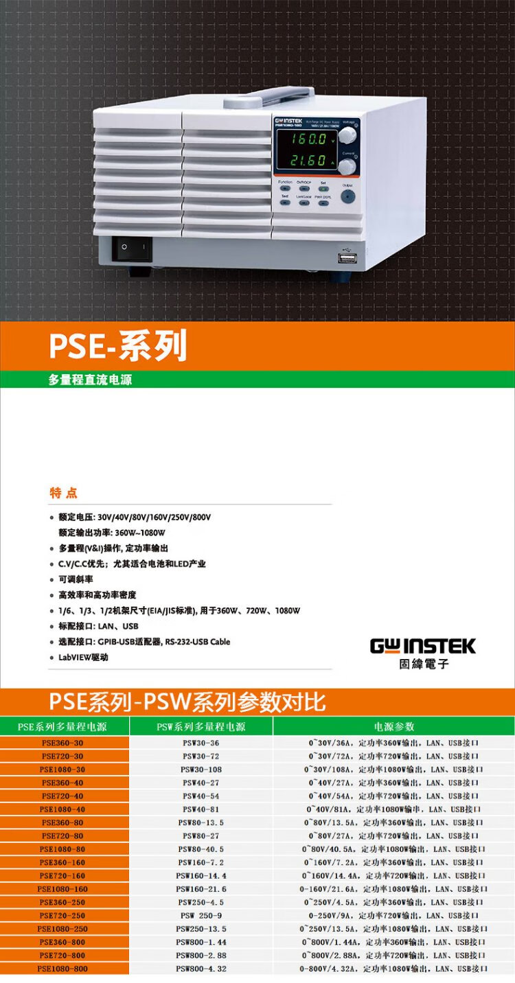 GWINSTEK multi-range DC regulated power supply PSE360-30/720-30/1080-30 series high power density PSE360-30 0~30V/36A replaces PSW