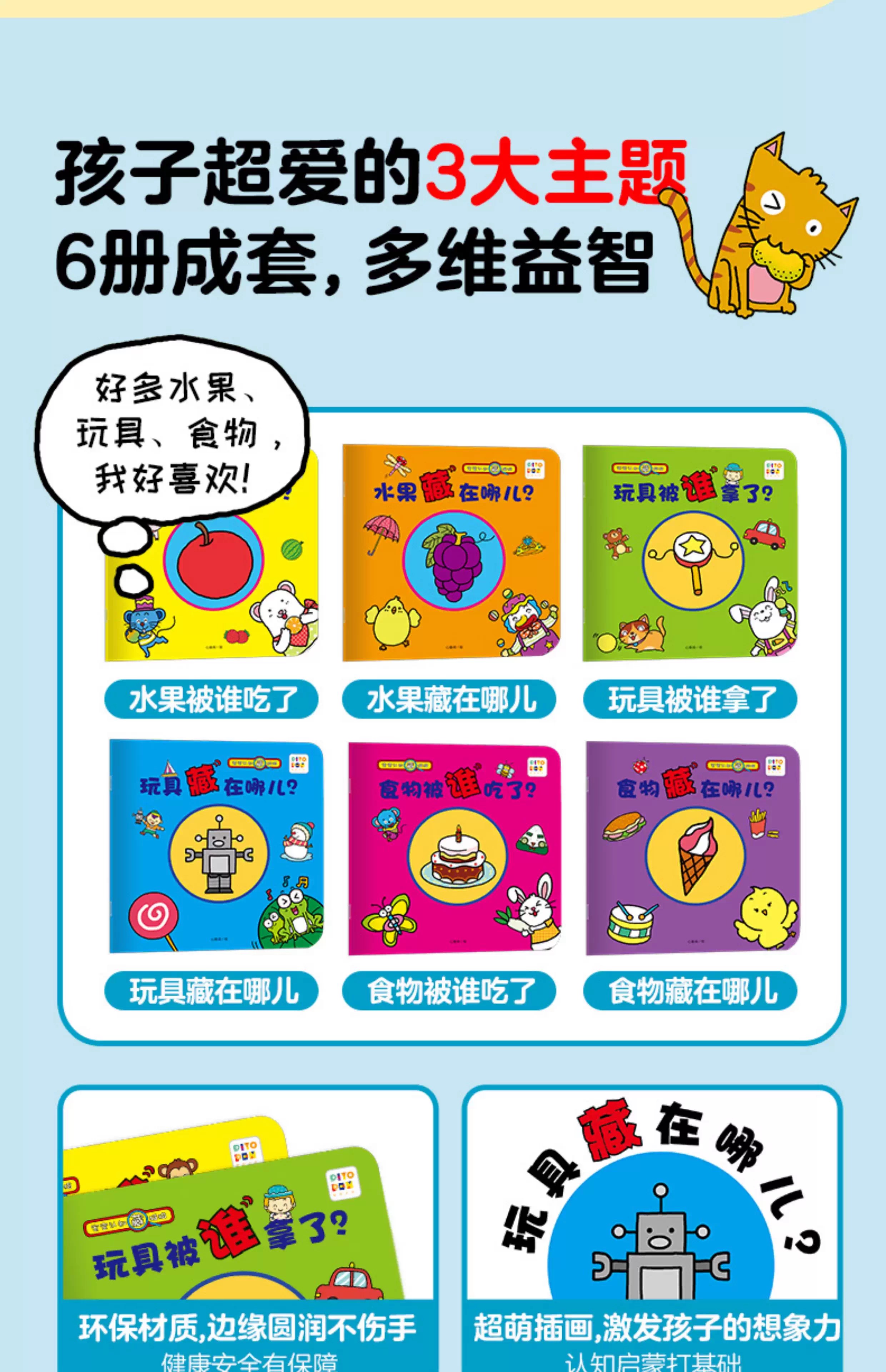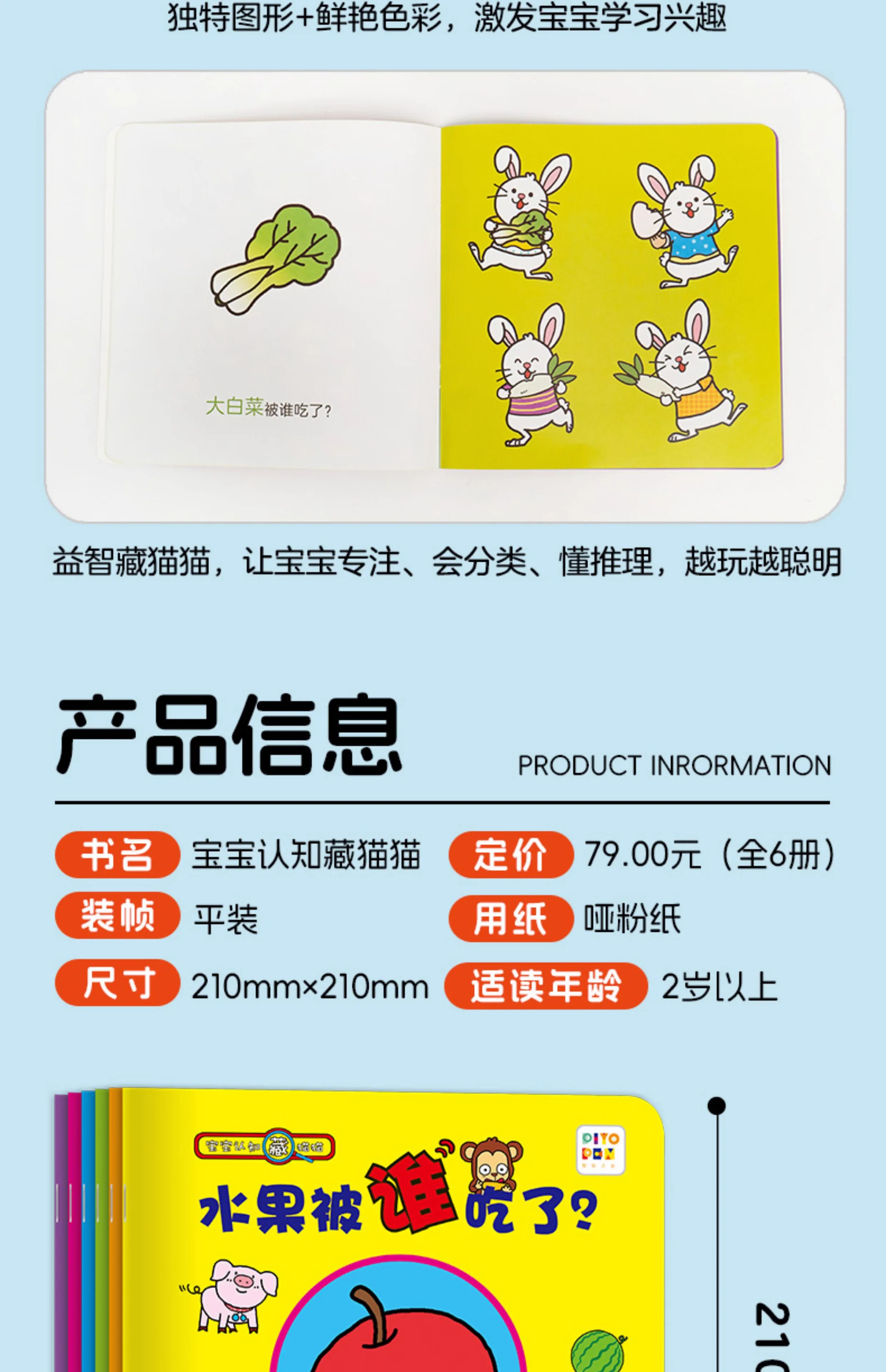 Click-to-read version of the baby's cognitive hide-and-seek, all 6 volumes of 1-3-year-old babies' early education puzzles to improve concentration, interactive rounded corners that do not hurt hands, graphics, color cognition, stories, exploration of looking at pictures, talking, interactive games, learning pictures, enlightenment picture books