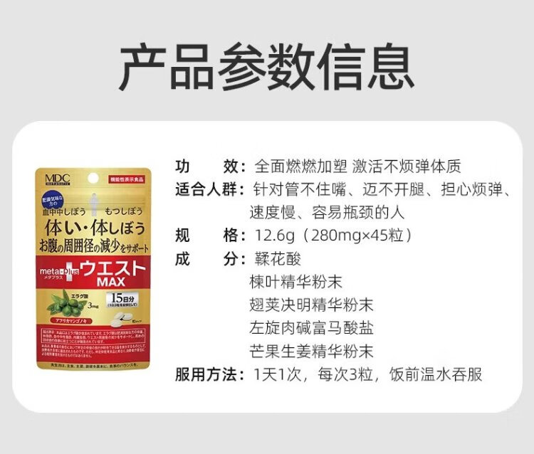 MDC Small Waist Essence MAX 5-in-1 Japanese imported enzyme L-carnitine fat-reducing and weight-reducing satiety tablets 5-in-1 45 capsules/bag