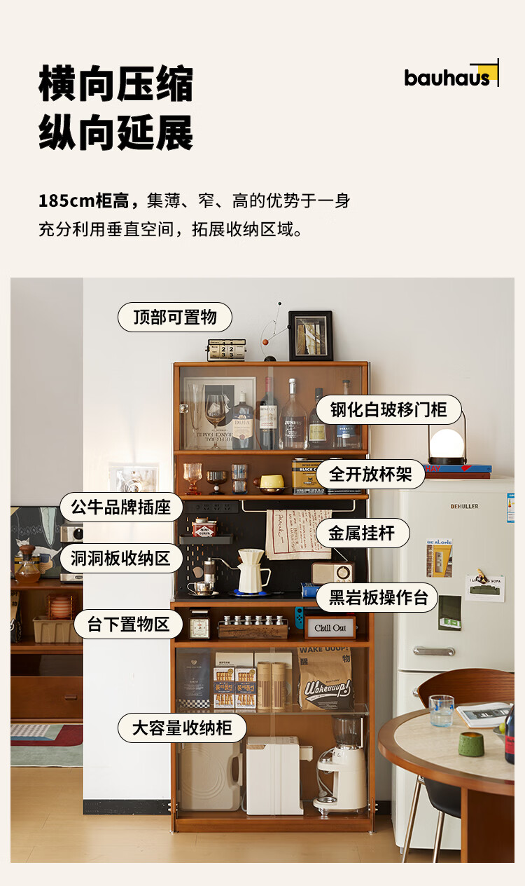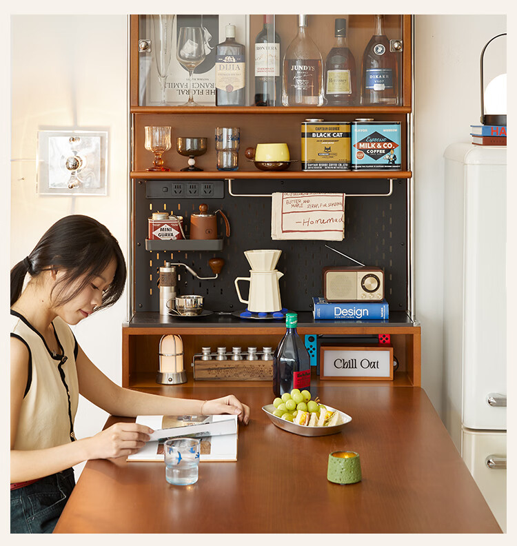 Beimo Furniture Jinluo sideboard solid wood slate retro small apartment dining table integrated ultra-thin coffee cabinet extremely narrow wine cabinet boxwood Jinluo sideboard extremely narrow #01
