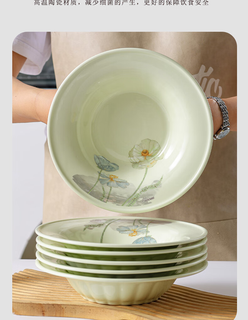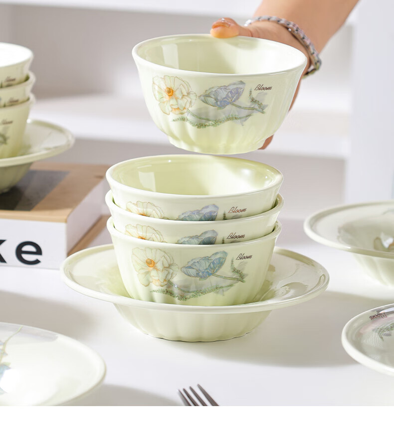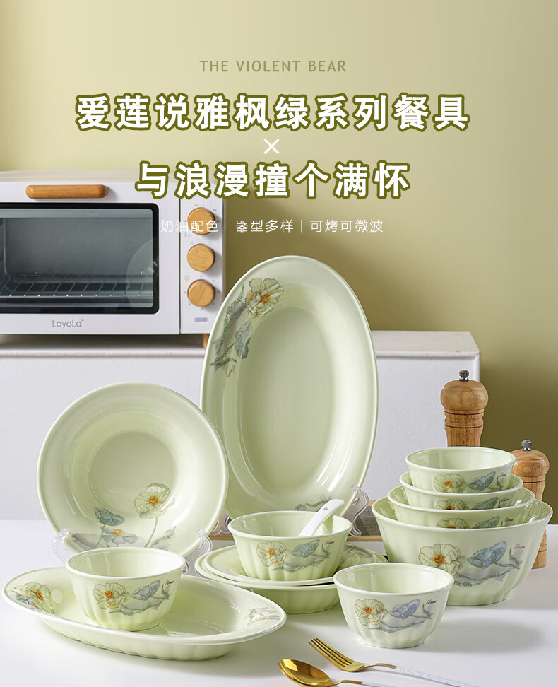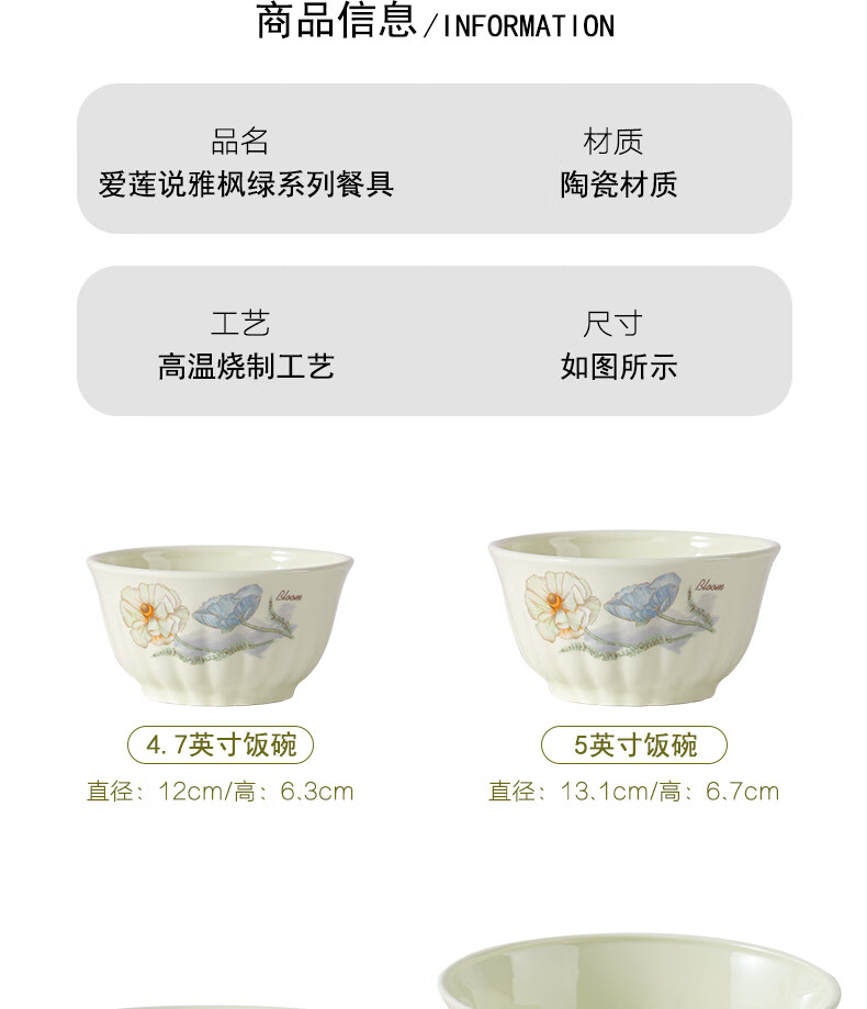 Ailian Shuo Ya Maple Green Rice Bowl 4.6 inches thick anti-scalding high-value lotus shape eating bowl ceramic bowl Ailian Shuo Ya Maple Green 10 4.5 inch bowls