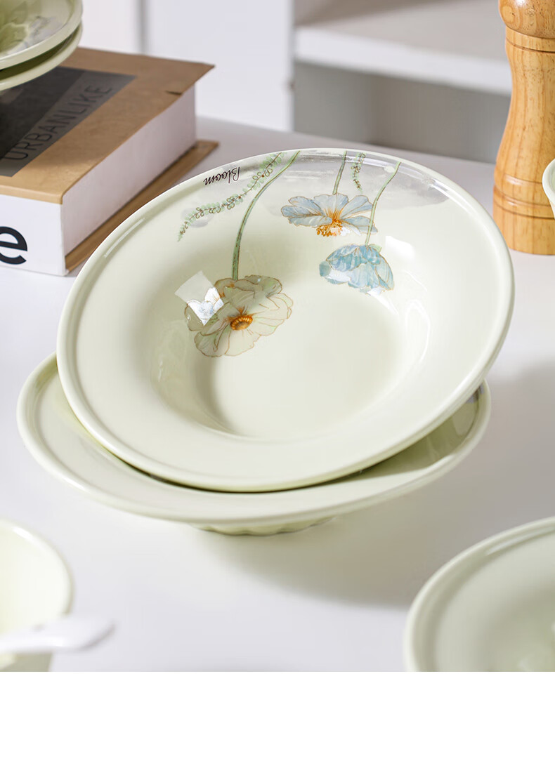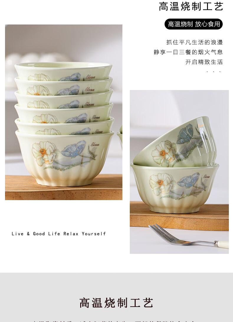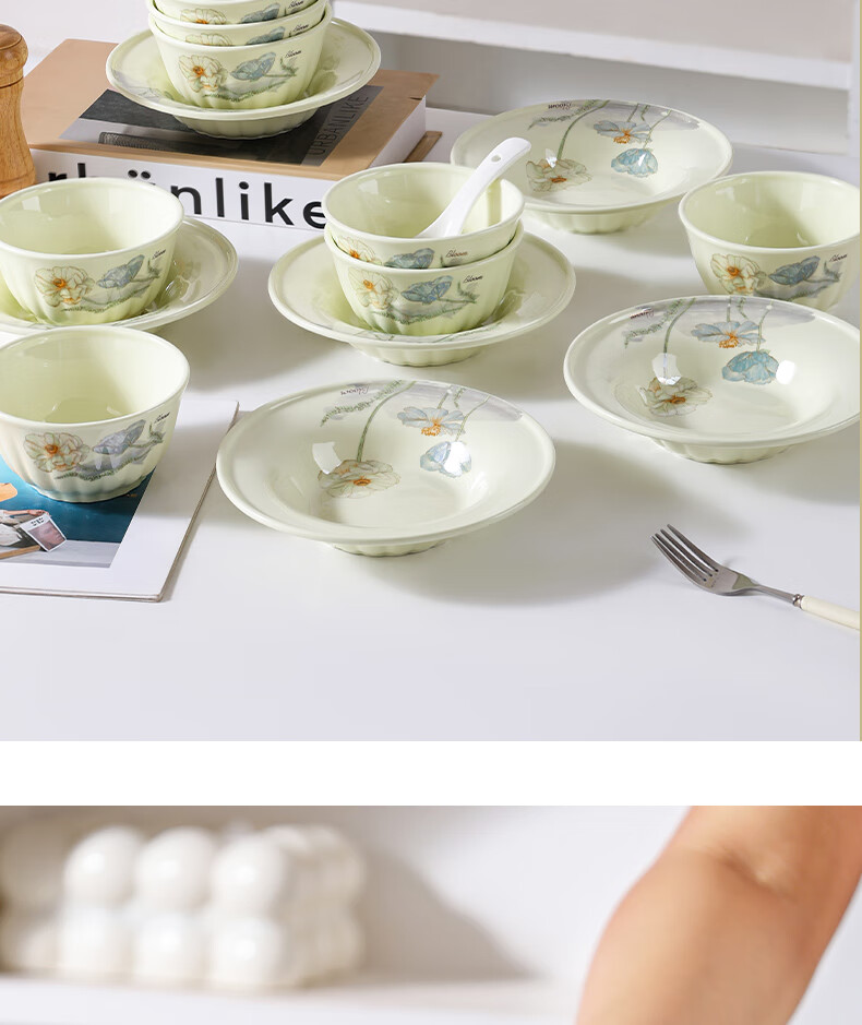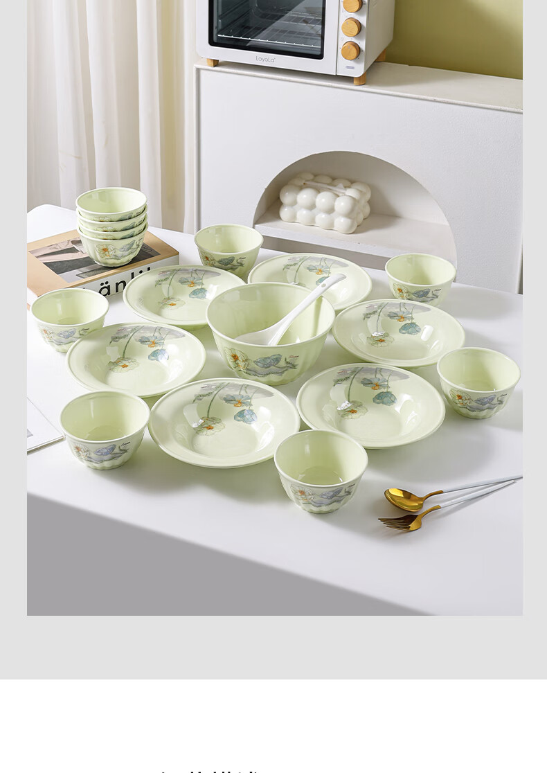 Ailian Shuo Ya Maple Green Rice Bowl 4.6 inches thick anti-scalding high-value lotus shape eating bowl ceramic bowl Ailian Shuo Ya Maple Green 10 4.5 inch bowls