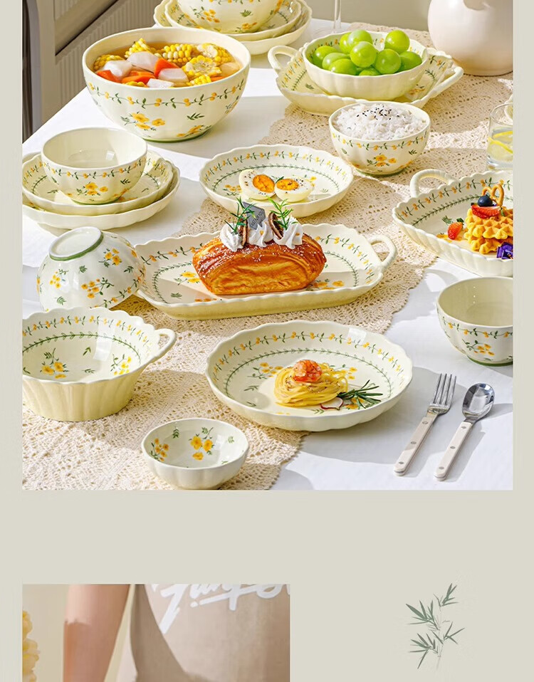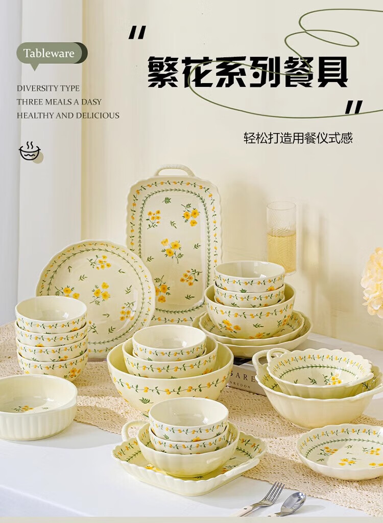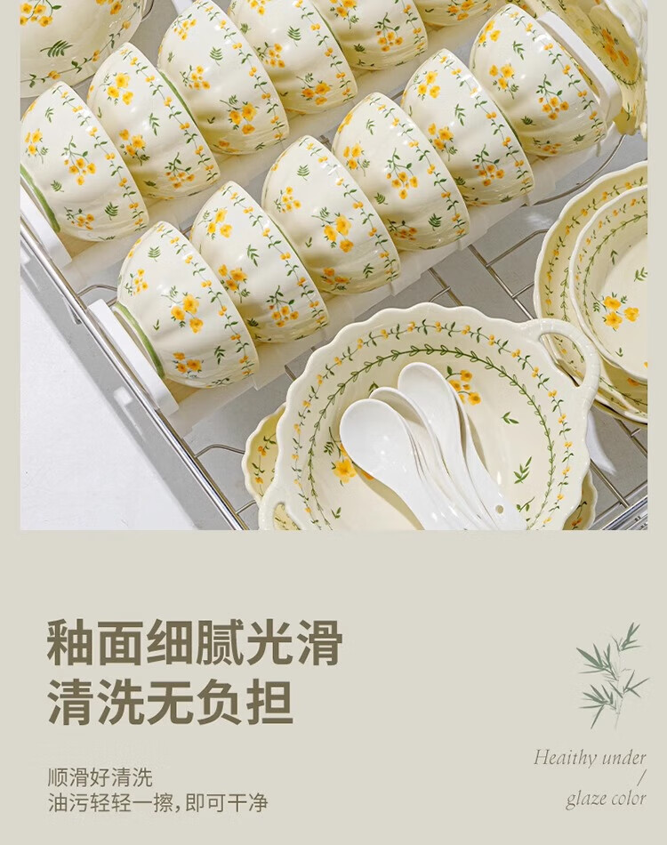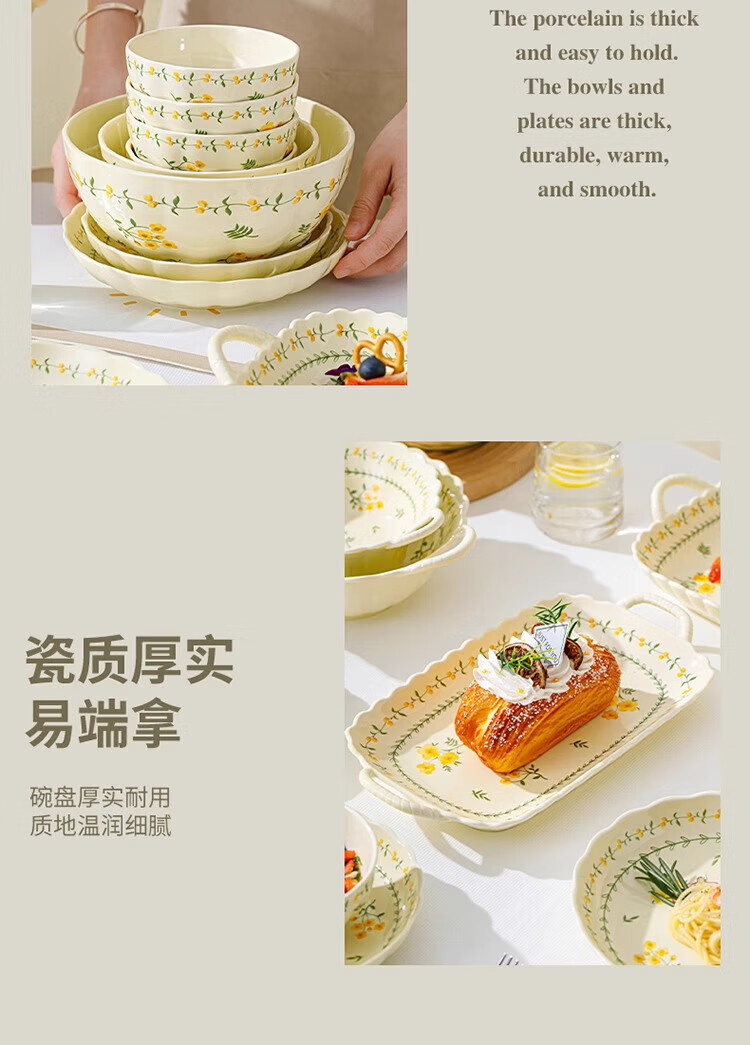2025 New Year tableware, underglaze colored bowls and plates, good-looking, moving to a new home, especially good-looking bowls and dishes set, home 7-piece set-yellow glaze, springy and cute