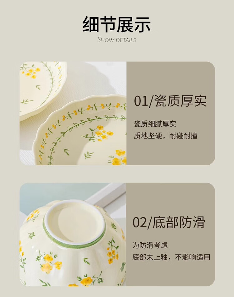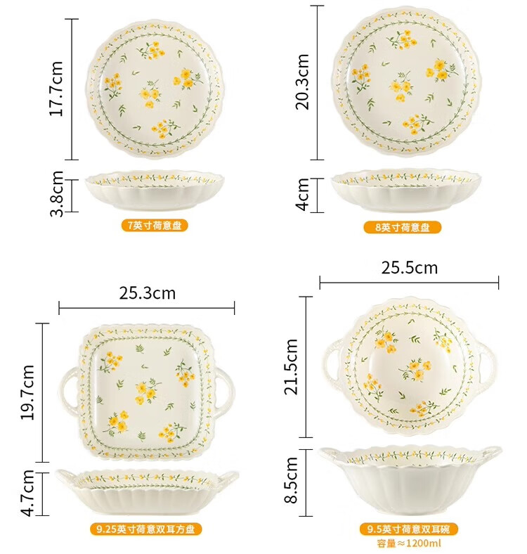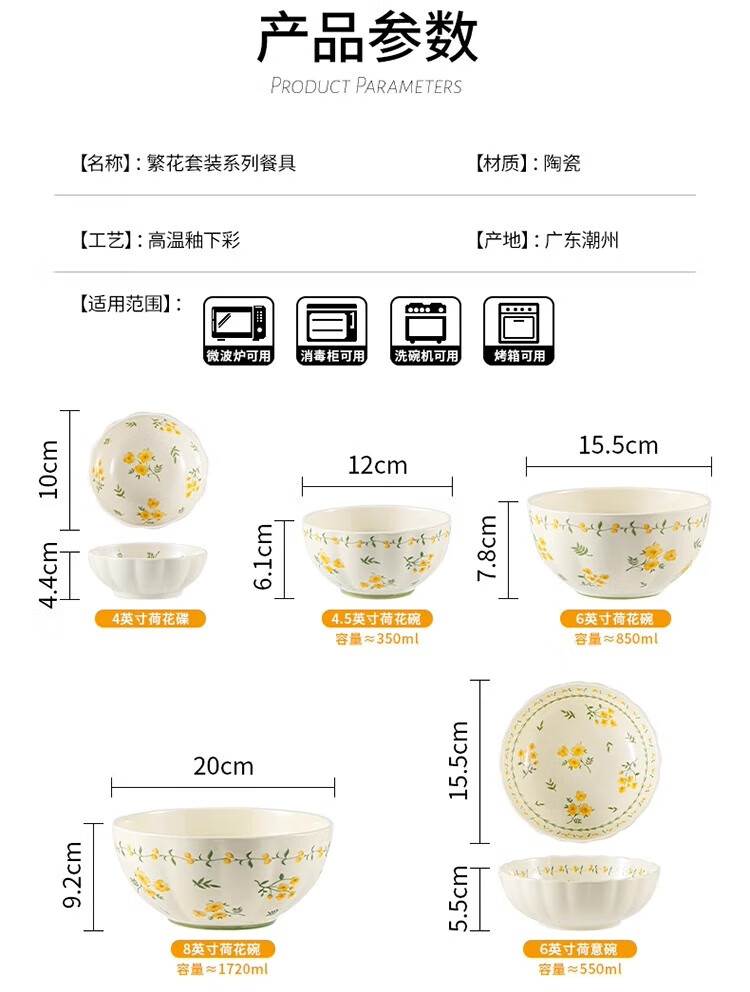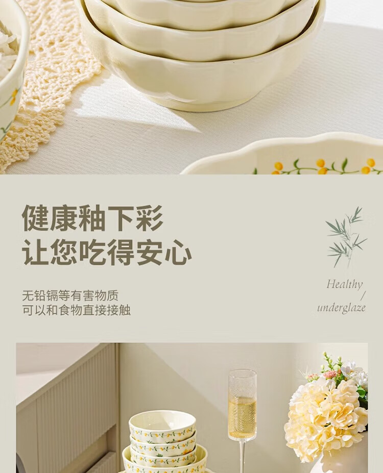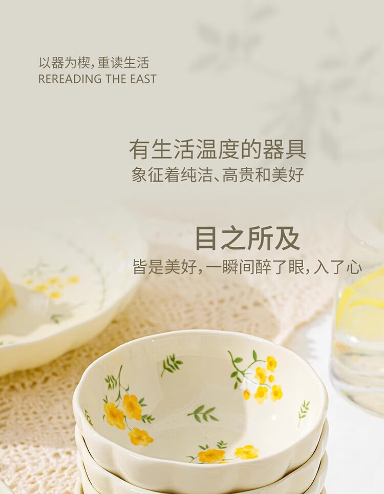 2025 New Year tableware, underglaze colored bowls and plates, good-looking, moving to a new home, especially good-looking bowls and dishes set, home 7-piece set-yellow glaze, springy and cute