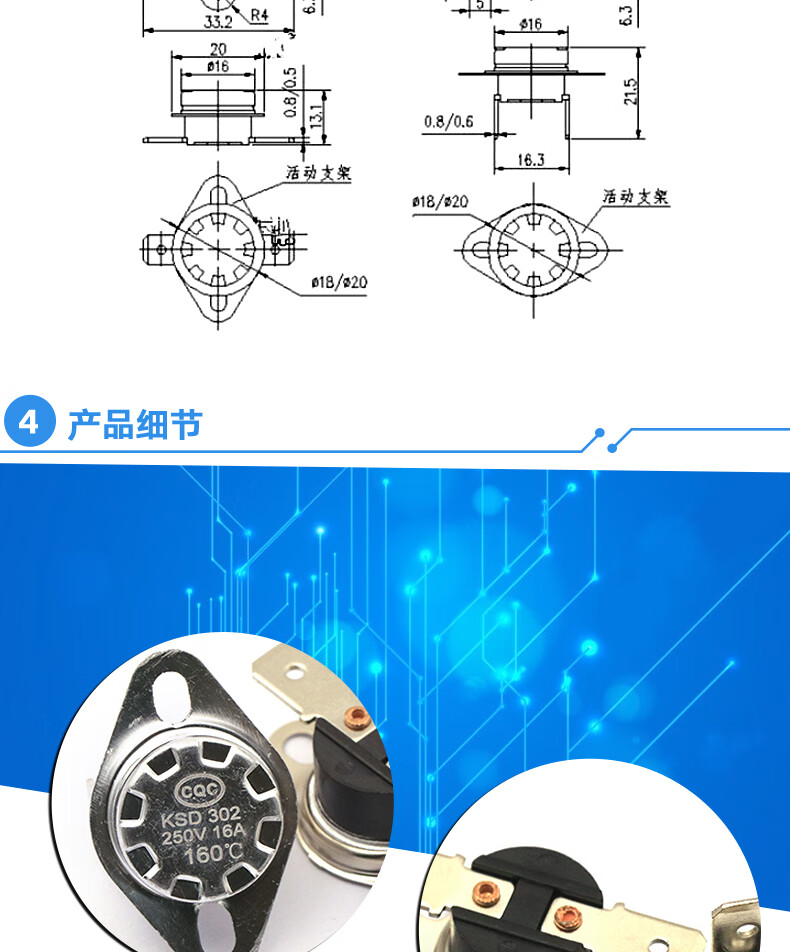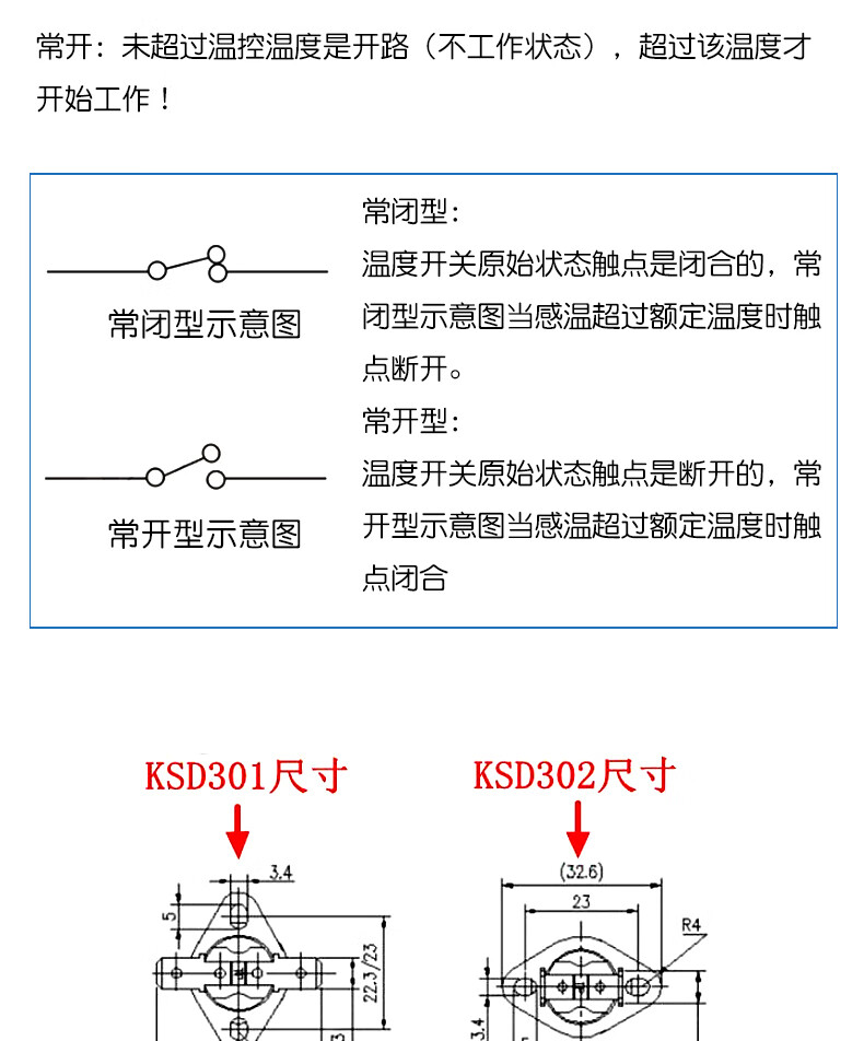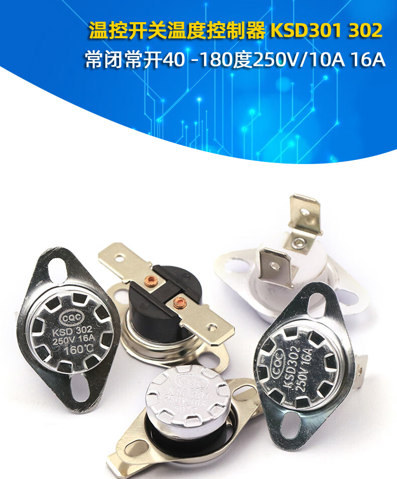 Dafuri KSD301 302 temperature control switch temperature controller normally open and normally closed 85-180 degrees 250V/10A 16A ceramic temperature control switch KSD302 normally closed 16A 85 degrees (1 piece)