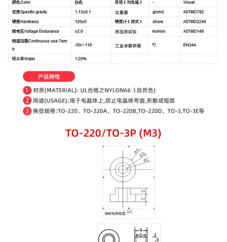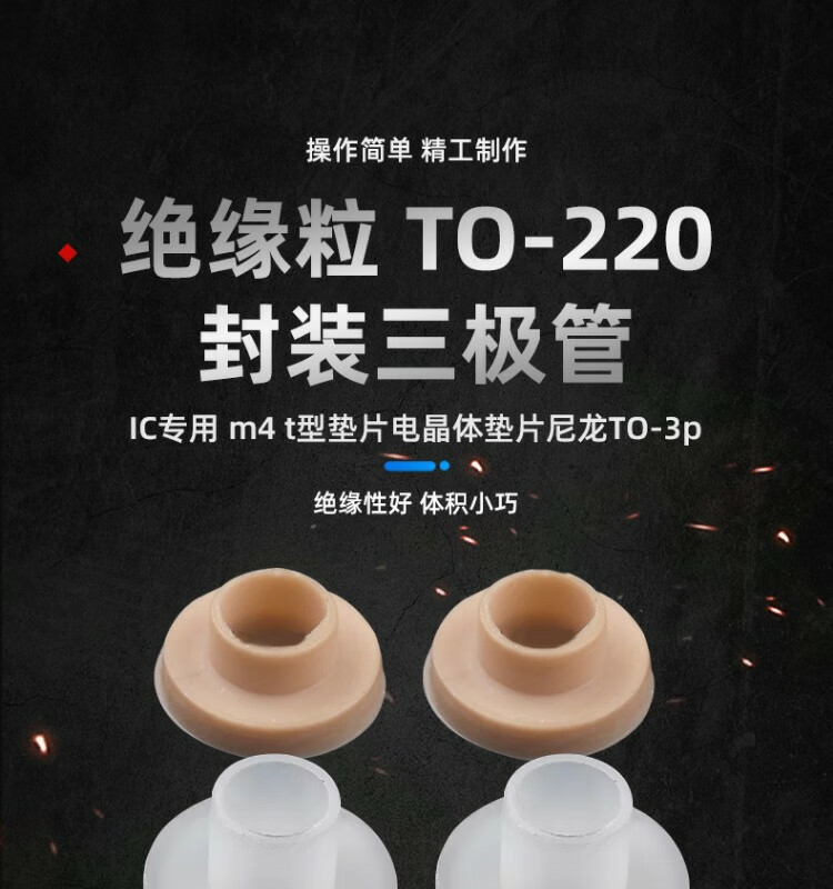 Dafurui insulating particles TO-220 package transistor/IC special m4 T-type gasket transistor gasket nylon TO-3p TO-220 insulating particles beige (50 pcs)