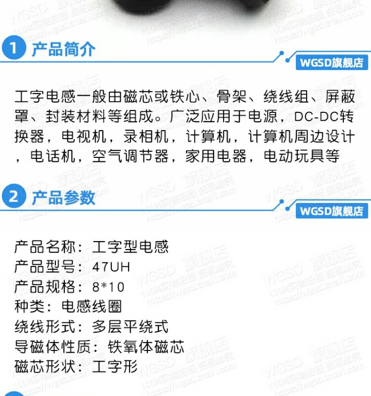 Dafuri 47UH inductor I-shaped inductor power inductor volume 8*10 (5 pieces) default