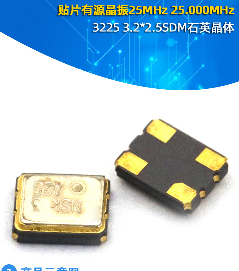 Dafuri SMD active crystal 25MHz 25.000MHz 3225 3.2*2.5SDM quartz crystal default