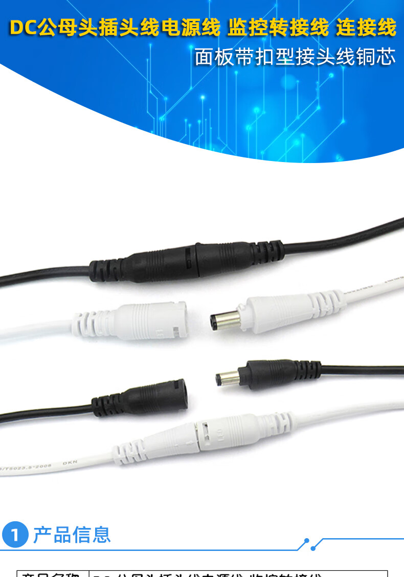 Dafurui DC male and female plug cable power cord monitoring adapter cable connection cable panel buckle connector cable copper core black (male and female 2 sets)