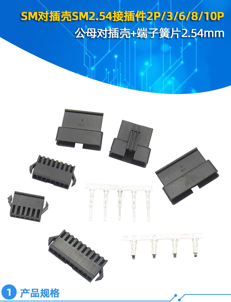 Dafului SM pair of plug-in shells SM2.54 connector 2P/3/6/8/10P 2.54mm male and female pair of plug-in shells + terminals female terminal SM pair of plug-in connectors (50 pcs)