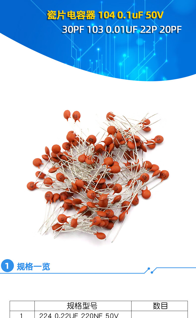 Dafuri Ceramic Capacitor 104 0.1uF 100NF 50V 30PF 103 0.01UF 22P 1 Commonly used ceramic capacitor packs 2pf-0.1UF 10 pieces each, a total of 30 types