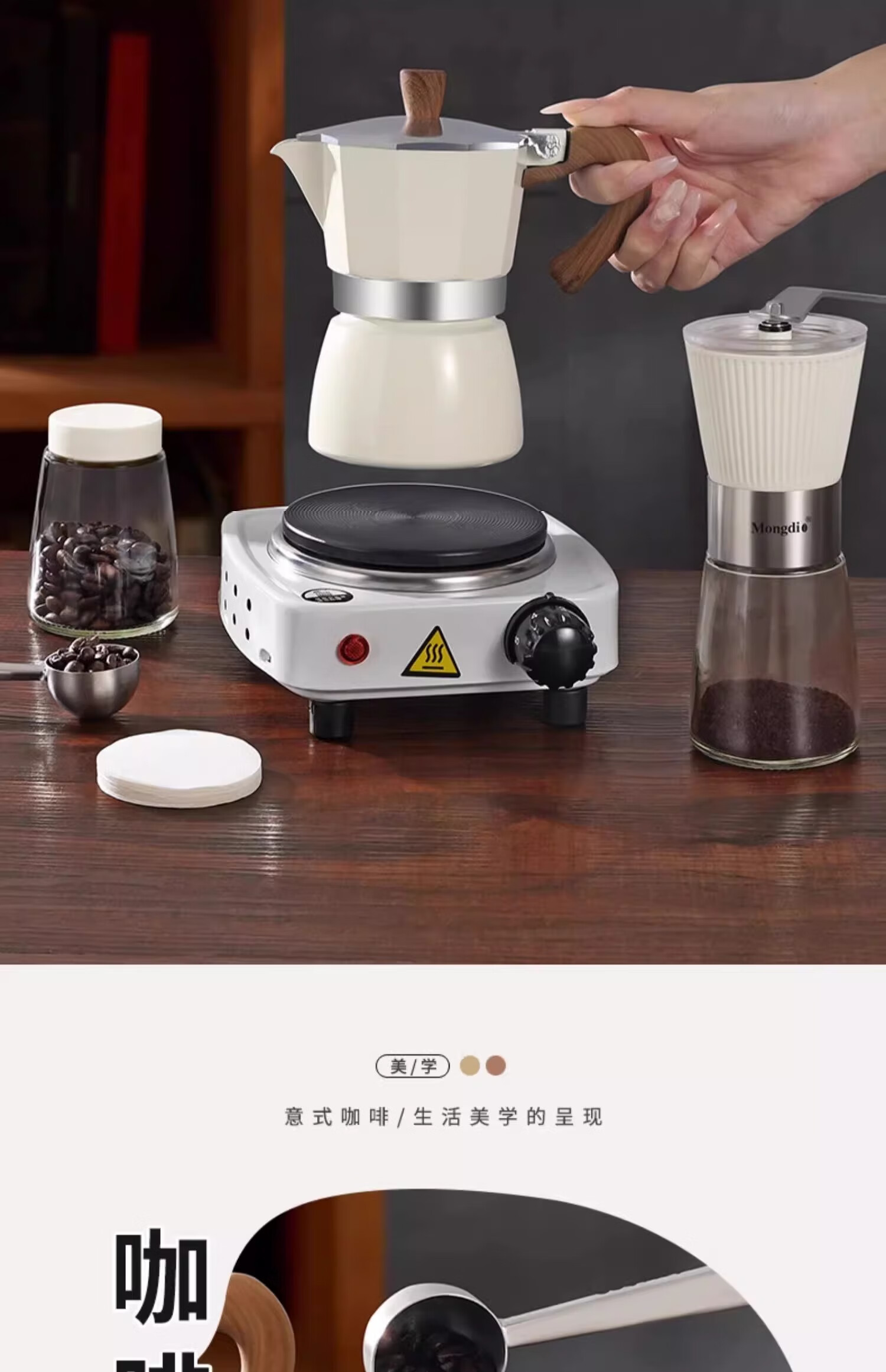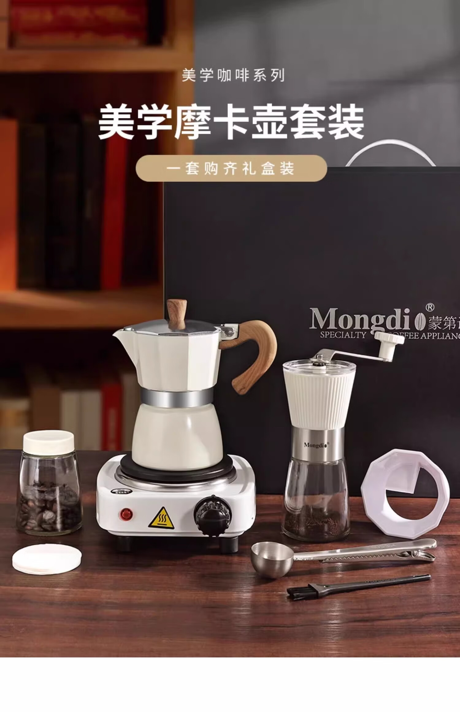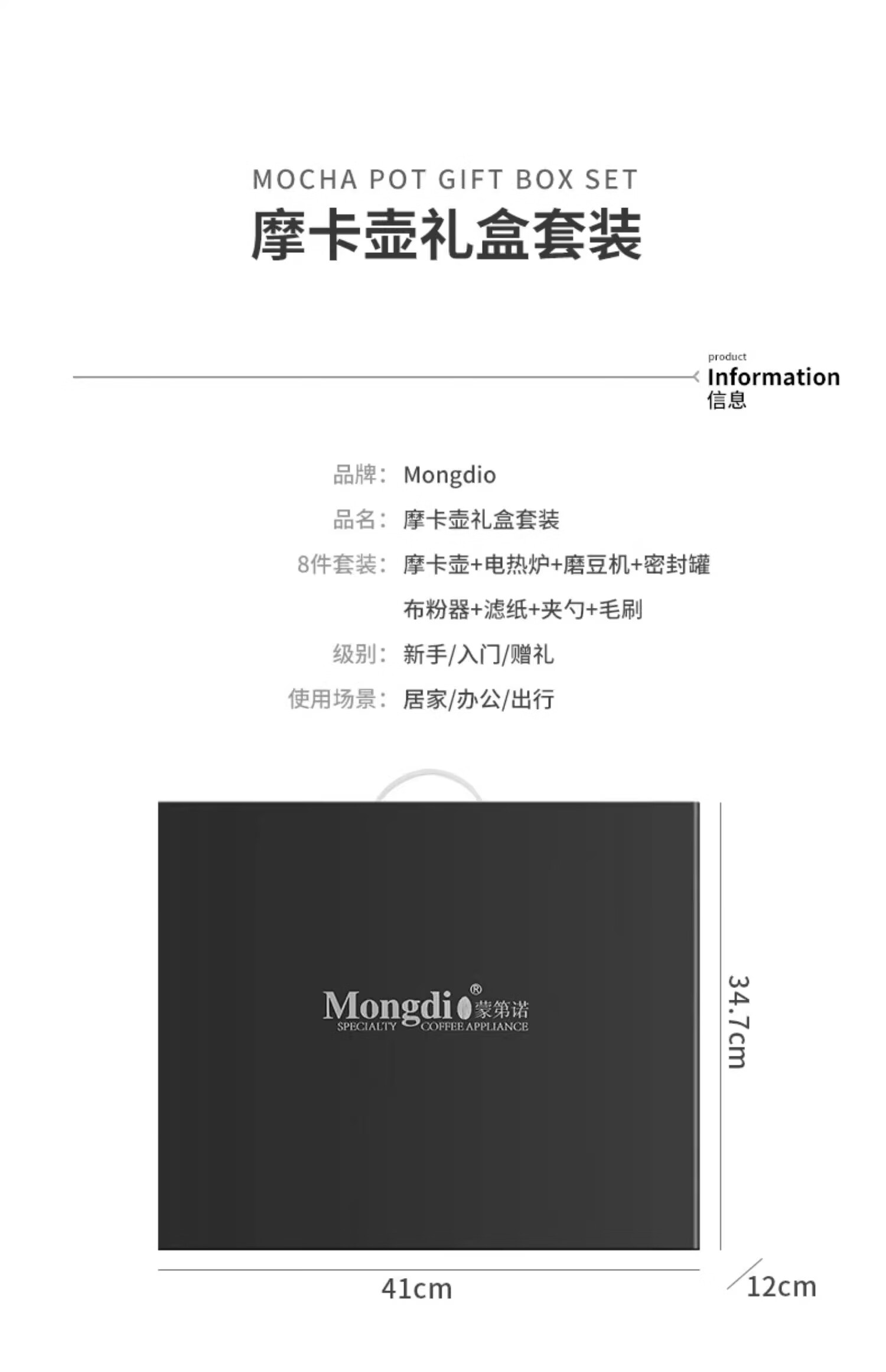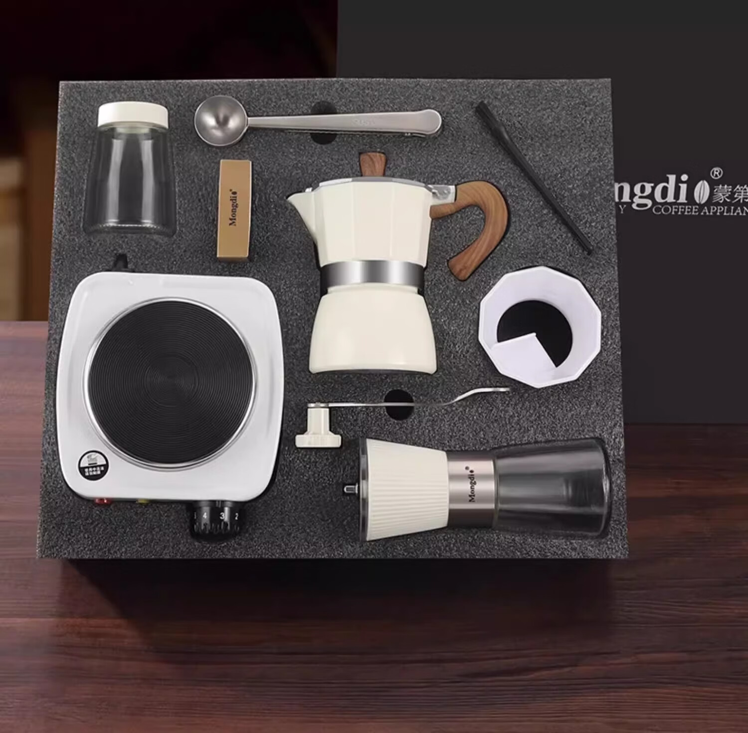 Mongdio Moka Pot Set Gift Box Birthday Gift Girls Men Housewarming Newly Married Practical Business Accompanying Gift Black Moka Pot Gift Box 8-piece Set