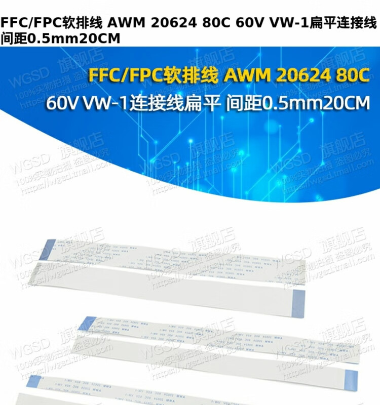 Dafuri FFC/FPC soft cable awm20624 80c60v LCD flat 0.5mm connecting cable reverse 12P (2 pcs)