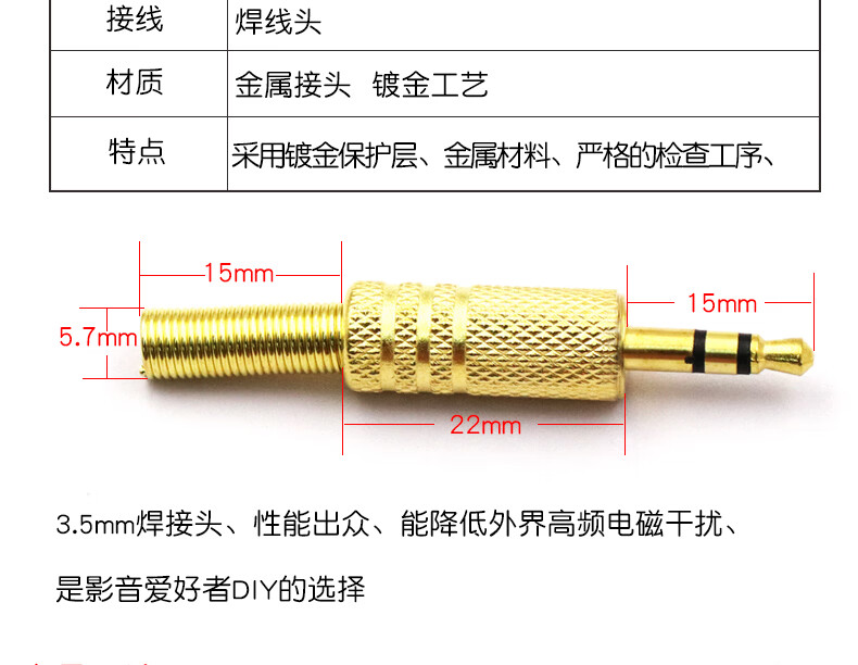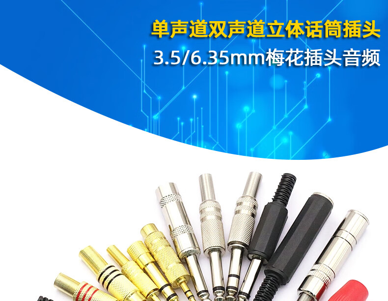 Dafuri 3.5 2.5/6.35mm headphone plug plum blossom connector mono channel stereo microphone welding audio head 6.5 male to 3.5mm female audio adapter