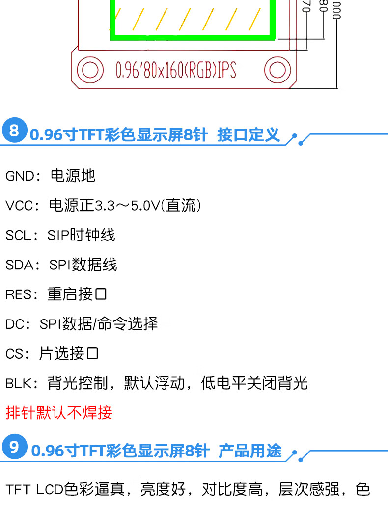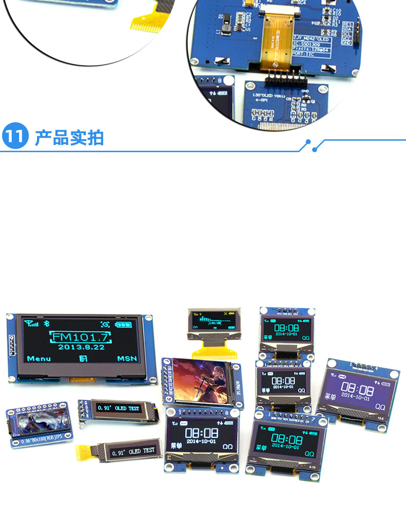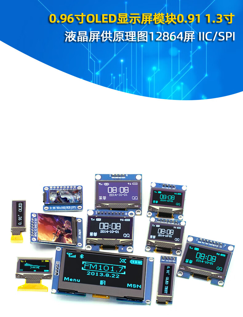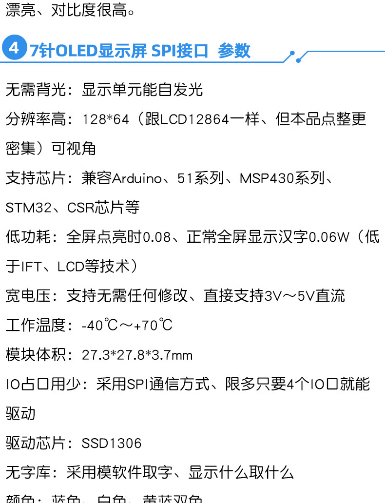 0.96-inch OLED display module SPI 1.3 0.91 LCD 12864 color screen 4-pin 6 ssd1306 new 0.96-inch 4-pin white with voltage stabilizing solder header