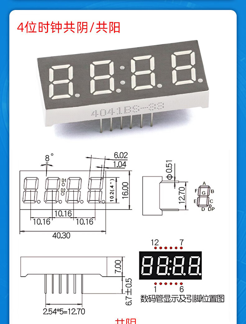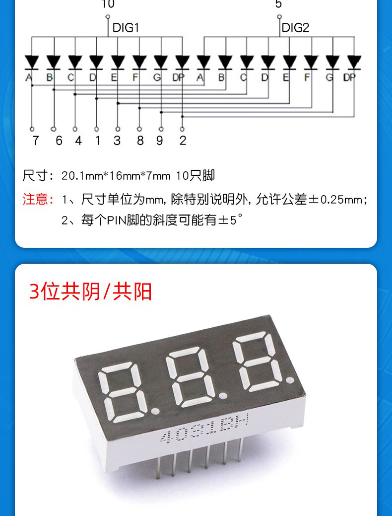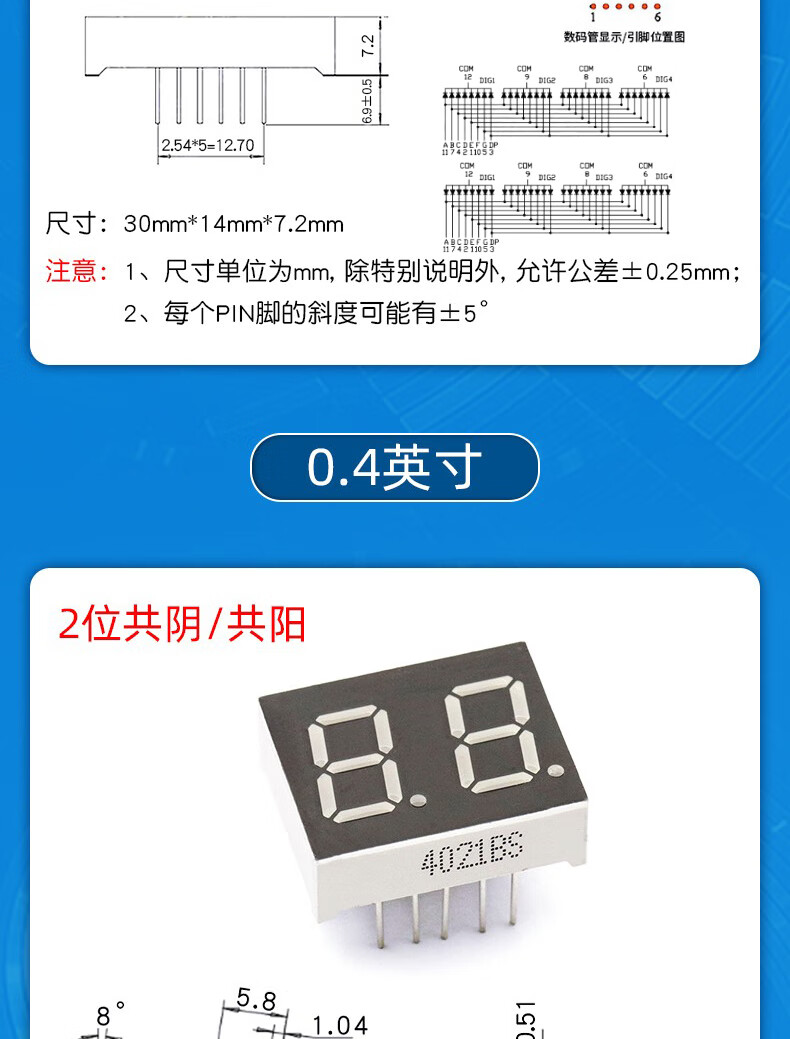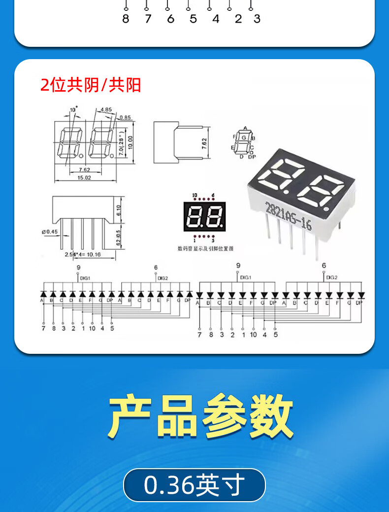 Dafurui digital tube 0.56 0.36 inch 0.4 red digital display 2/3/4 digits common Yin/Total Yang two three four clock 0.36 inch 2 digits common Yang red (2 pcs