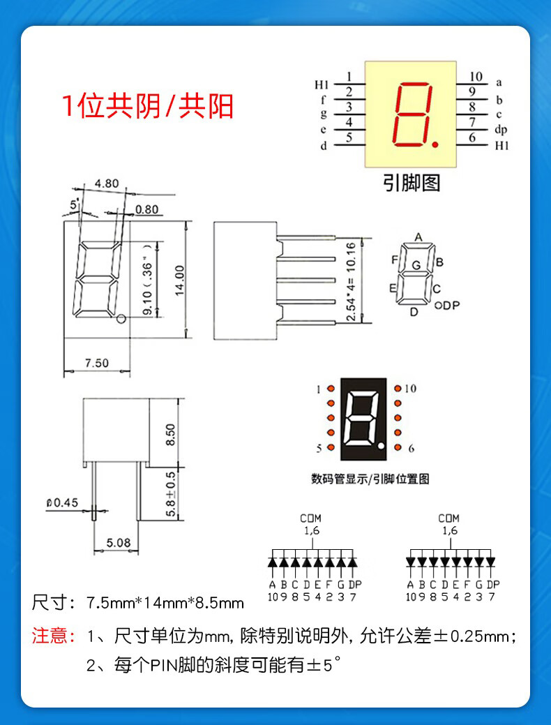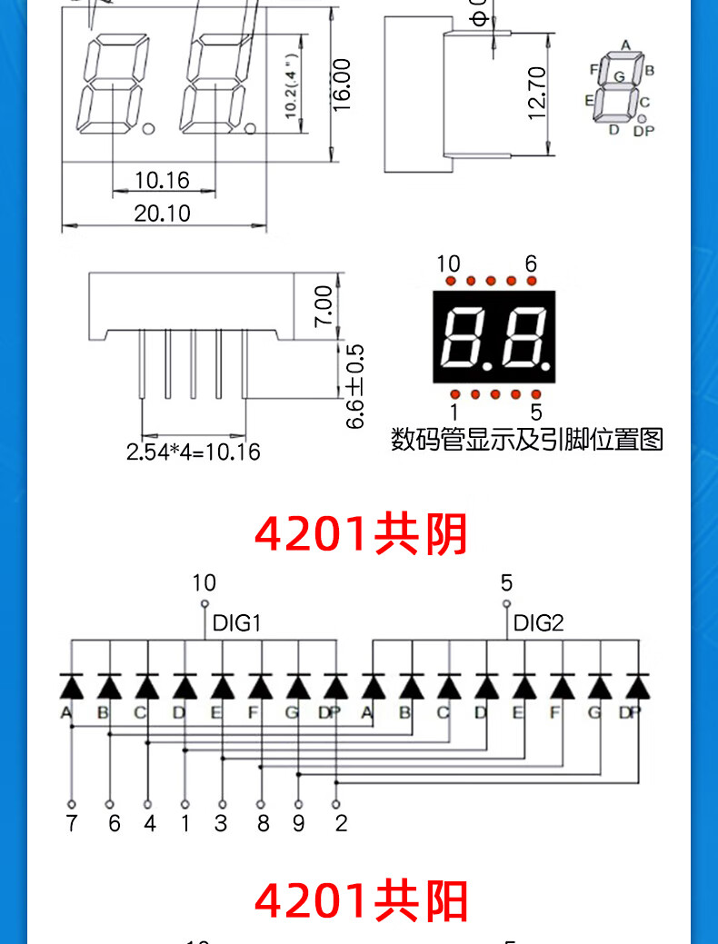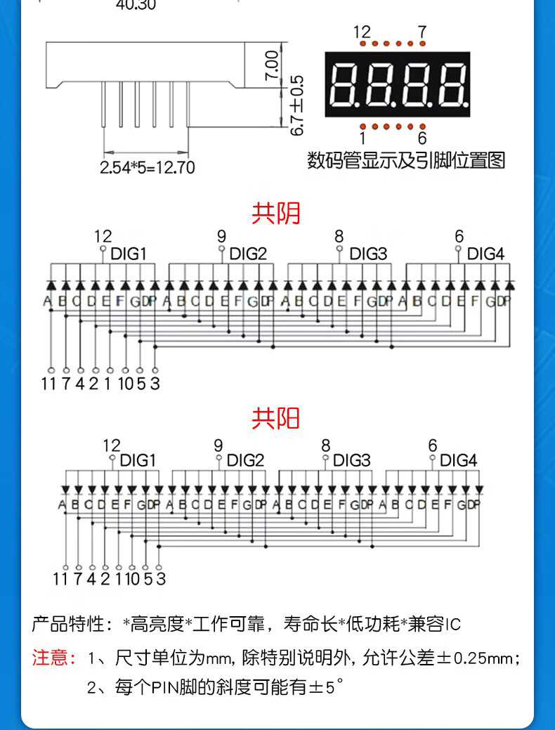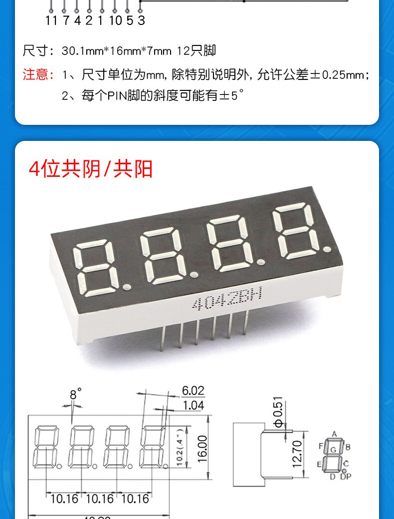 Dafurui digital tube 0.56 0.36 inch 0.4 red digital display 2/3/4 digits common Yin/Total Yang two three four clock 0.36 inch 2 digits common Yang red (2 pcs