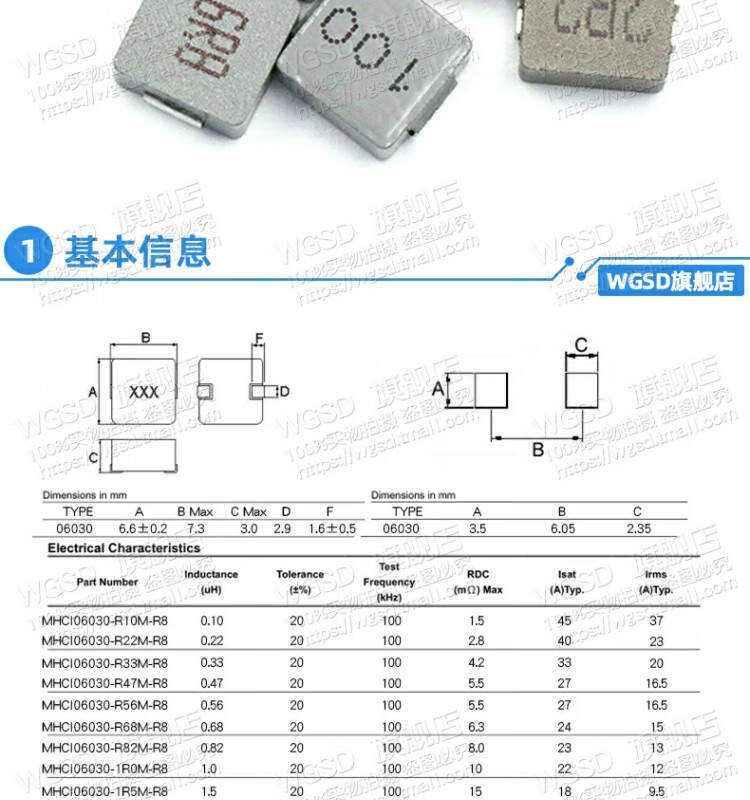 Dafuri 0630 1040 one-piece alloy chip power inductor 1/2.2/3.3/4.7/22/6.8/10UH 10UH (100) chip power inductor (5 pieces)