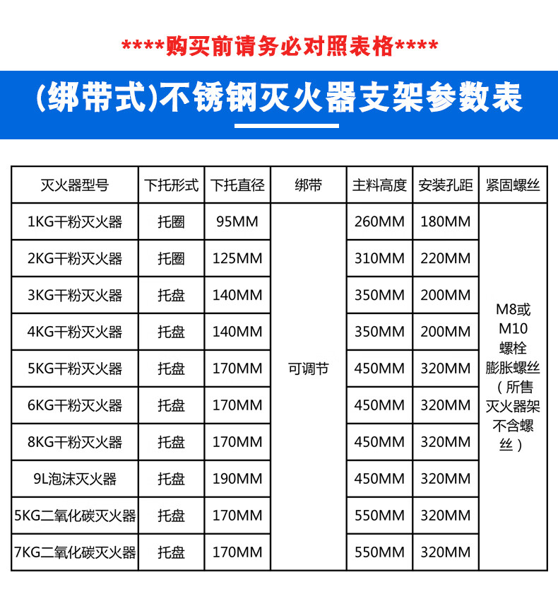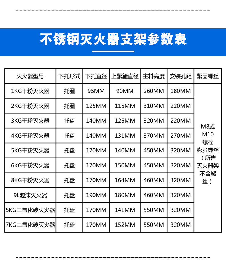 Factory direct sales 304 stainless steel marine vehicle fire extinguisher fixed bracket hanger 12345689kg kg 2KG dry powder fire extinguisher stainless steel bracket