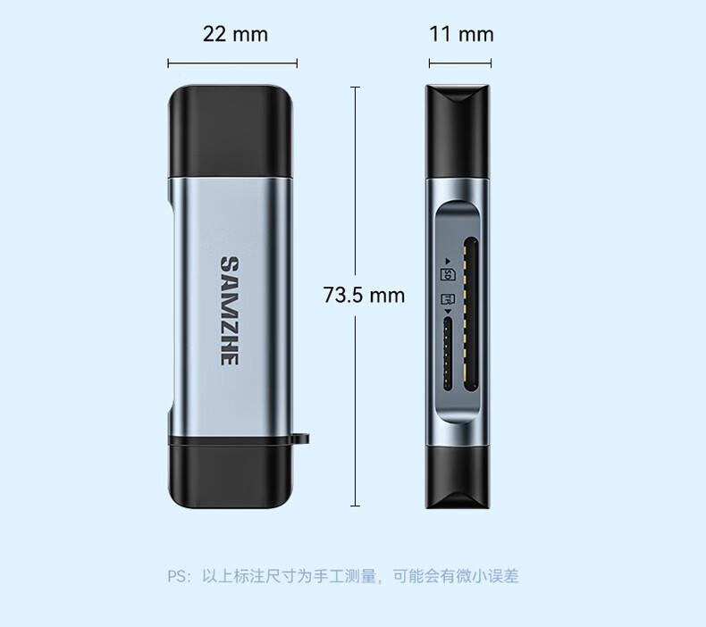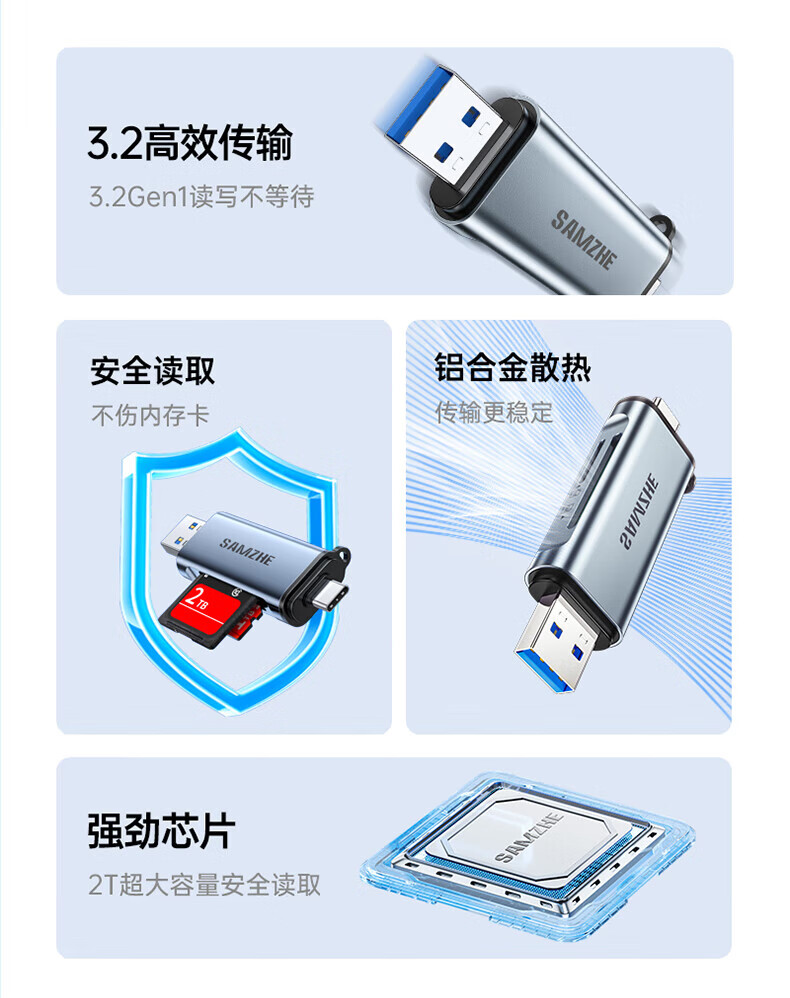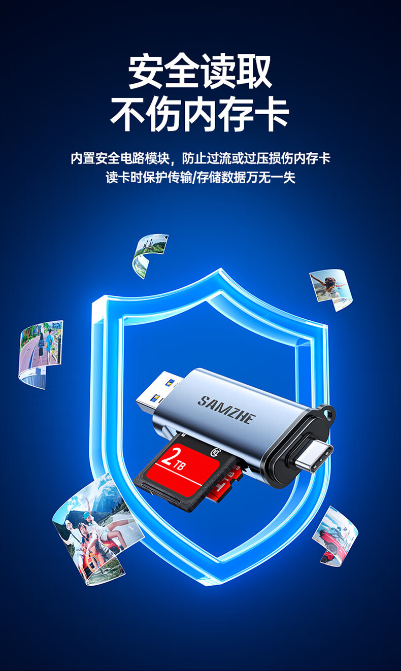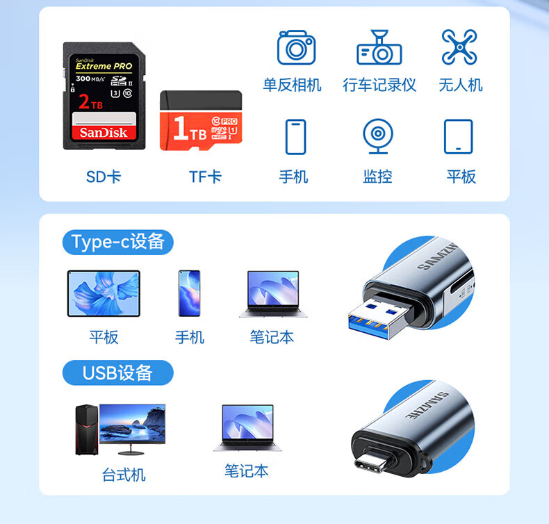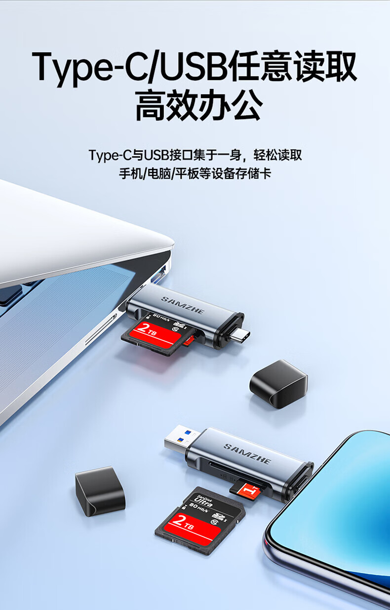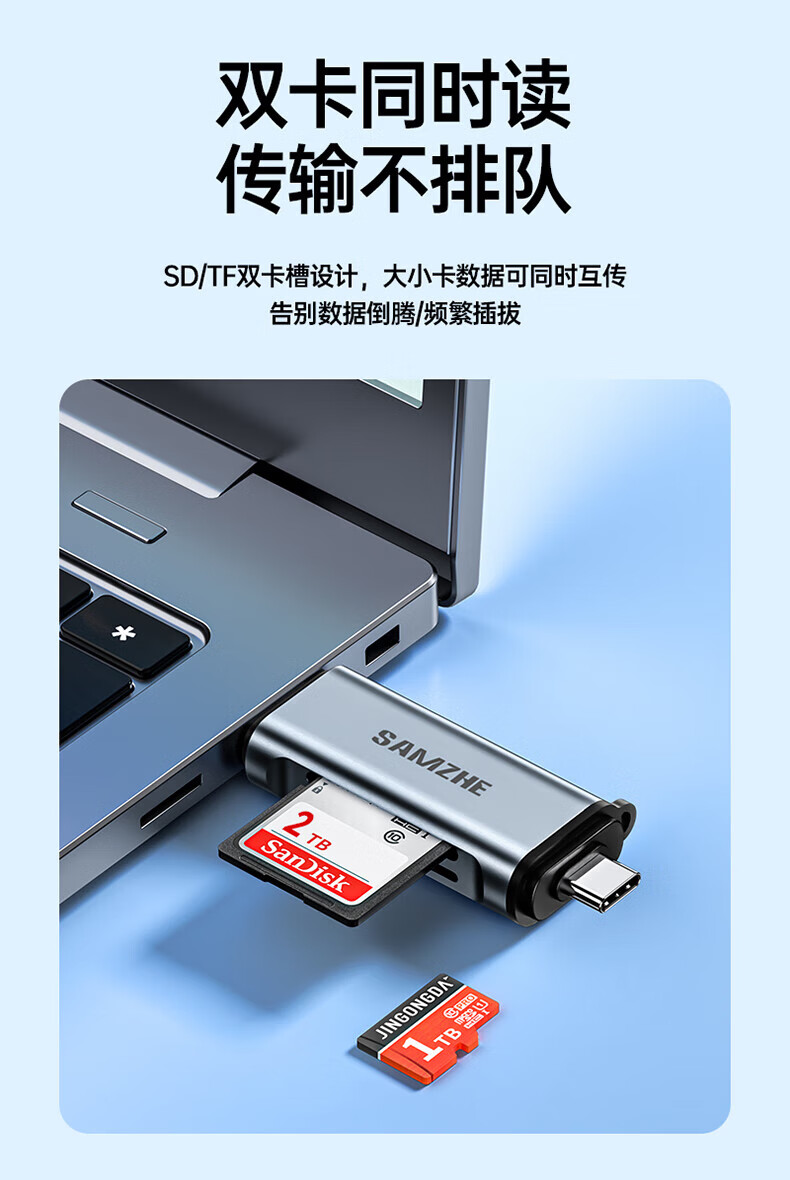 Shanze USB3.0 high-speed card reader dual card dual reading multi-function SD/TF card reader supports mobile phone SLR camera driving recorder monitoring storage memory card Type-C card reader TF zinc alloy