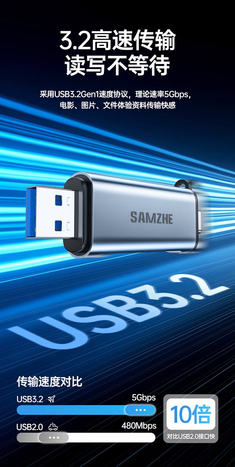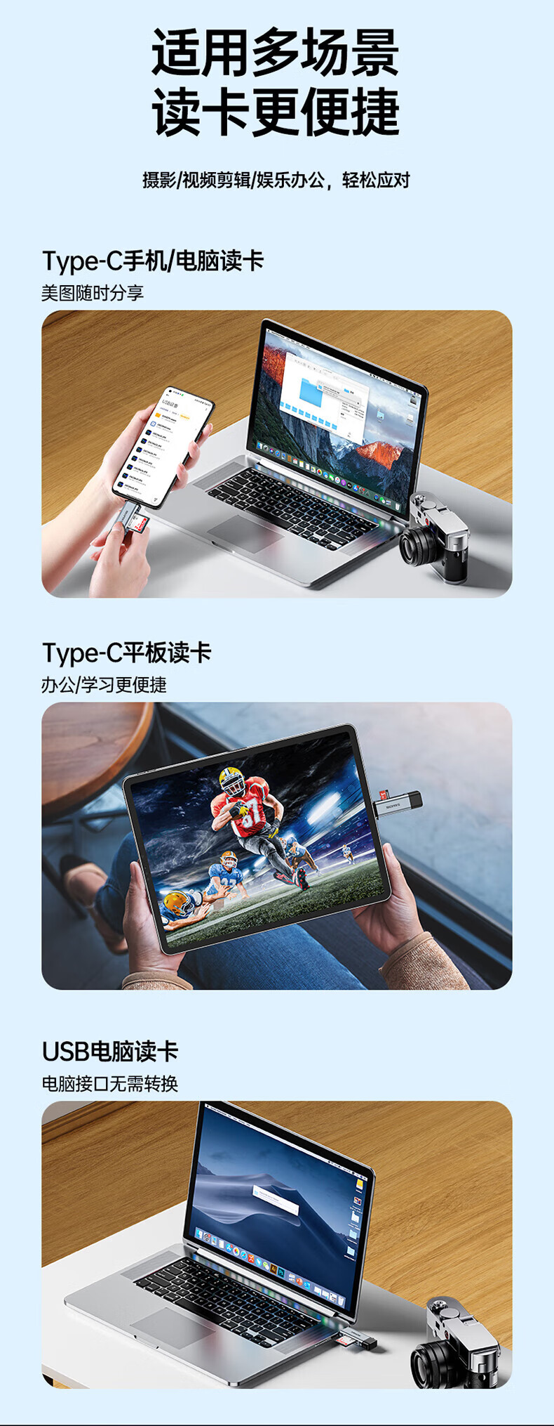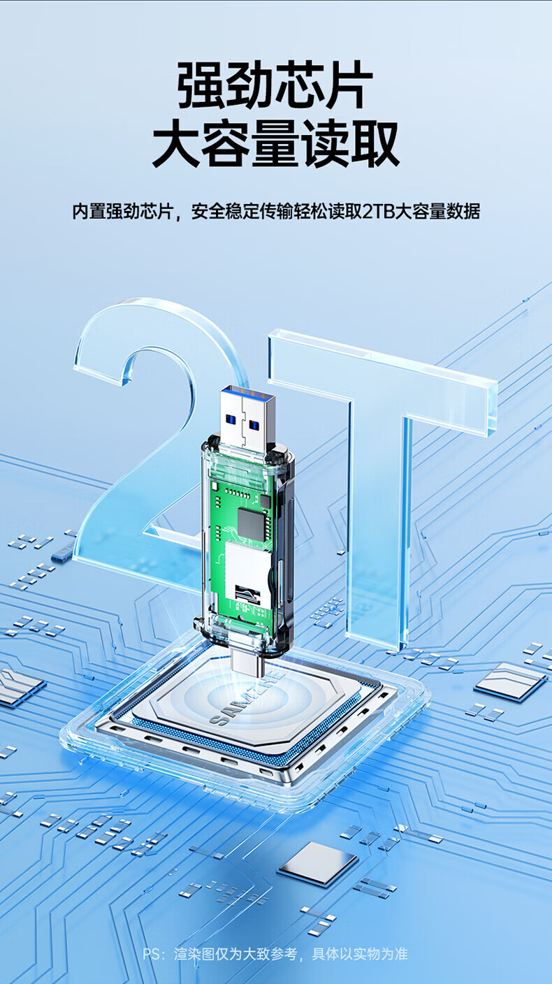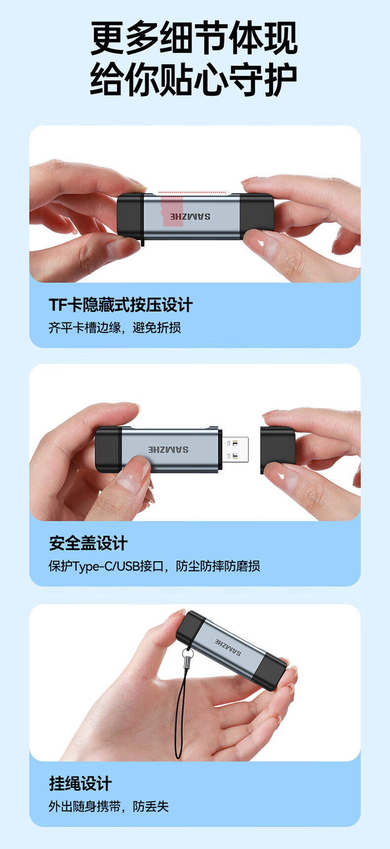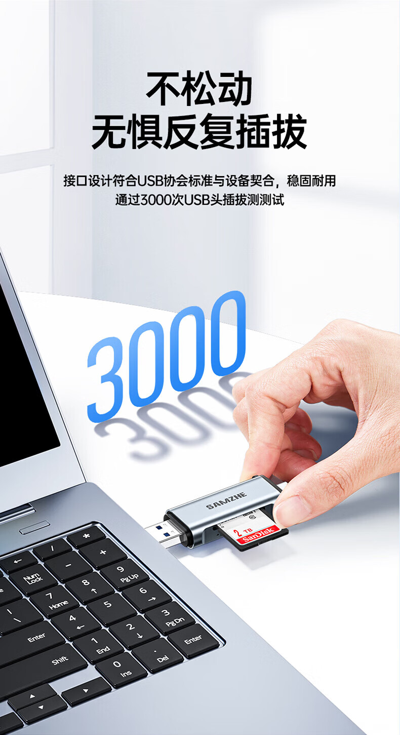 Shanze USB3.0 high-speed card reader dual card dual reading multi-function SD/TF card reader supports mobile phone SLR camera driving recorder monitoring storage memory card Type-C card reader TF zinc alloy