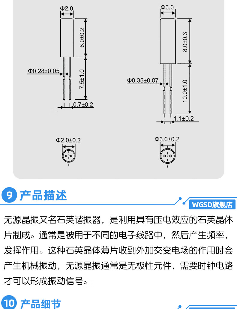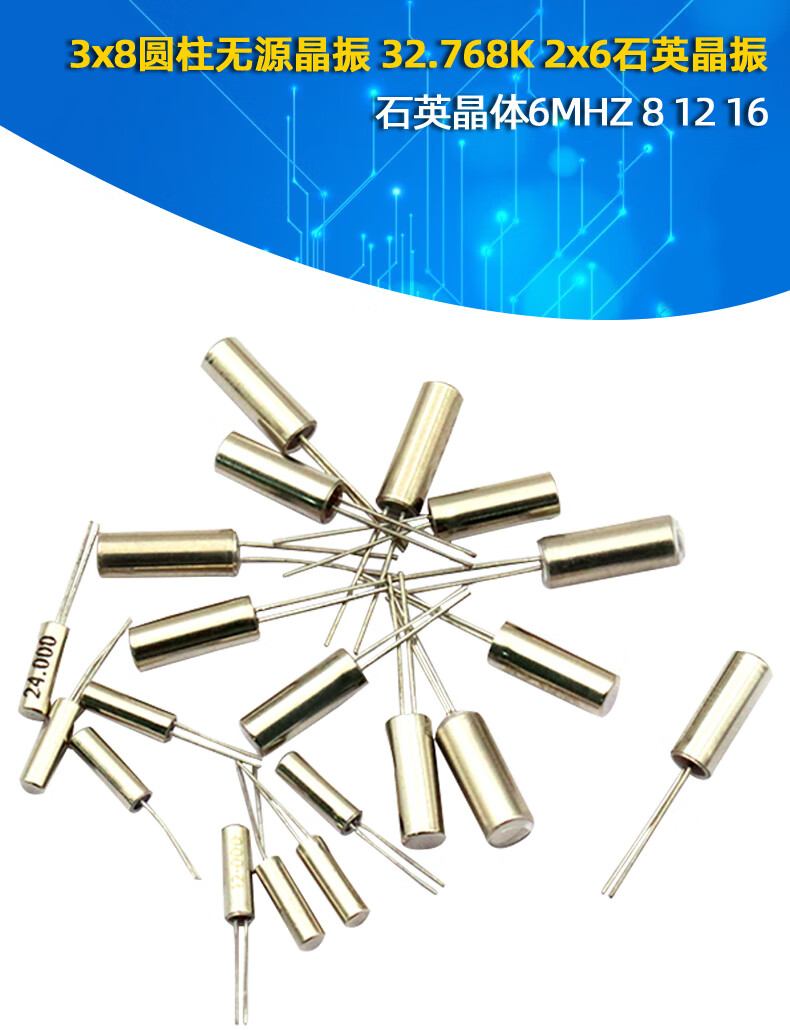 Dafuri 3x8 cylindrical passive crystal oscillator 32.768K quartz crystal 2x6 quartz crystal 6MHZ 8 12 16 2x6 12MHZ (10 pieces)