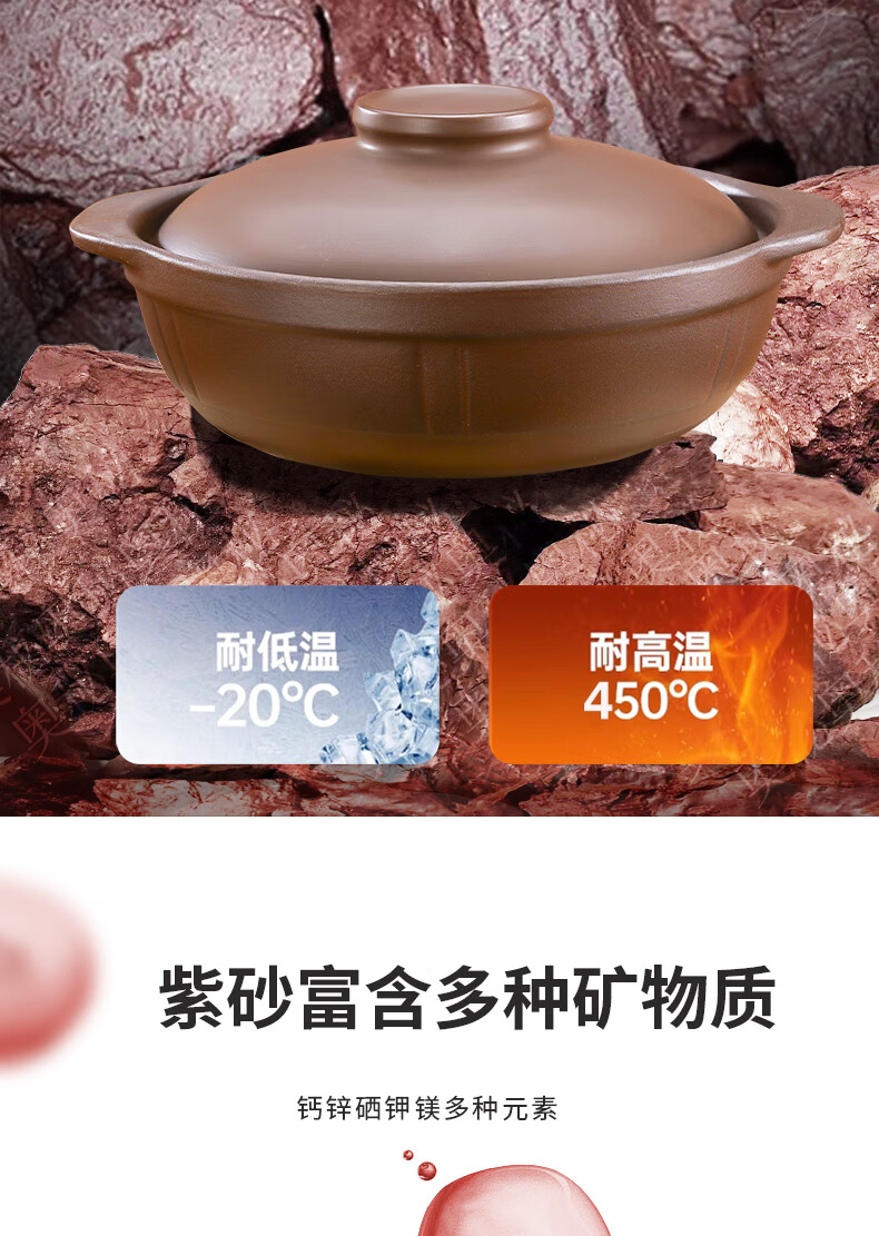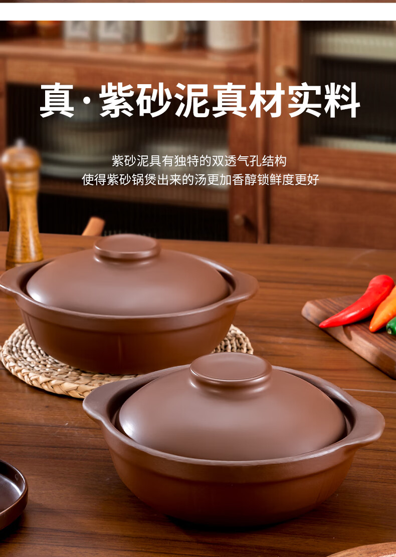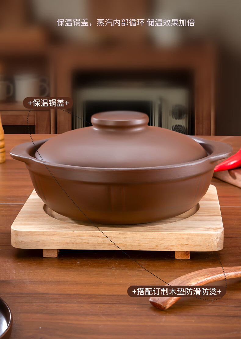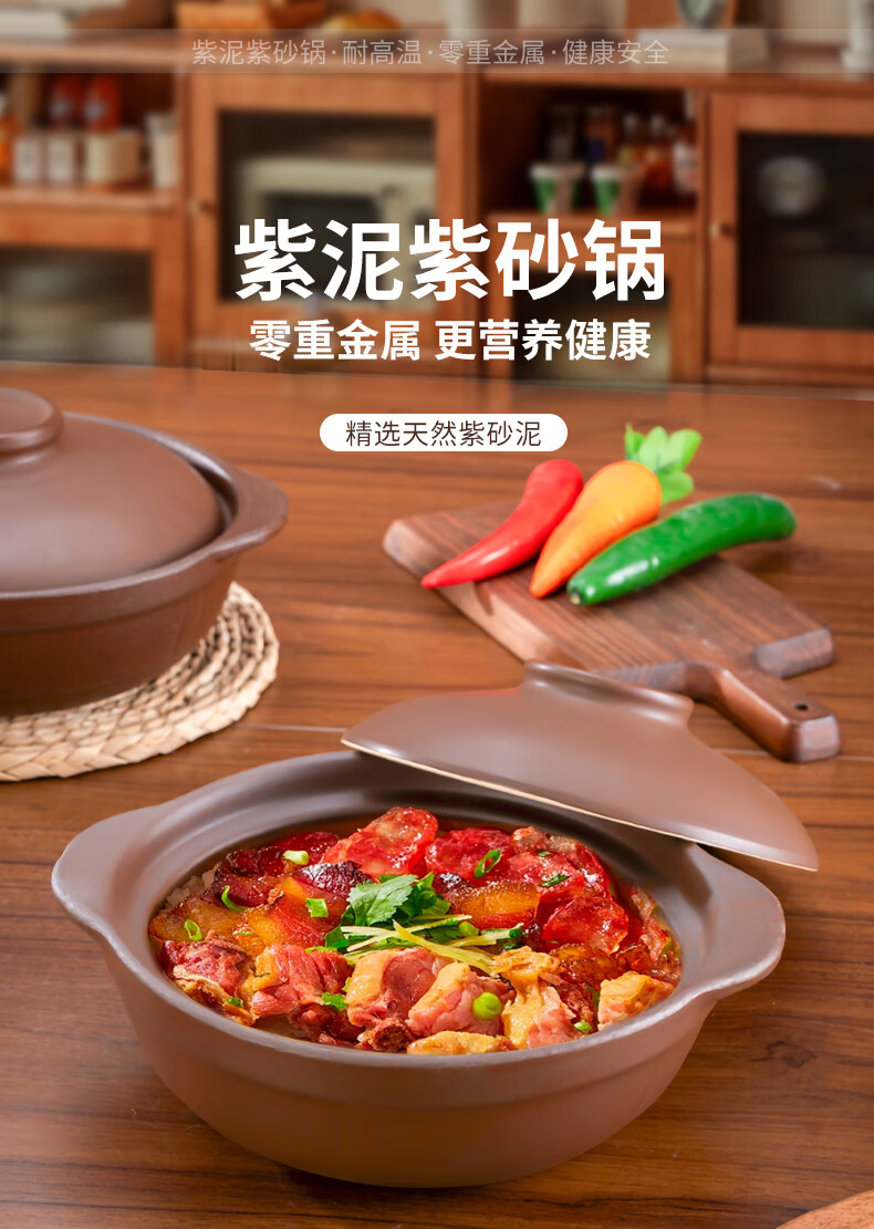 Mysterious unglazed purple casserole, high temperature resistant, dry-fired and non-cracking, household ceramic soup pot, earthen pot, clay pot, rice casserole, special for gas stove, unglazed purple casserole, suitable for 4-5 people 2.5L