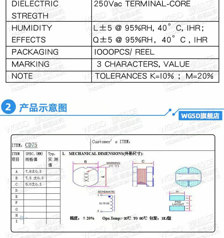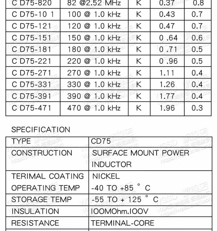 Dafuri chip power wound inductor CD75 2.2/3.3/4.7/10/15/22/33/47/68UH CD75 1000UH 1MH printing 102 (5 pieces)