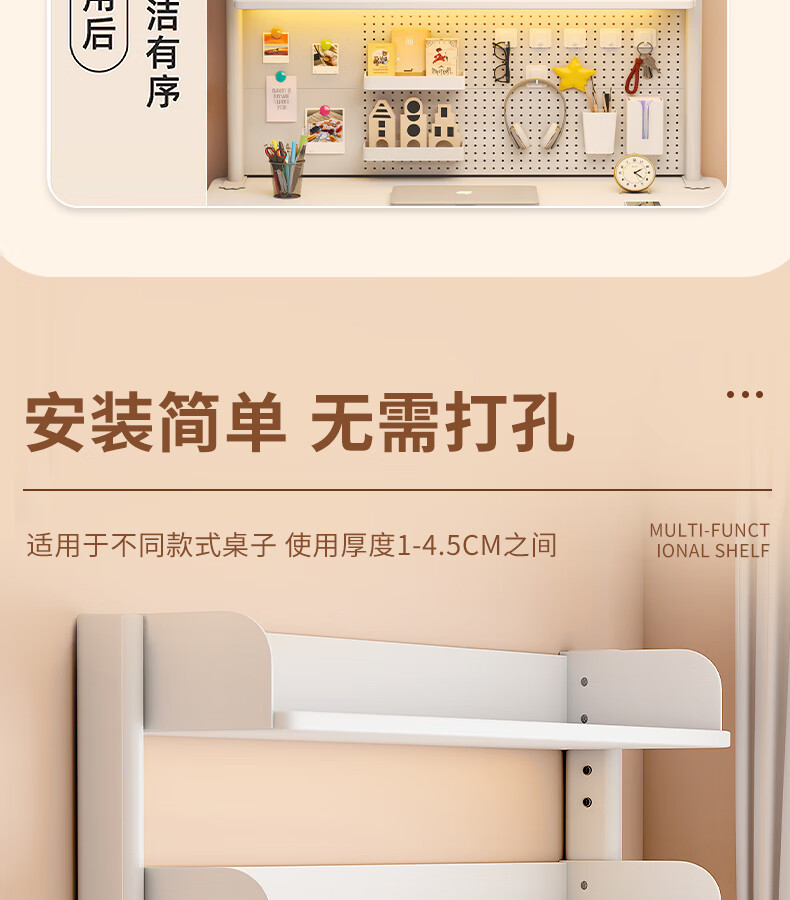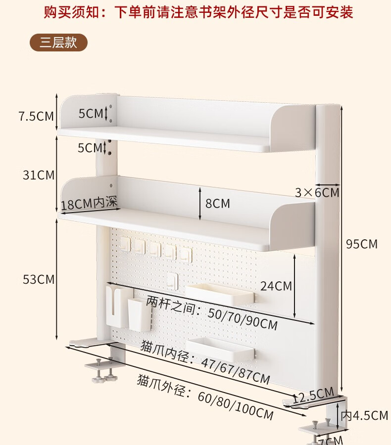 MPPMCK Internet celebrity student study desk storage shelf desktop storage rack computer desk multi-layer perforated board bookshelf 62 upgraded eye protection lamp 3 layers 4*5*6cm