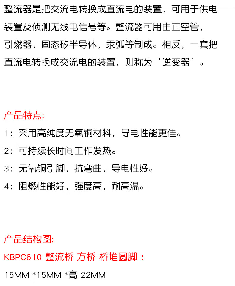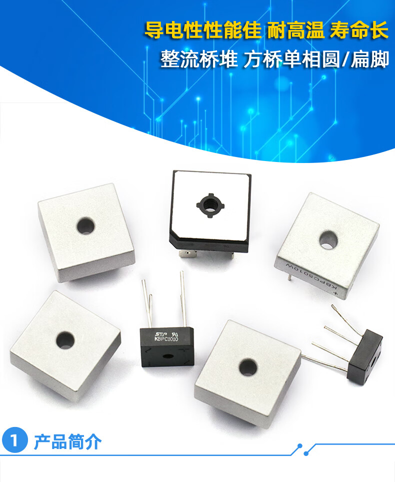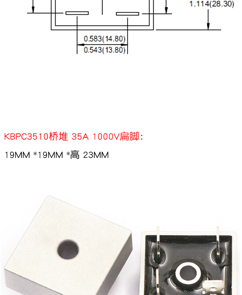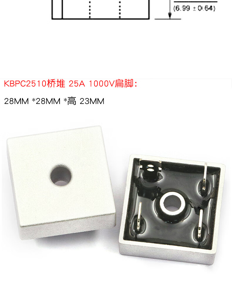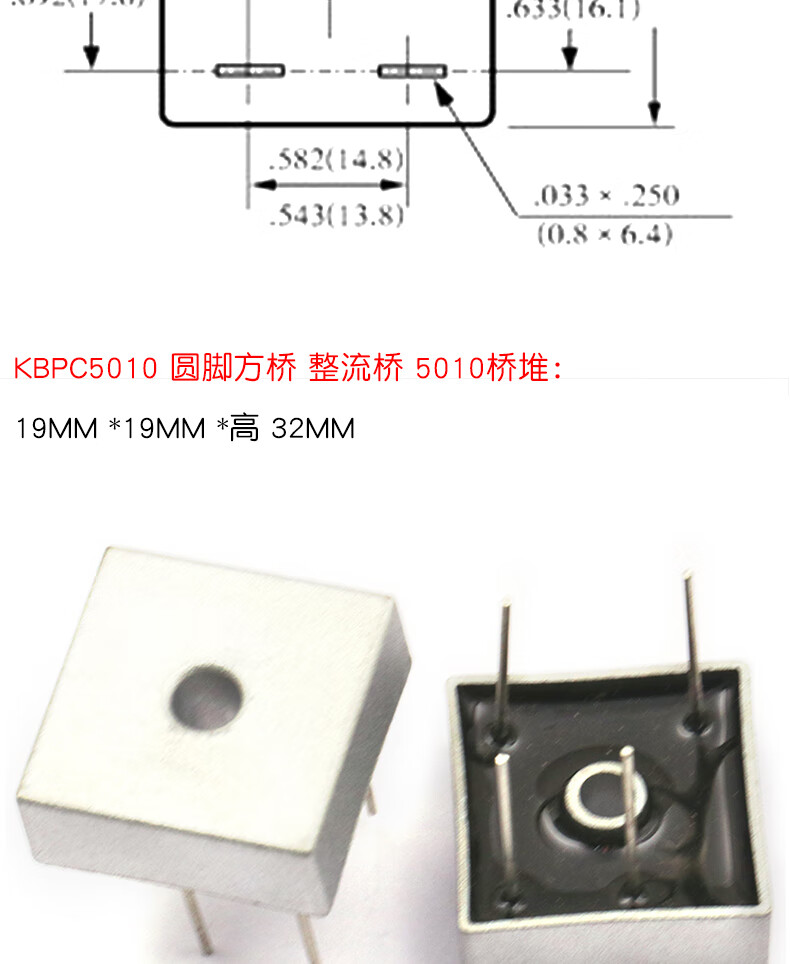 Dafuri KBPC5010 rectifier bridge stack KBPC3510/2510/5010 square bridge single-phase flat foot 50A1000V square KBPC5010 bridge stack 50A1000V flat foot