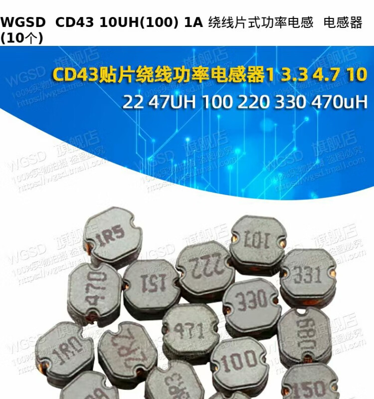 Dafuri CD43 chip wound power inductor 1 3.3 4.7 10 22 100 47UH 220 330 CD43 inductor 47UH printing 470 (5 pieces)