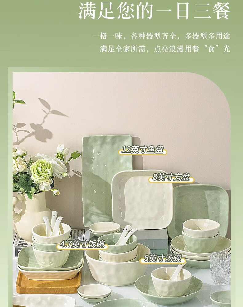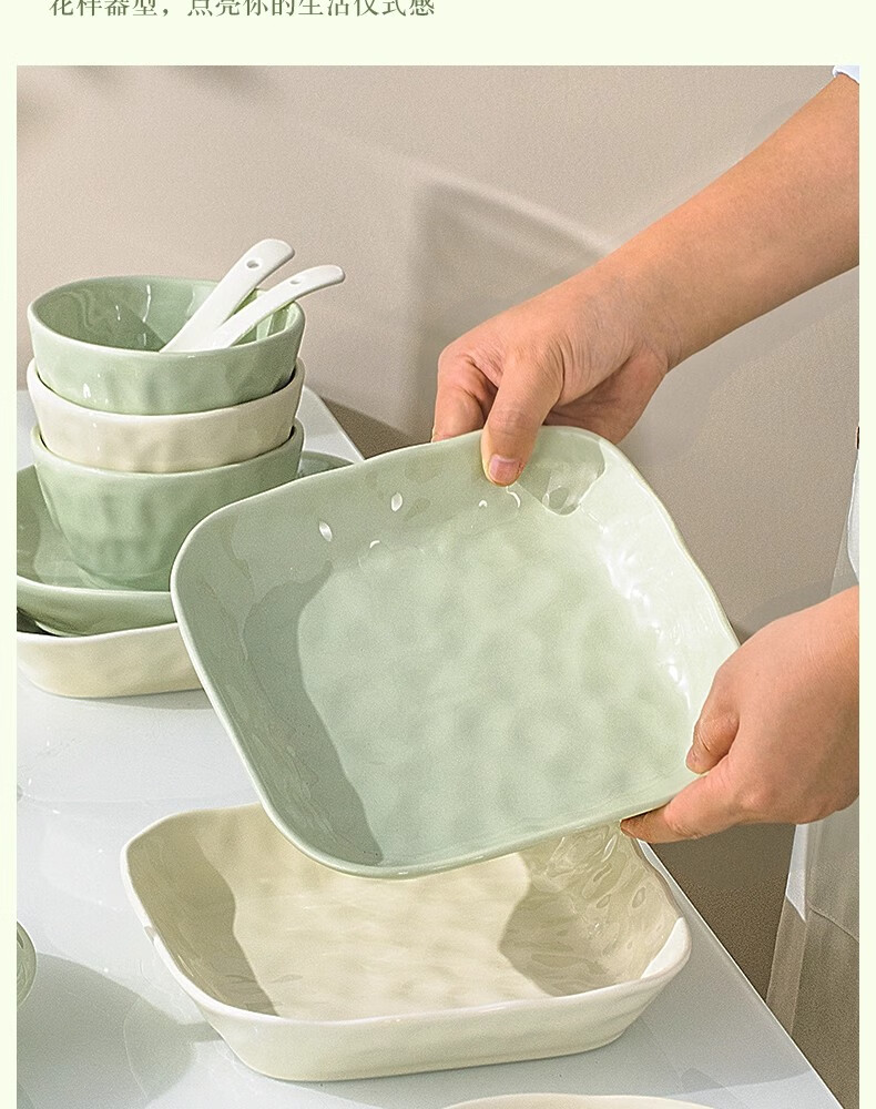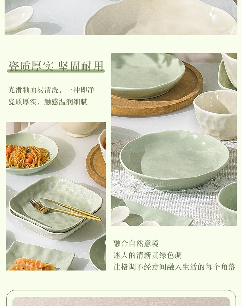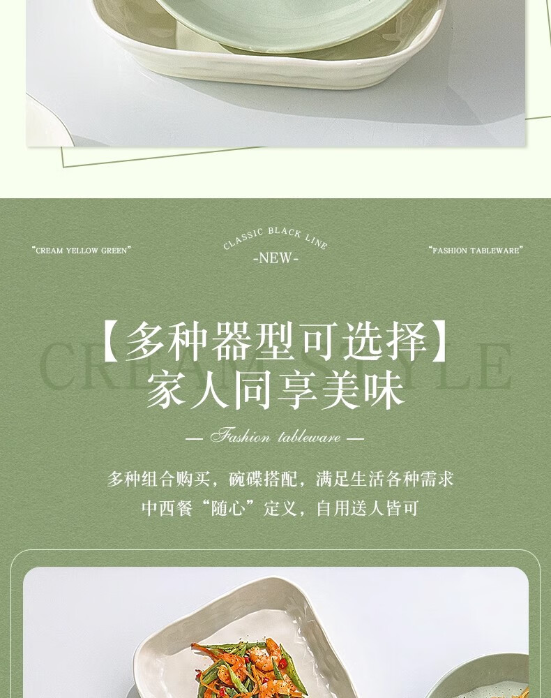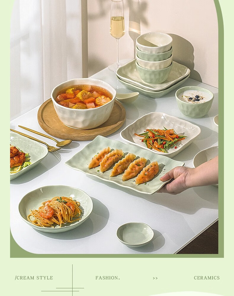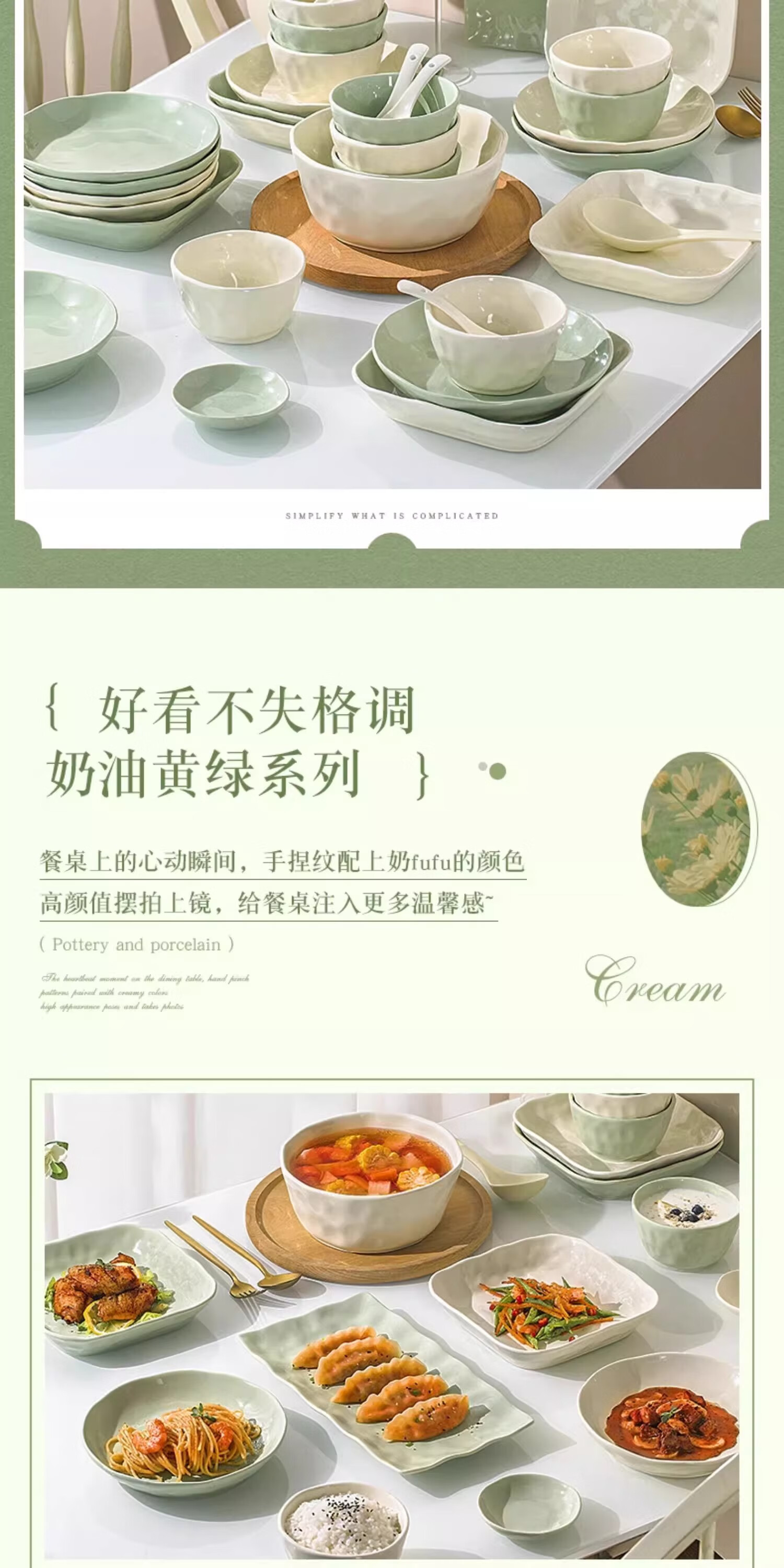 Yichen underglaze color dish set for home use 2025 high-looking cream style tableware set high-looking dishes and chopsticks for housewarming 80% of customers choose milk yellow and green mix for 10 people 63-piece set