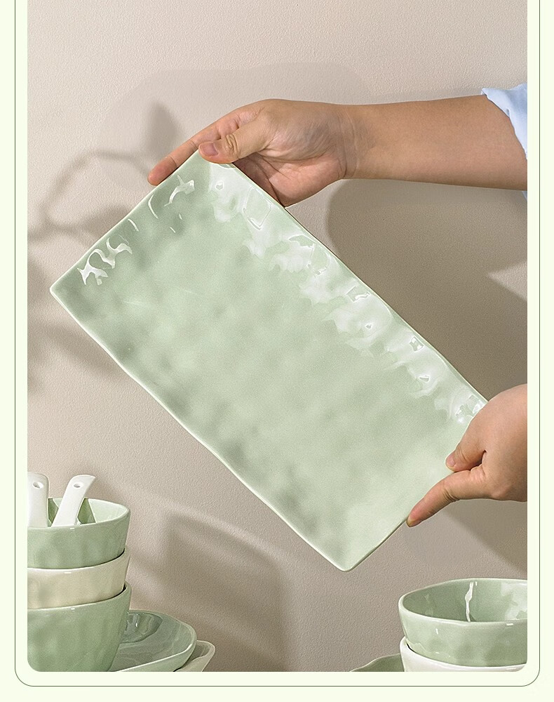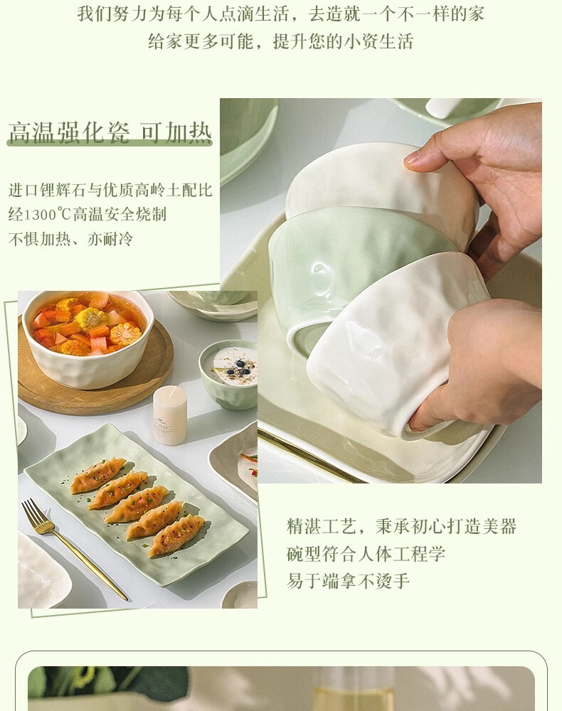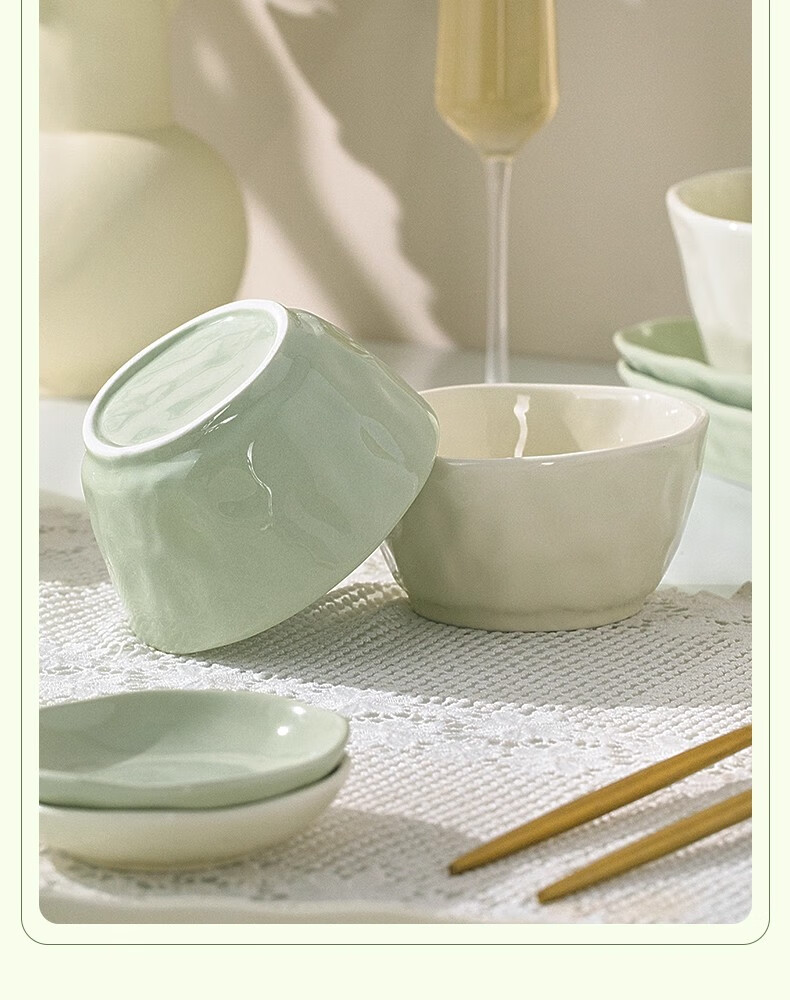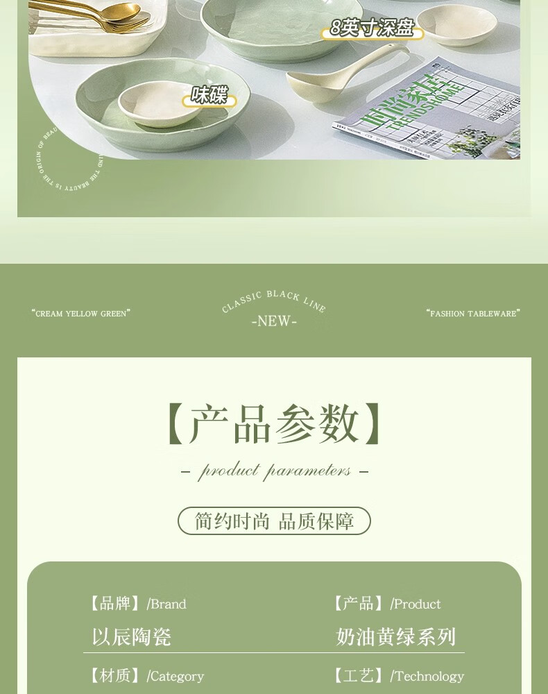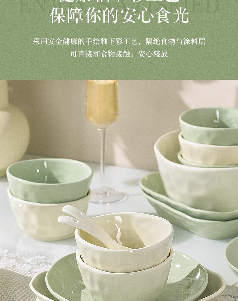 Yichen underglaze color dish set for home use 2025 high-looking cream style tableware set high-looking dishes and chopsticks for housewarming 80% of customers choose milk yellow and green mix for 10 people 63-piece set