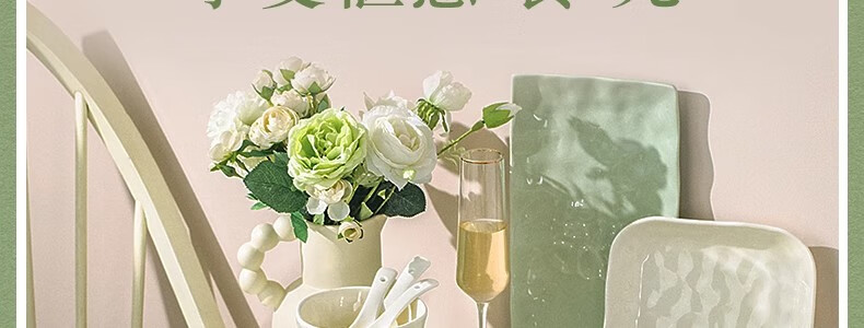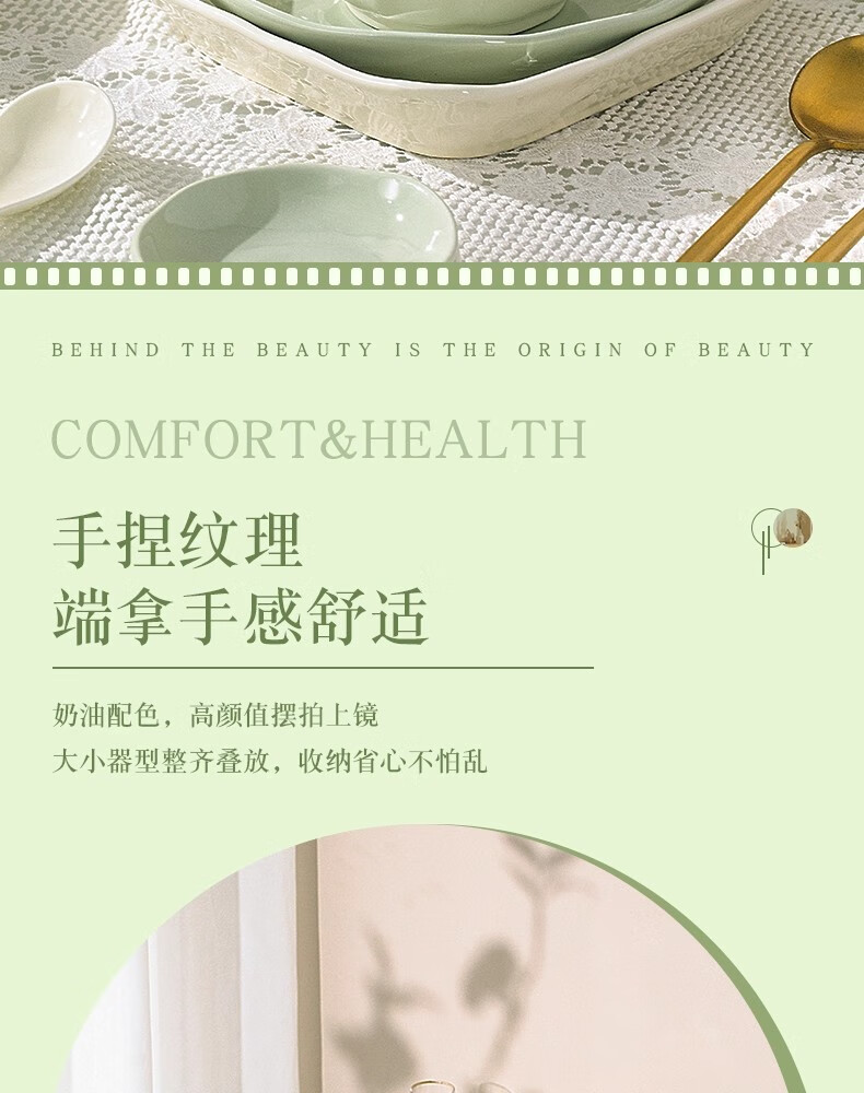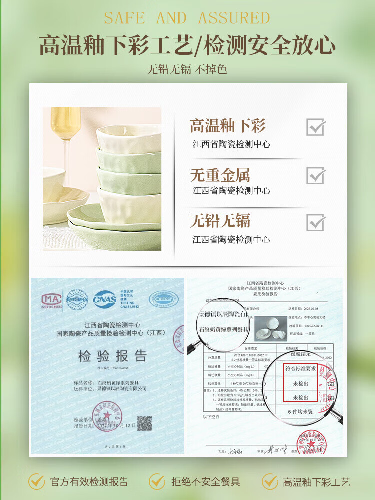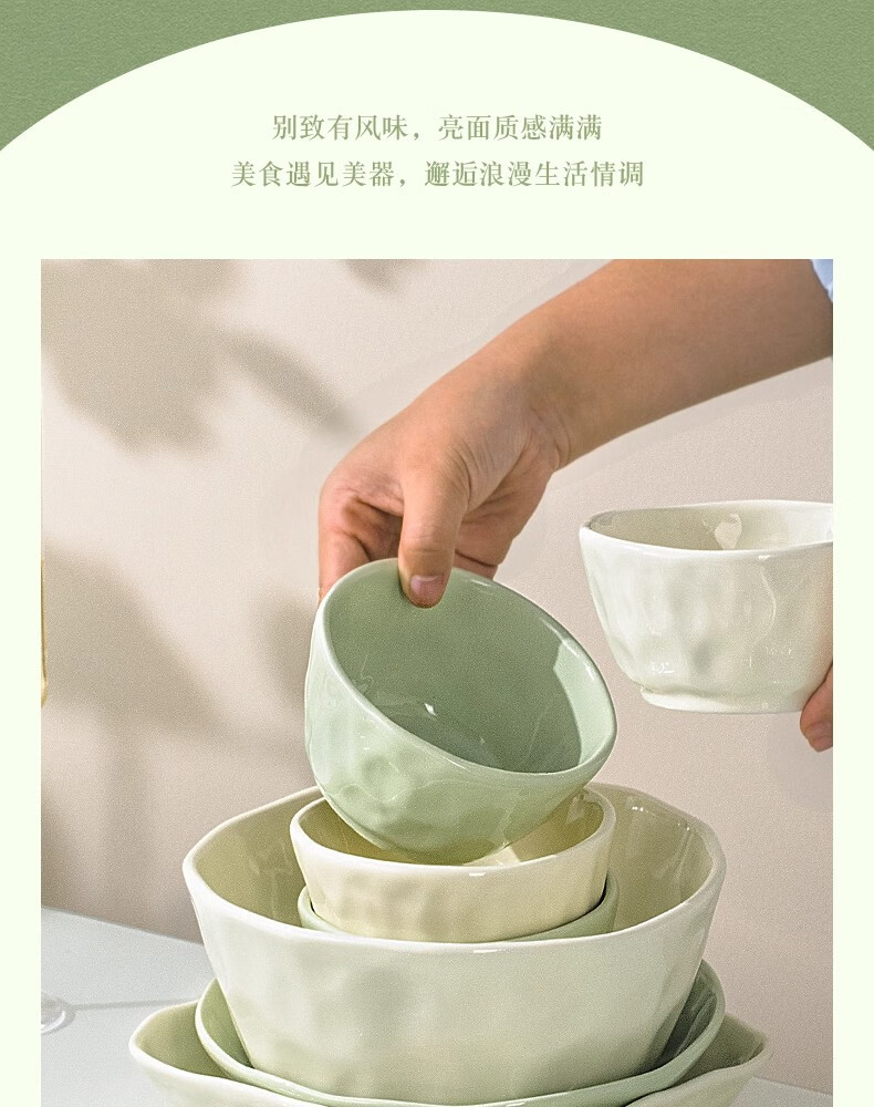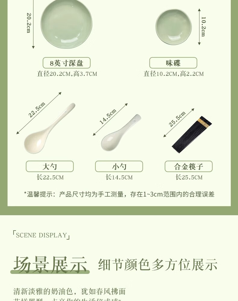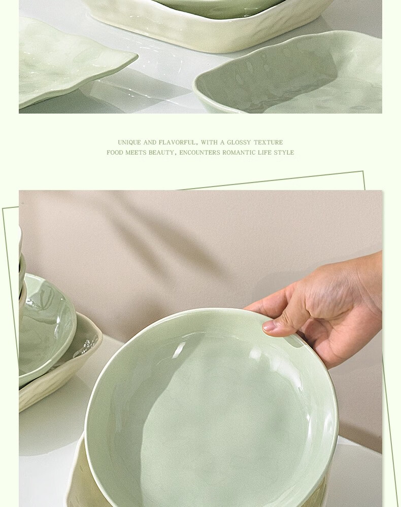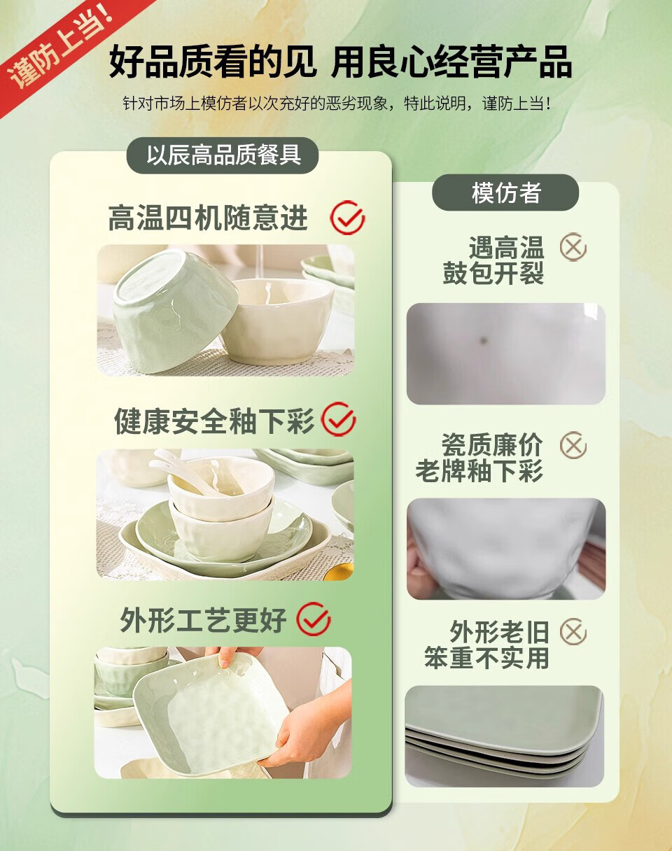 Yichen underglaze color dish set for home use 2025 high-looking cream style tableware set high-looking dishes and chopsticks for housewarming 80% of customers choose milk yellow and green mix for 10 people 63-piece set