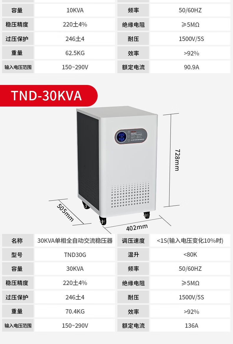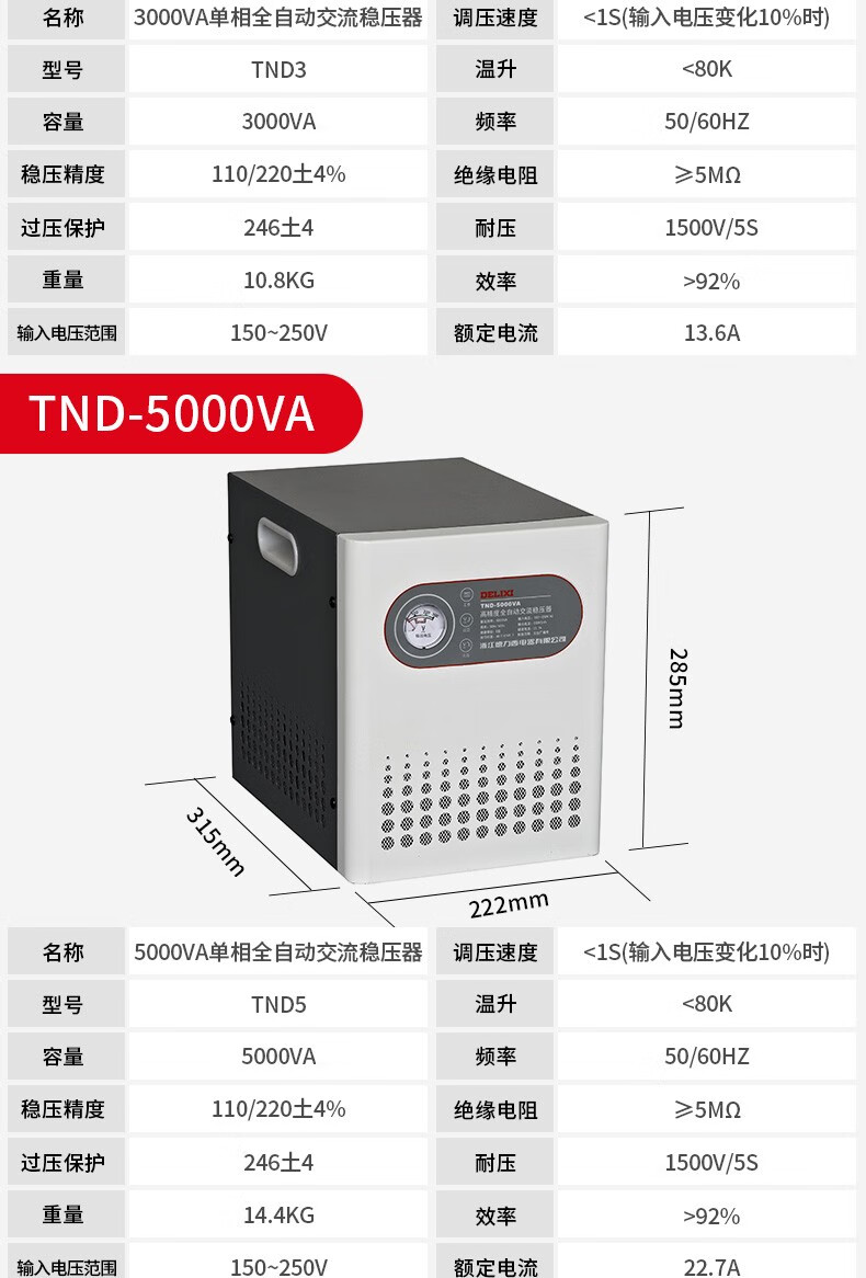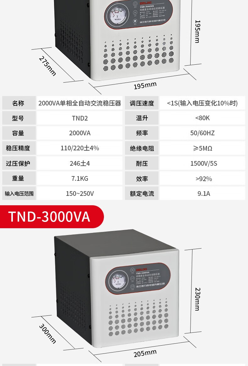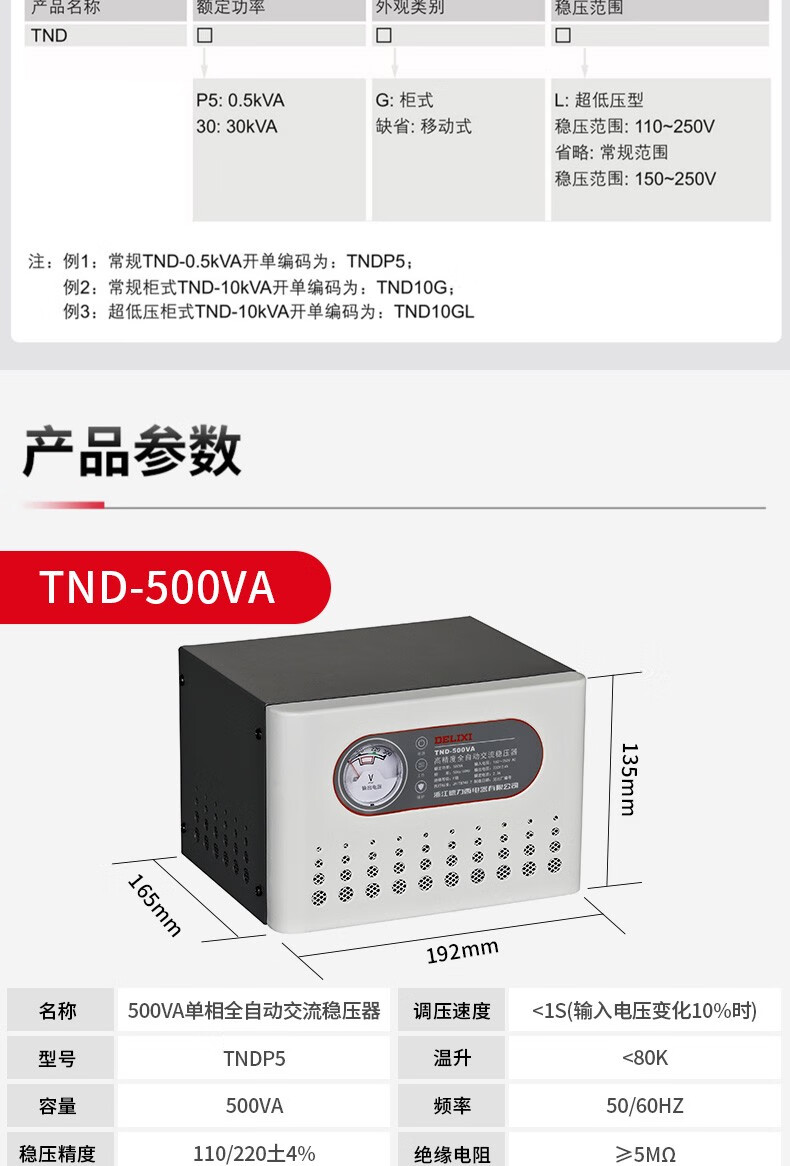 DELIXI ELECTRIC TND voltage regulator 220v fully automatic household high-power single-phase three-phase voltage regulating AC home appliance power supply TND-30KW free power strip